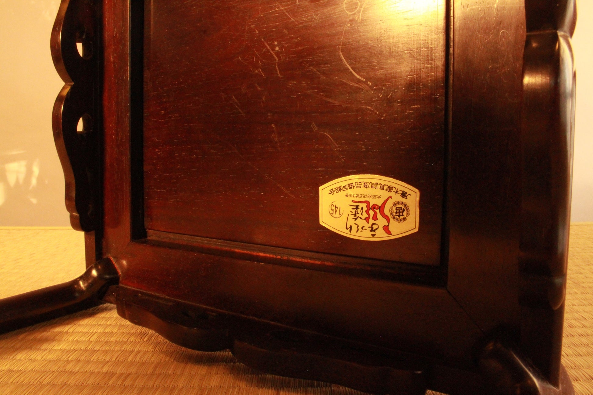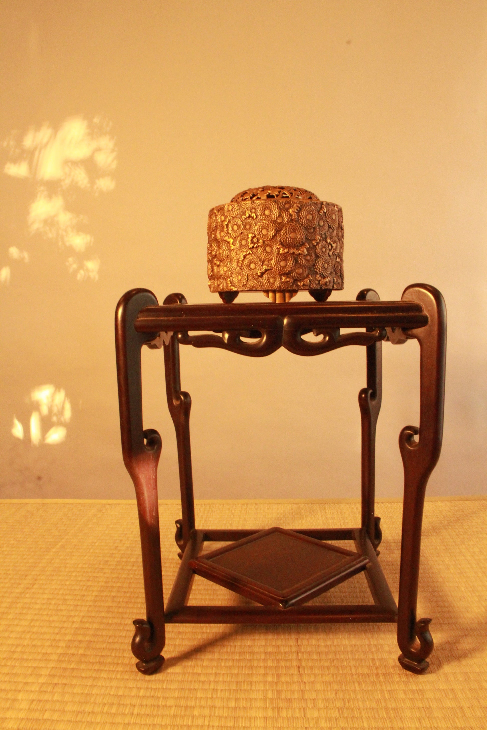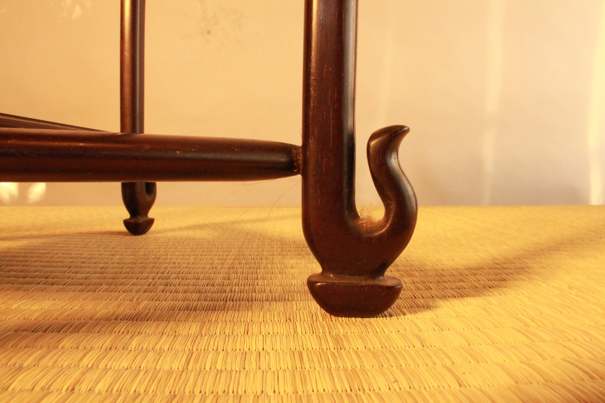 Decoration Stand Pedestal Karaki dark brown wood with double shelves and unique legs, Japanese antique utensil for Ikebana Bonsai Japanese furniture H13.2×10×10in.