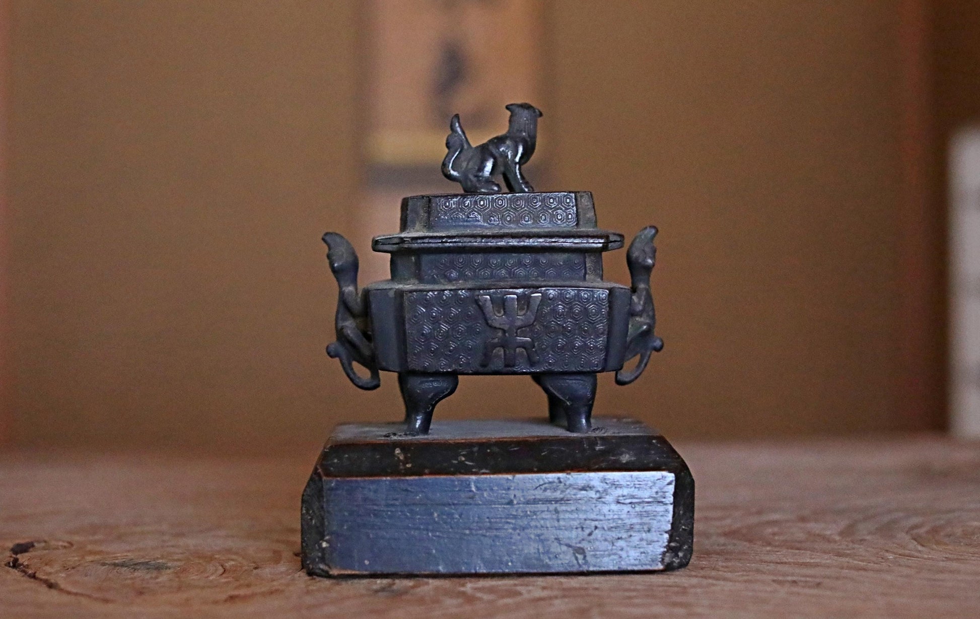 This is a very unusual copper incense burner from the late Edo period. What is unusual is that the motif is a gecko. At the top is a lion. In Japan, lions have been cherished as a symbol of various things. They are spiritual beasts that exorcise demons and evil spirits, symbols of power and authority, divine beasts that wish for a bountiful harvest, and motifs of the performing arts.
