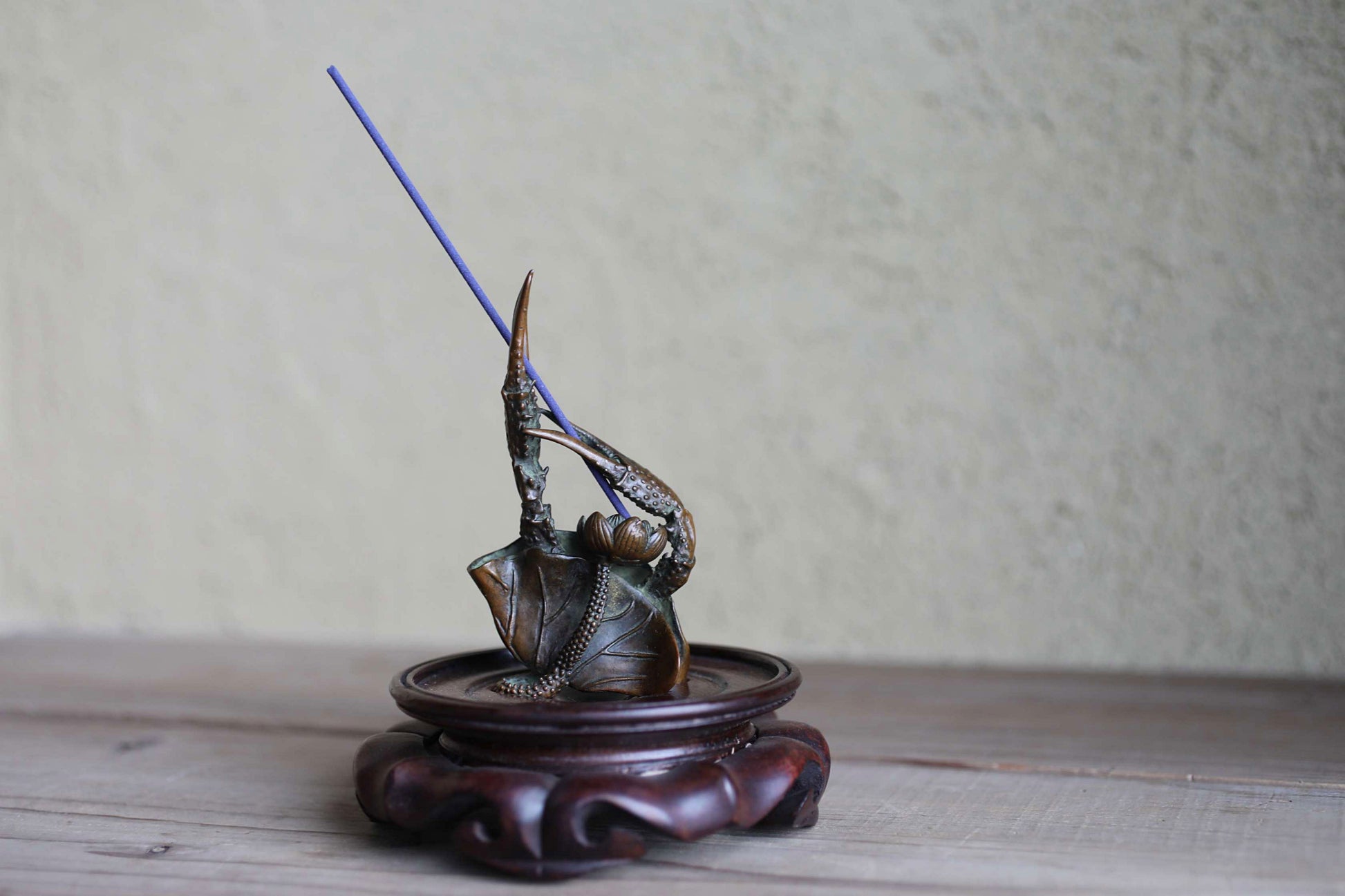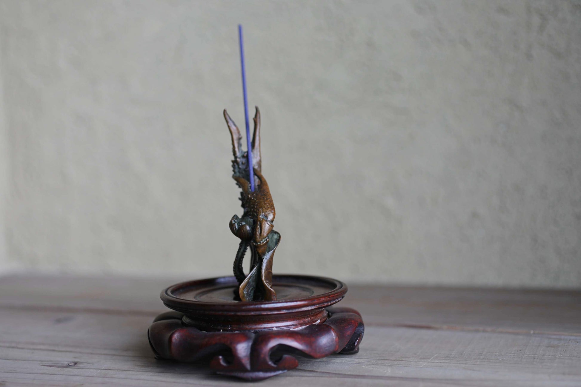 This stick-type incense holder is delicate and beautiful. Crafted from copper, it reveals intricate detailing upon closer inspection.