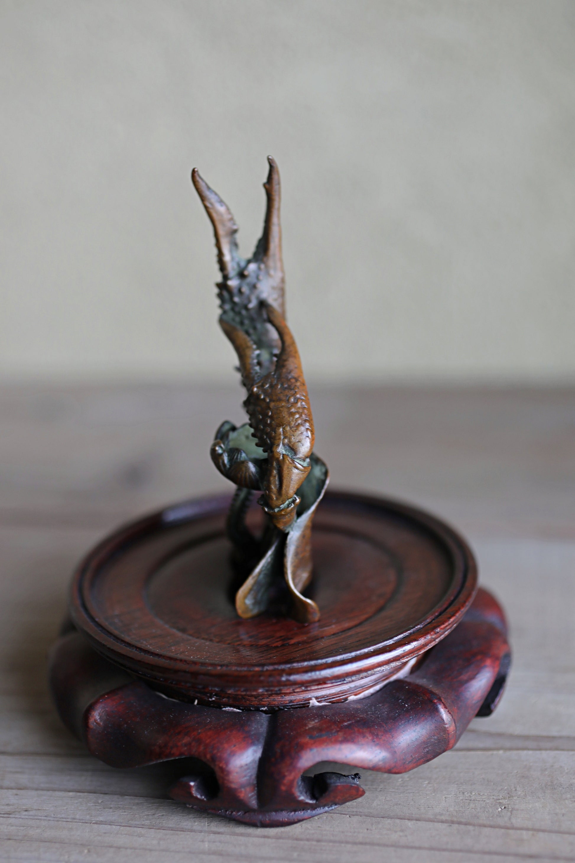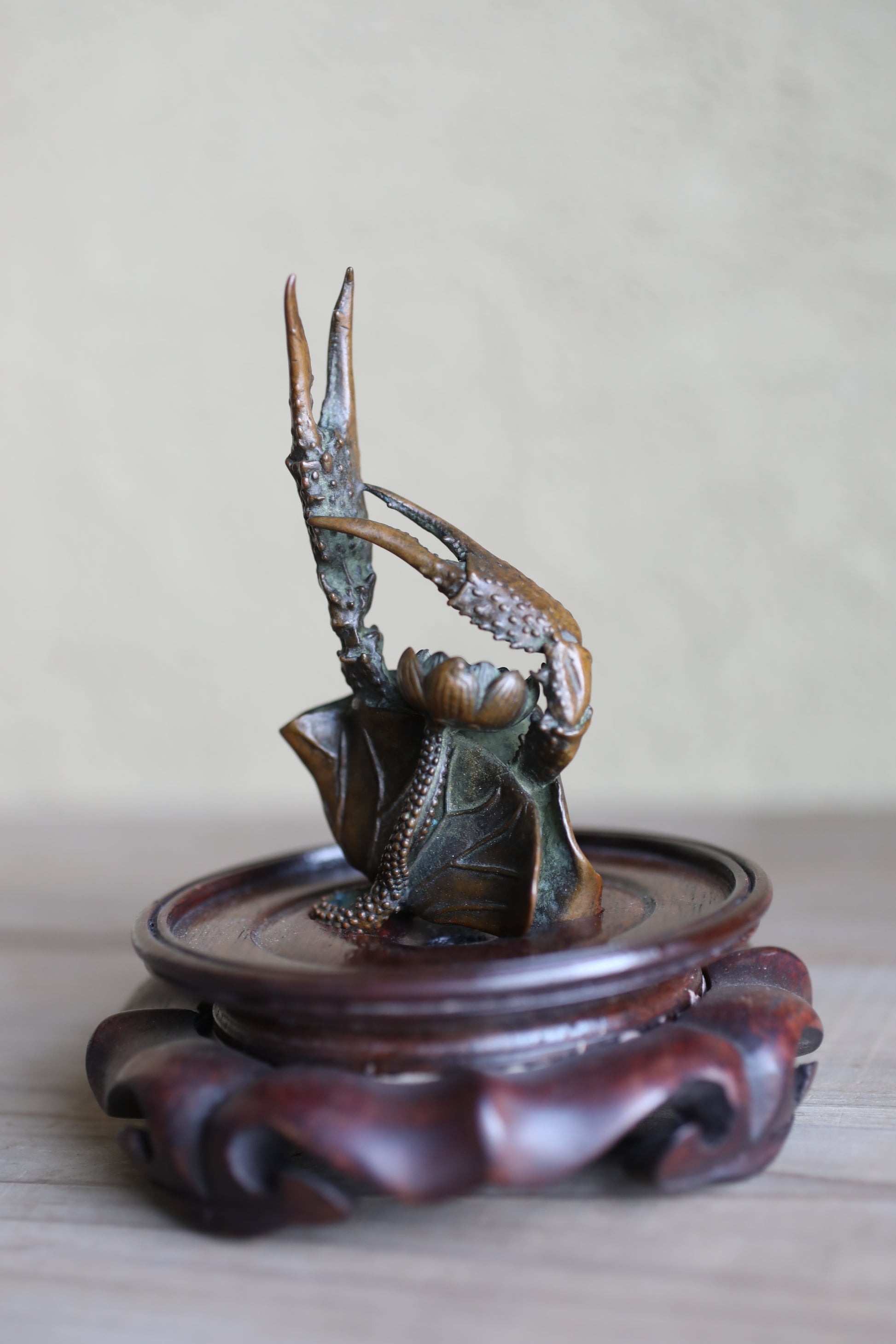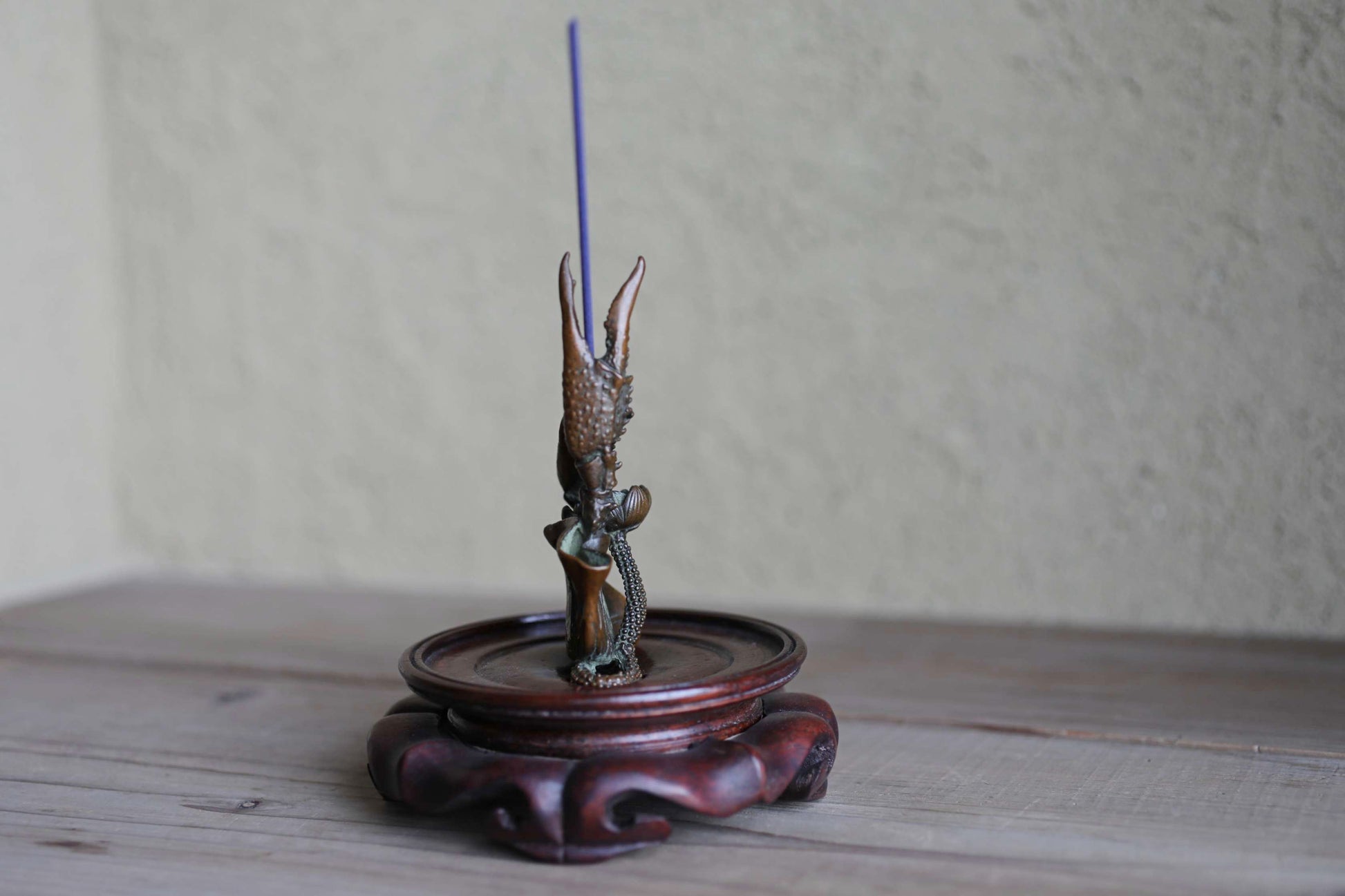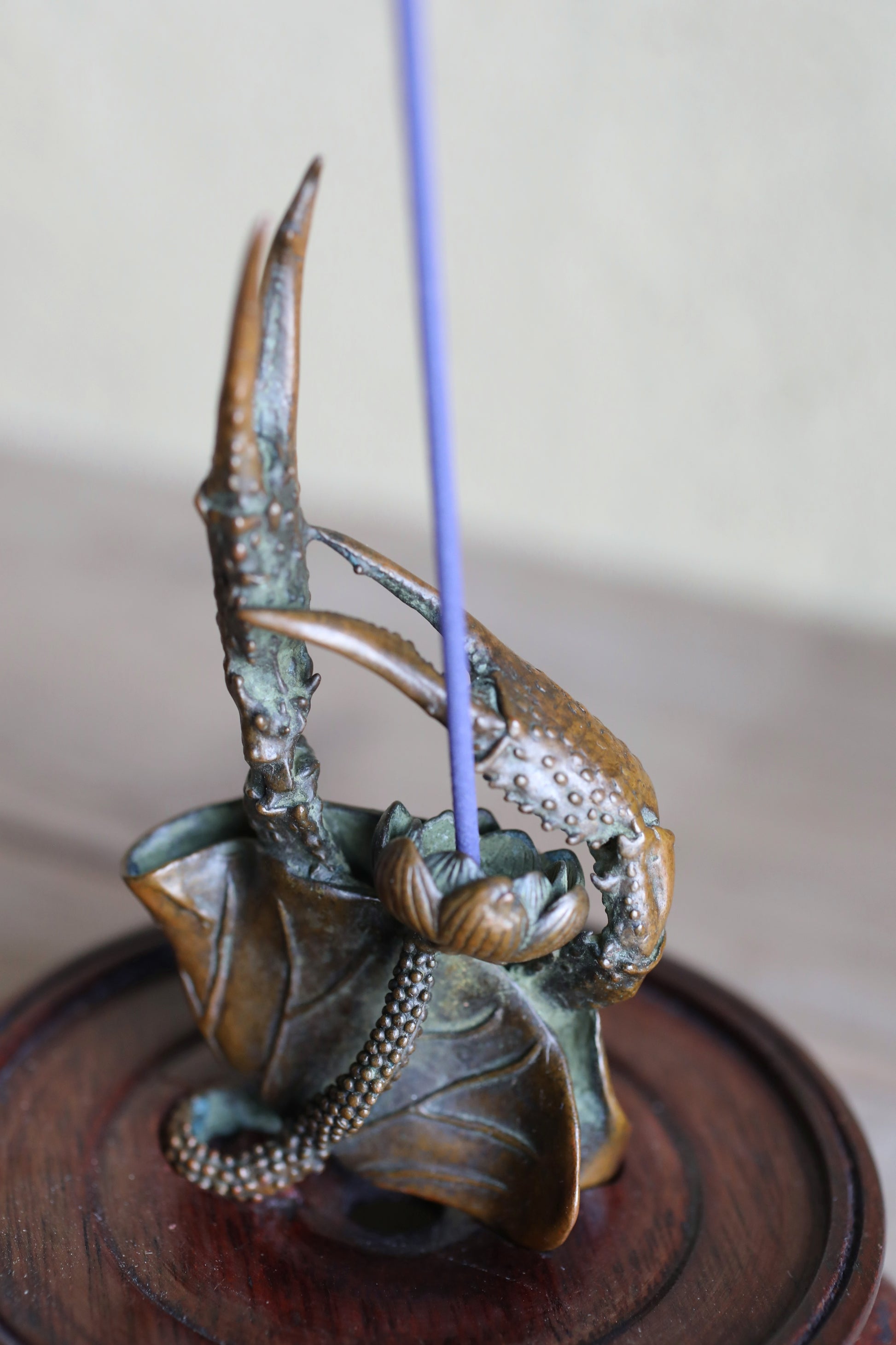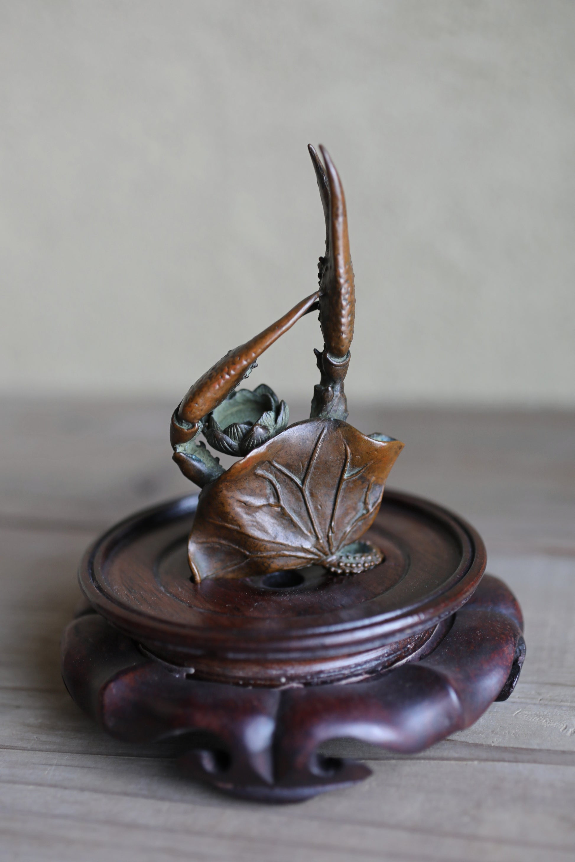 Japanese vintage bronze incense stand holder with Crab's Paw and Lotus/ stand H4.3in/H11cm