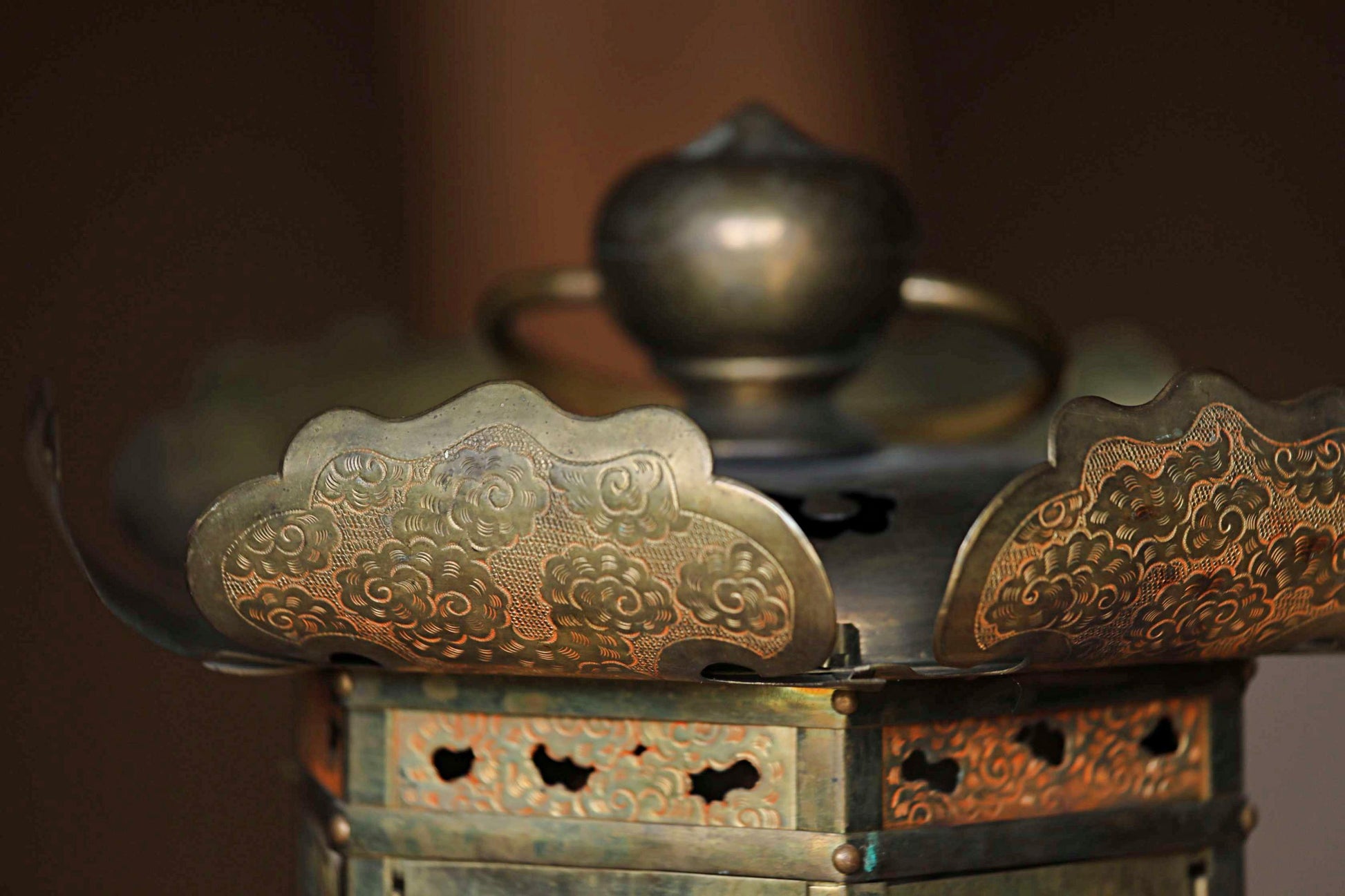 The shade of this lantern was made to resemble a lotus flower, which can be seen from above.