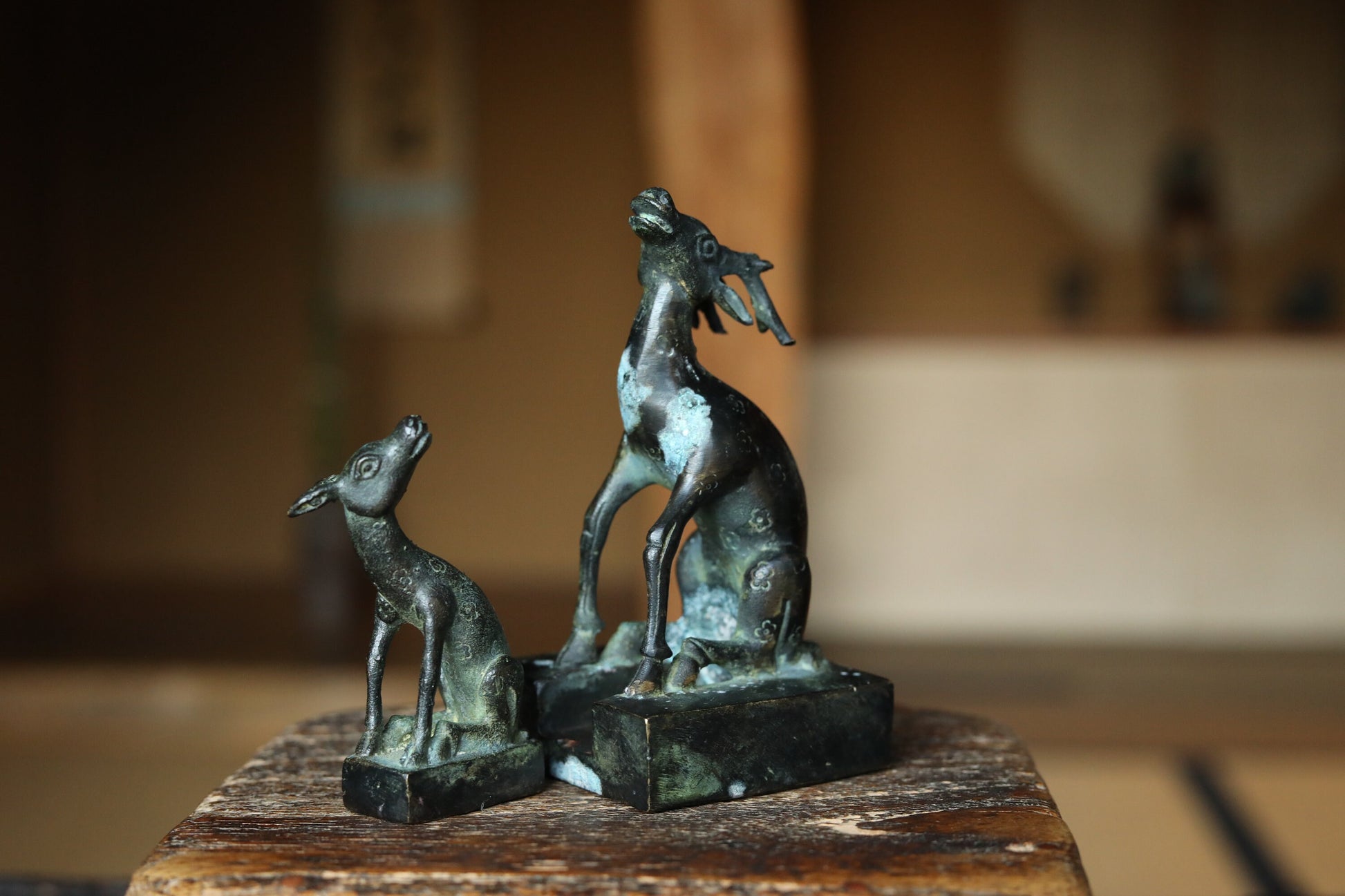 The motif is a parent and child deer, and the image of the fawn looking up at the parent's chest in a pampered manner is very endearing.