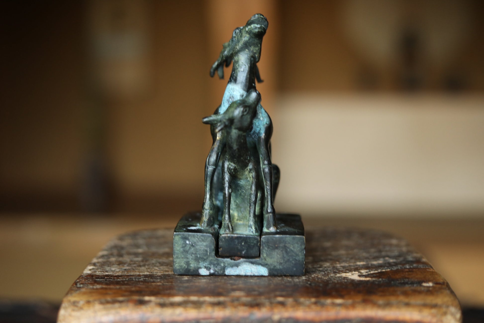 FINE! Chinese antique seal nesting stamp made of bronze, Deer family design beautiful animal ornament 1800s H4.9×2.4×2.4in.