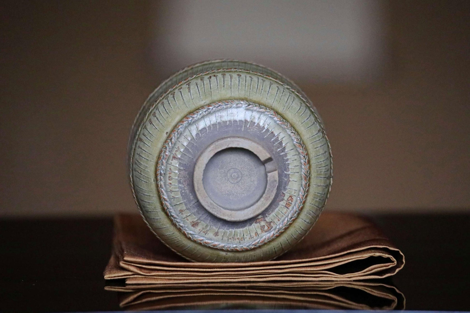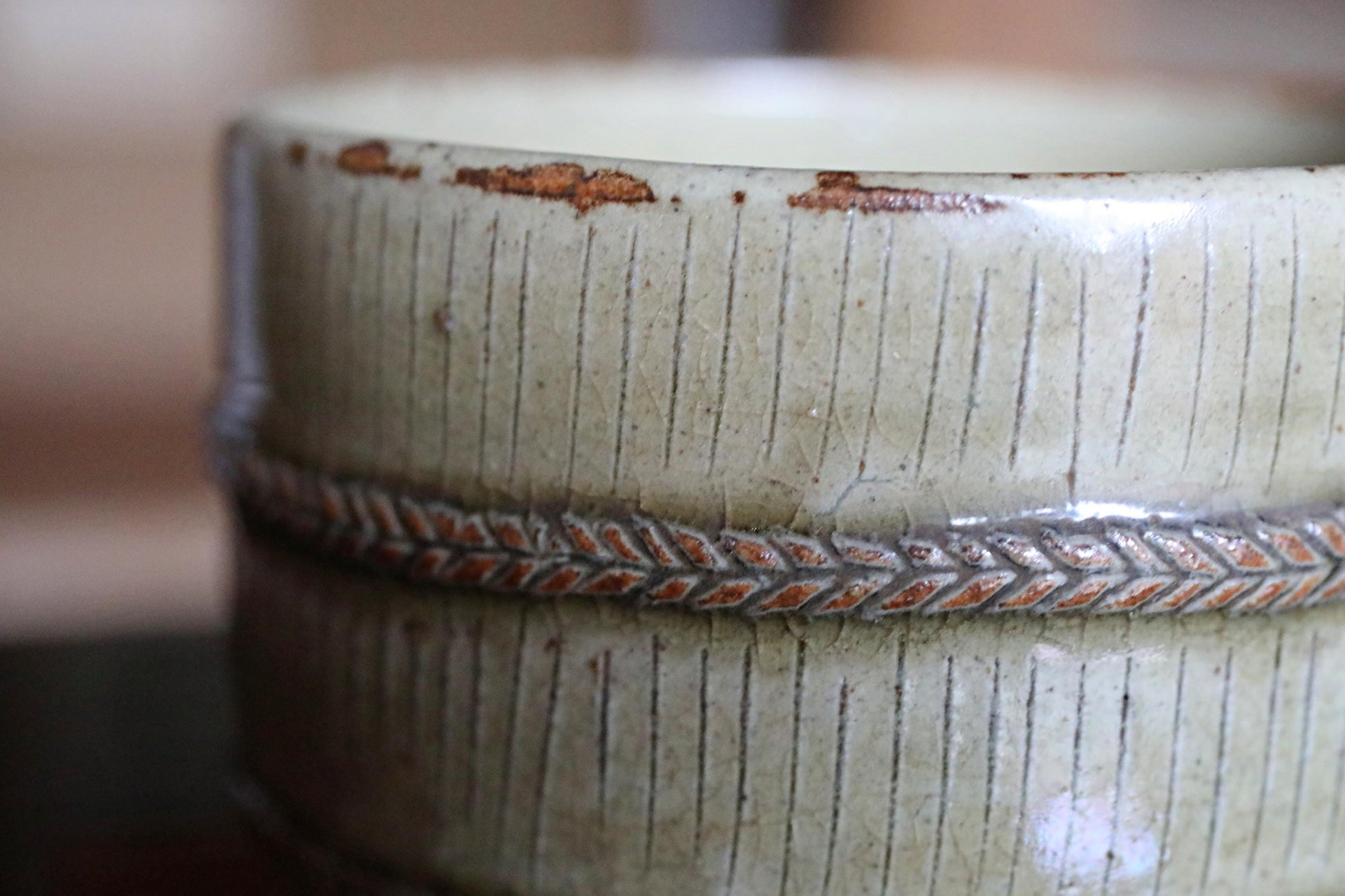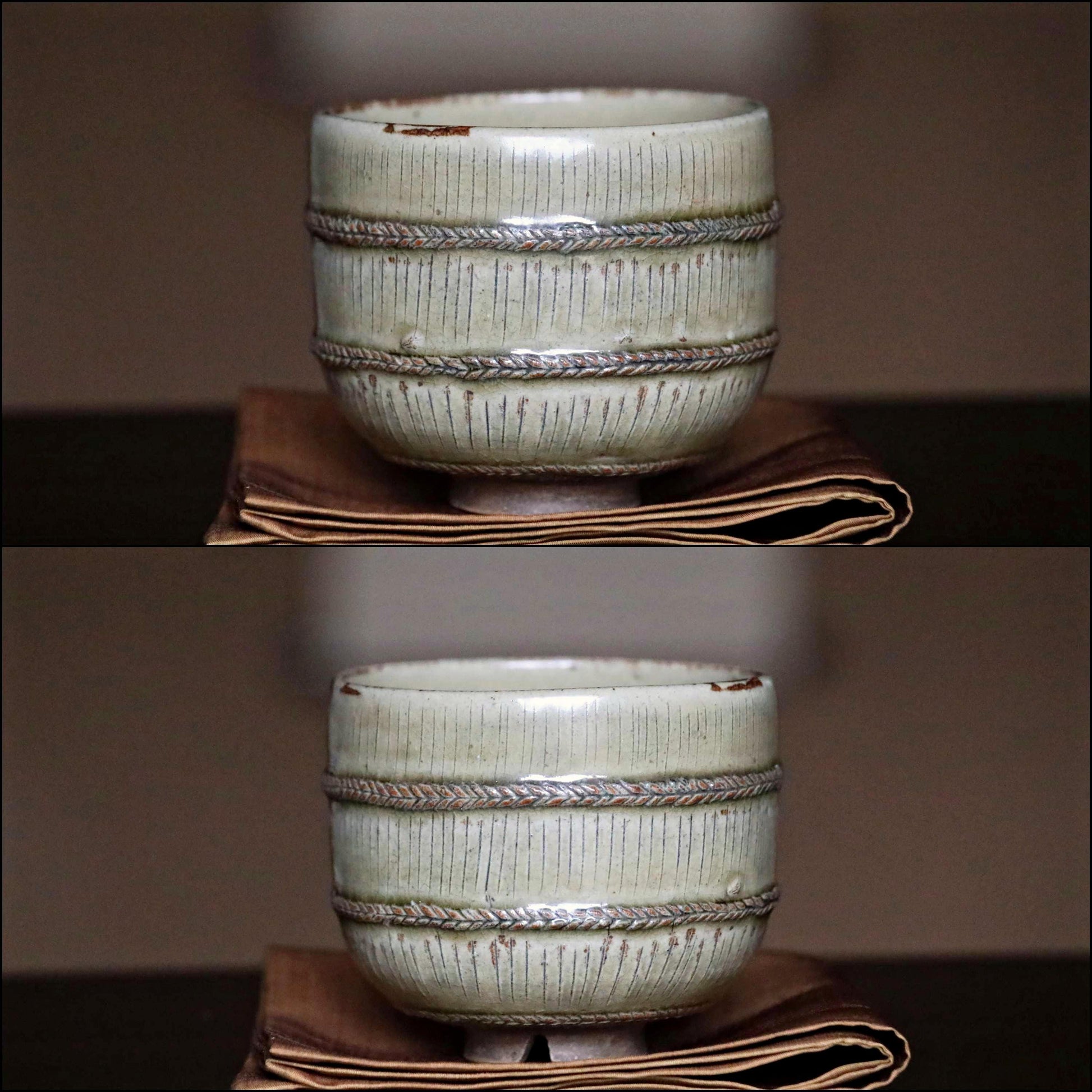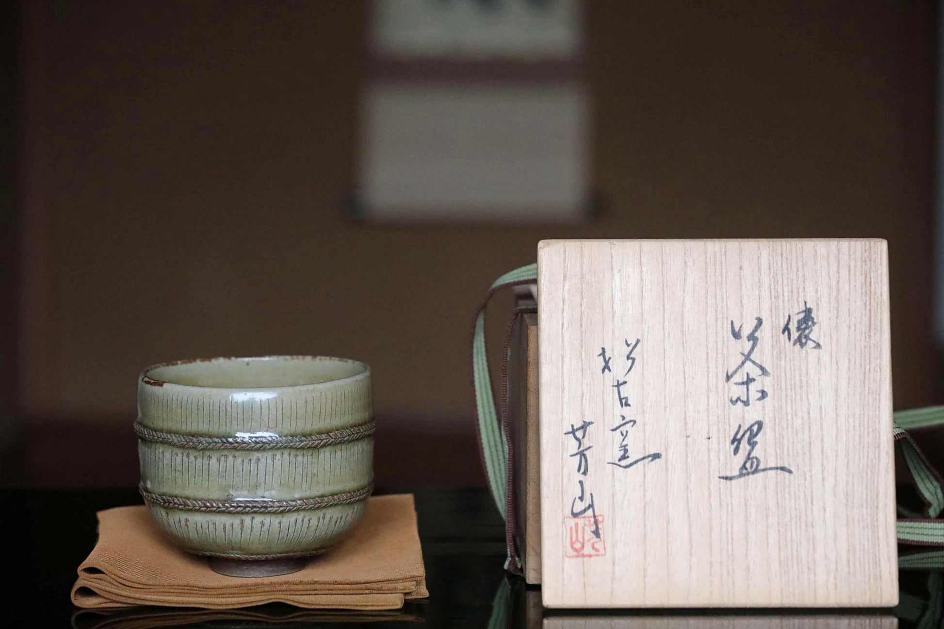 This shape is called tubular and is modeled after the shape of a bale. It is shaped like a rice bale cut in half and is considered an auspicious tea bowl.