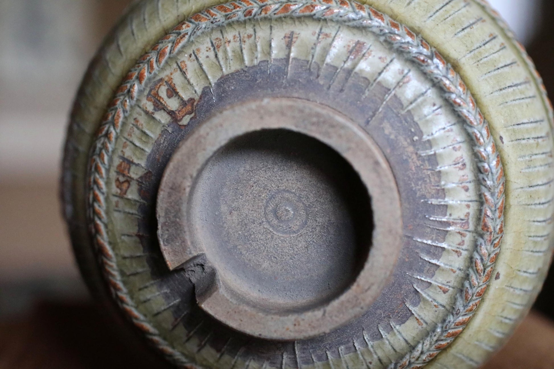 Fine green tea bowl Japanese antique CHAWAN Rikyu利休 like bale shaped handmade Matcha Cup Tea Ceremony with box sign H3.3×3.9in/H8.5×9.8in
