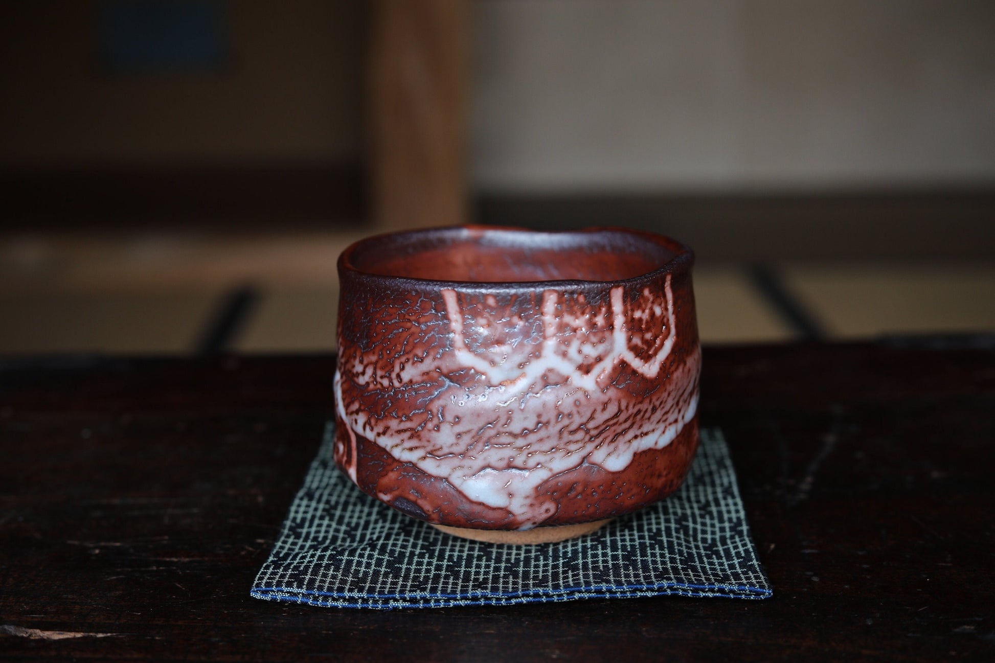 This rather large tea bowl has a sturdy presence. The surface has beautiful cracks in the glaze, and the naturally changing expression is wonderful.