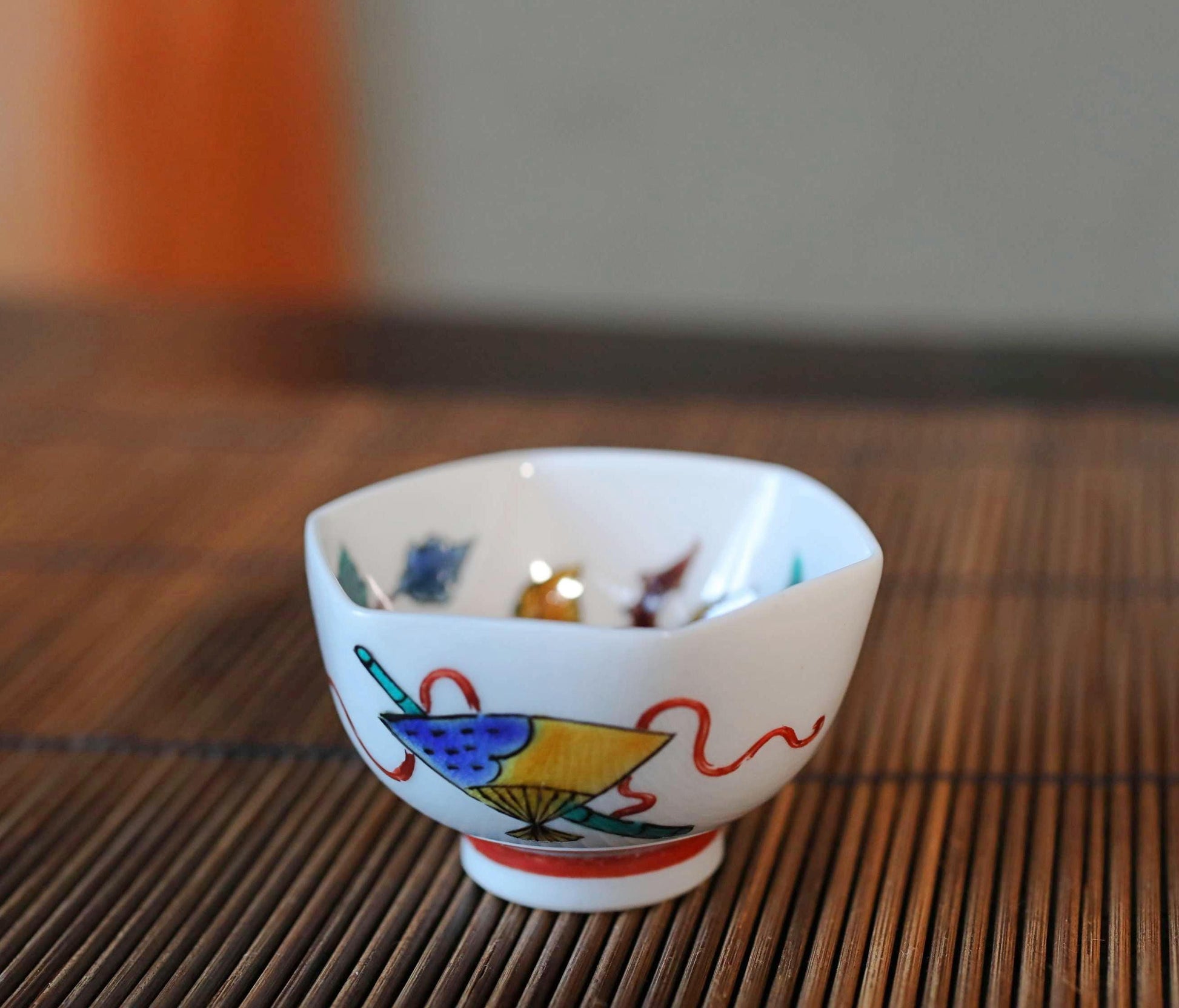 Very beautiful hand-painted patterns of boxwood and flowers. The hexagonal shape of the boxwood design is unusual and gives it a luxurious feel. It is made as a one-of-a-kind traditional handicraft of Ishikawa Prefecture.
