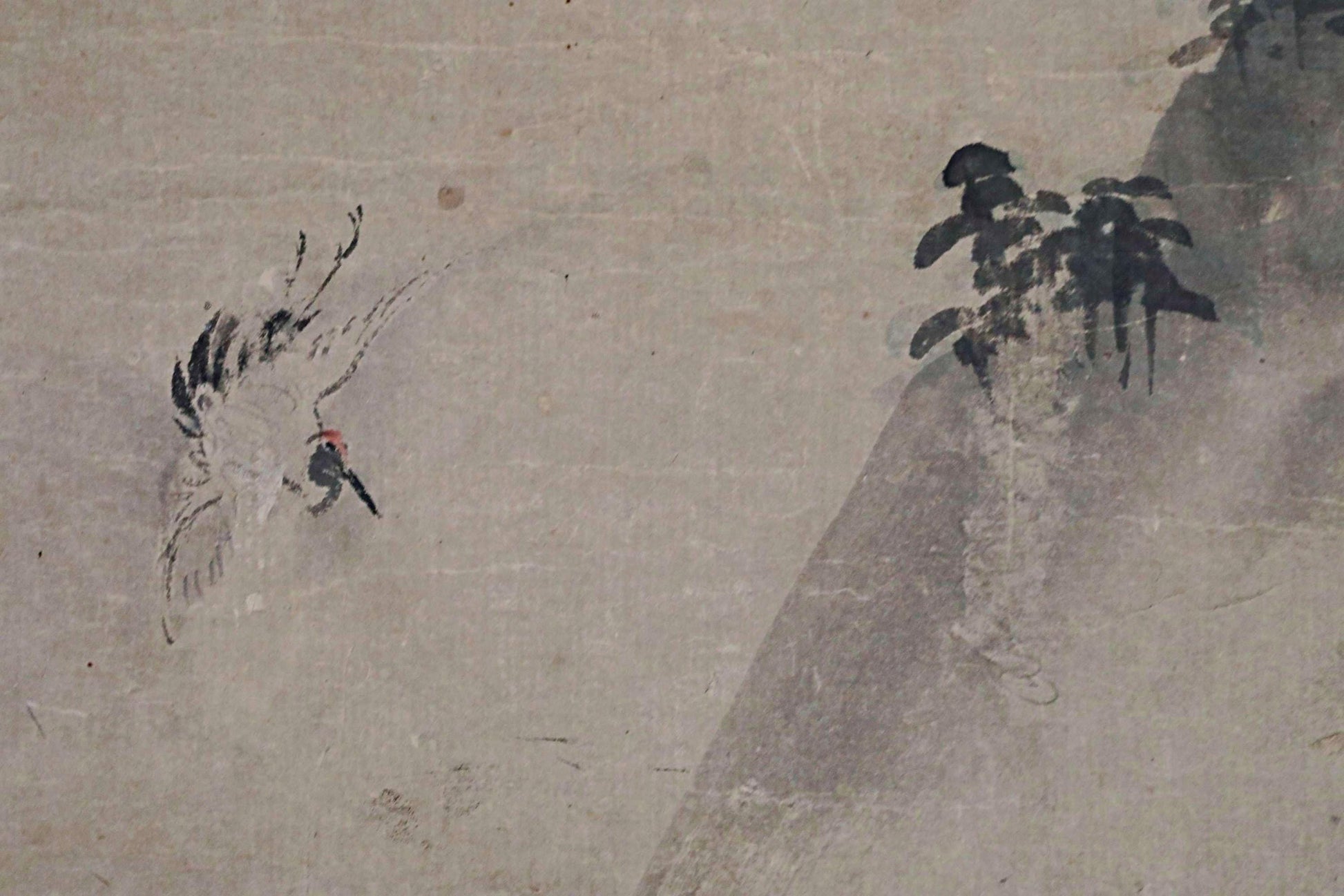 FINE! Japanese antique 1800s Edo Cranes Turtles art ink brush painting hanging scroll 土佐 Tosa school KAKEJIKU with BOX H57.5in/146cm