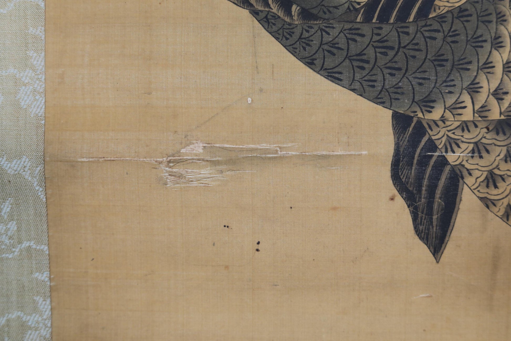 You can enjoy displaying it right away. Due to its age, there is a crease and tear in one part of the painting. There are also some small peeling and stains. However, overall it is in good condition.