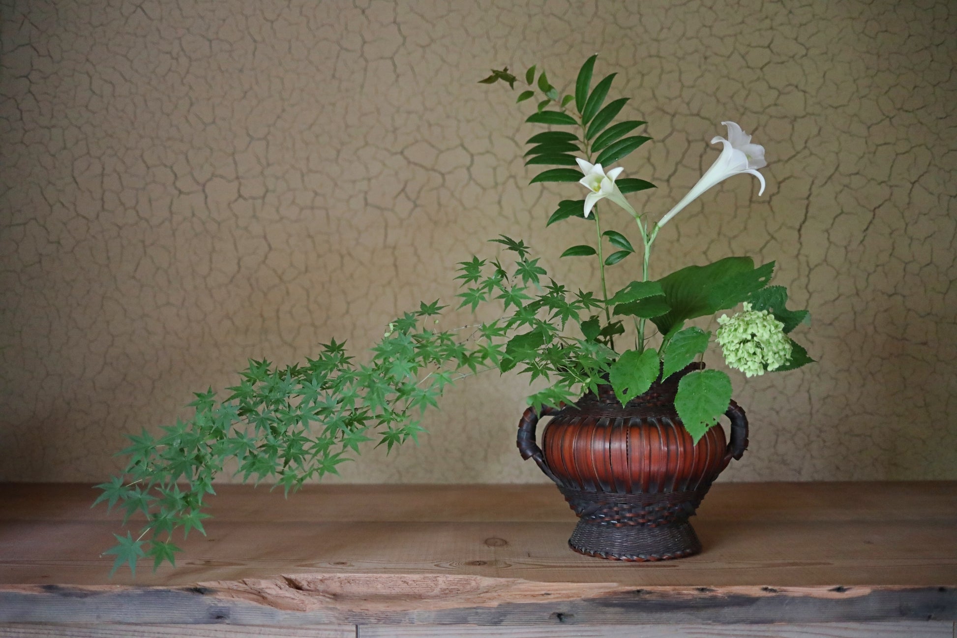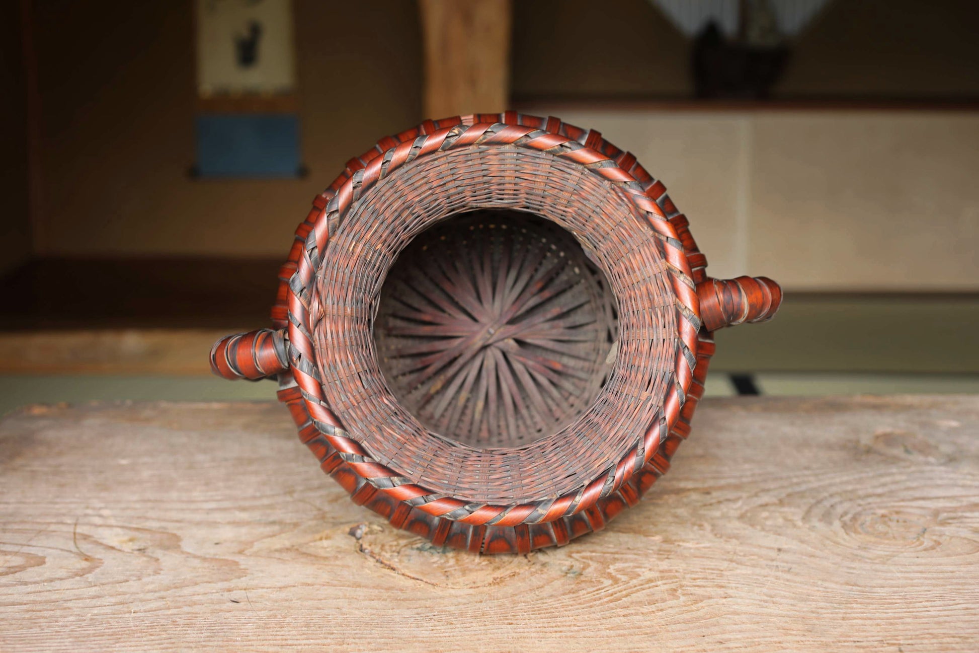 This is a flower basket with the beautiful color of bamboo over time.