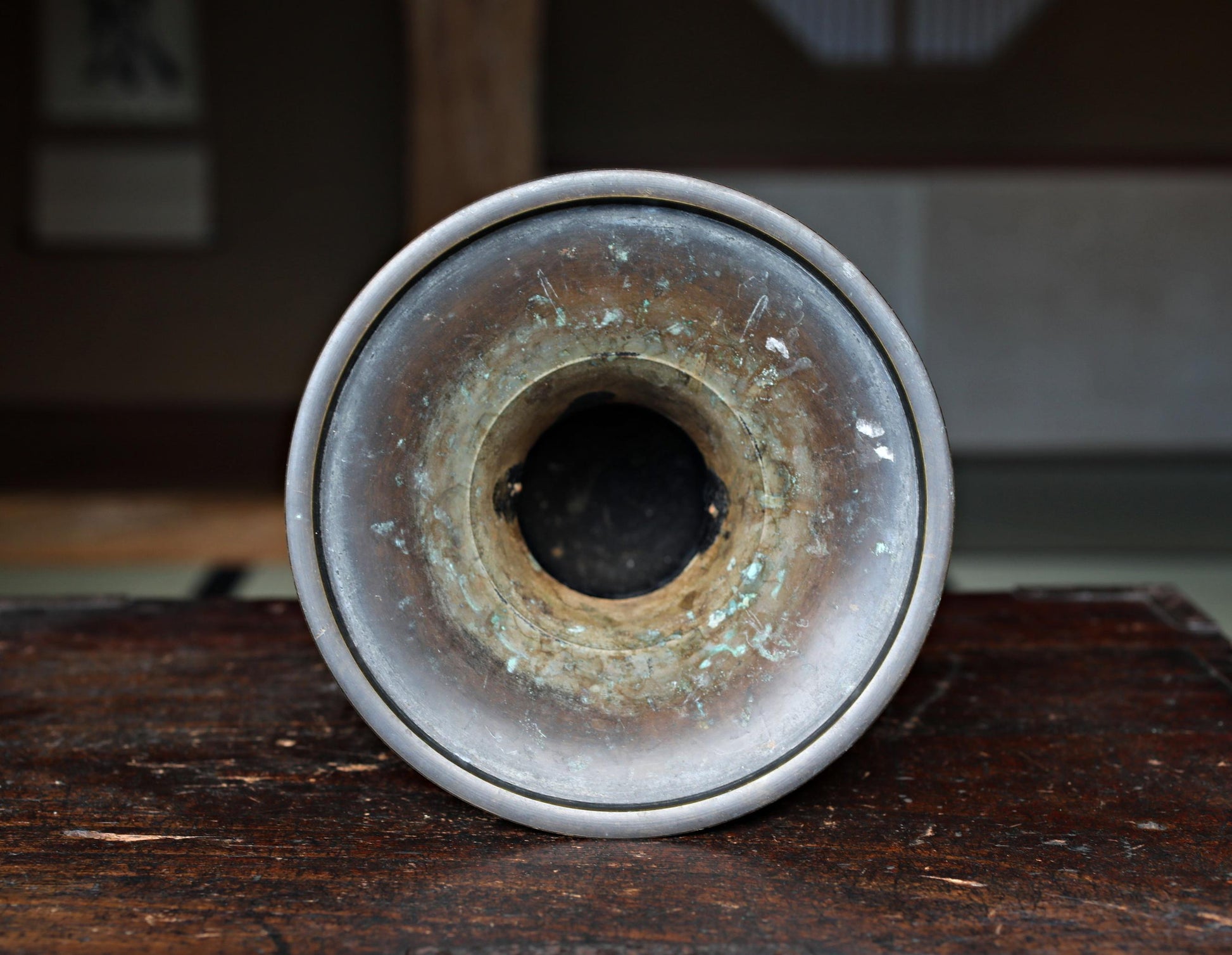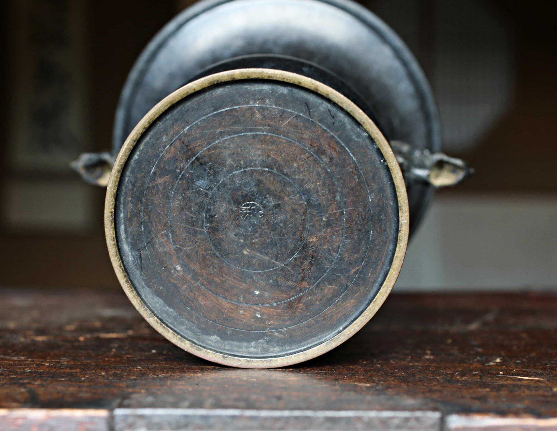 The color of copper over time creates a cool atmosphere. The lions on both sides are also beautifully crafted. These can be easily removed. On the bottom is the maker's signature.
