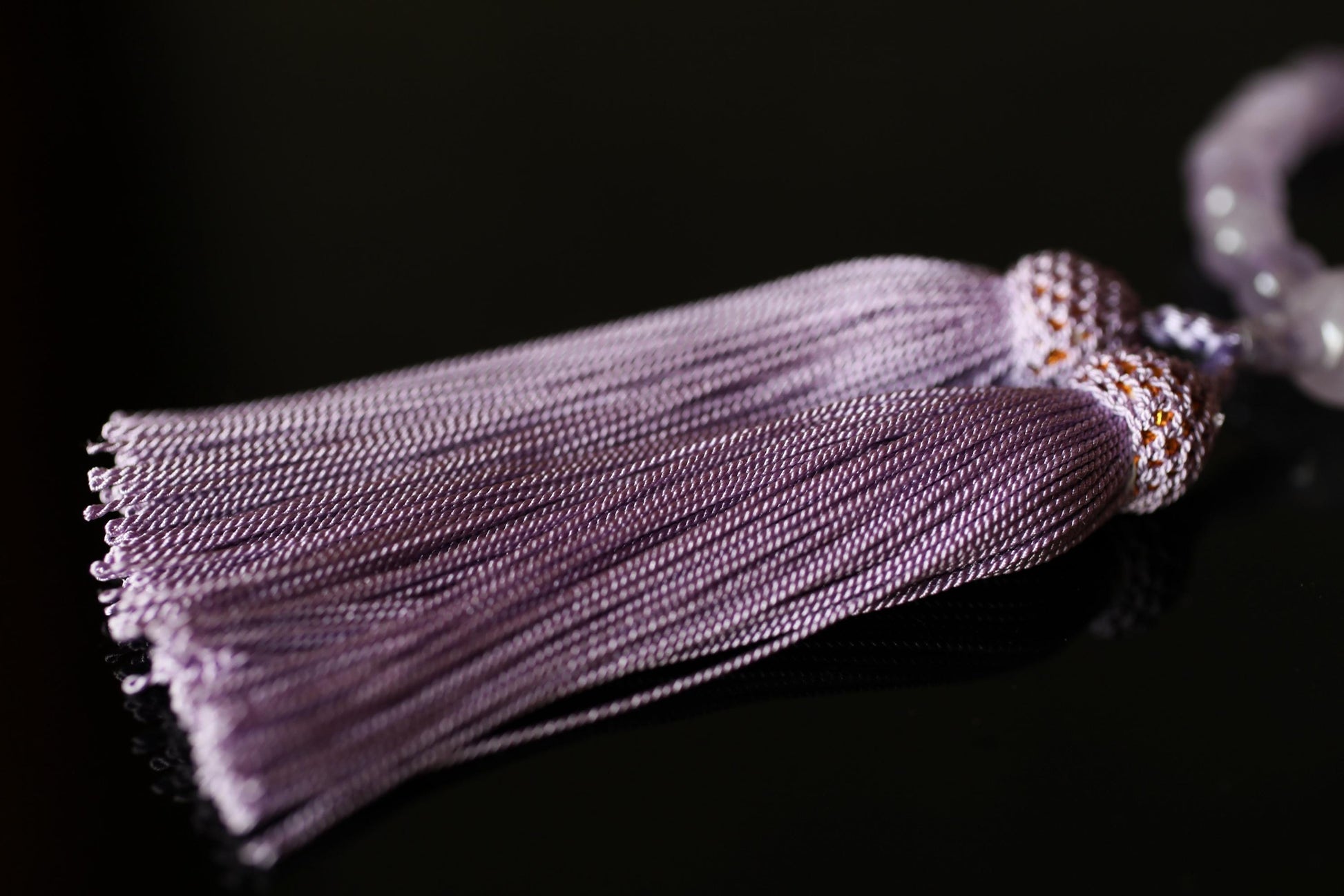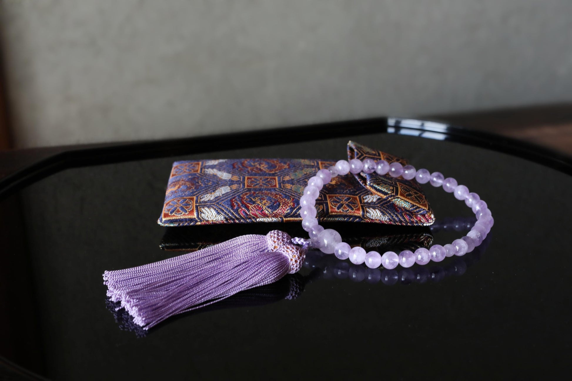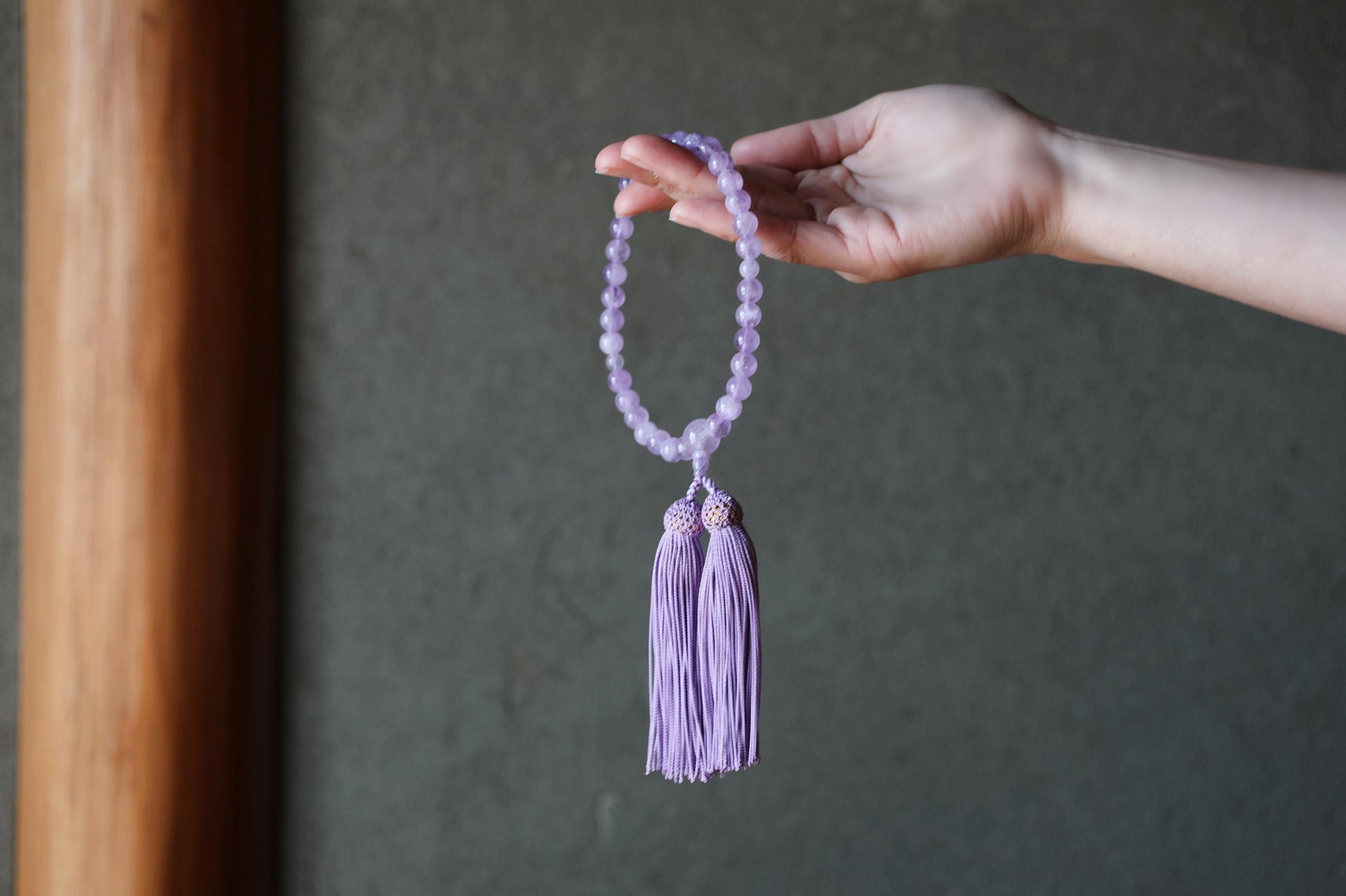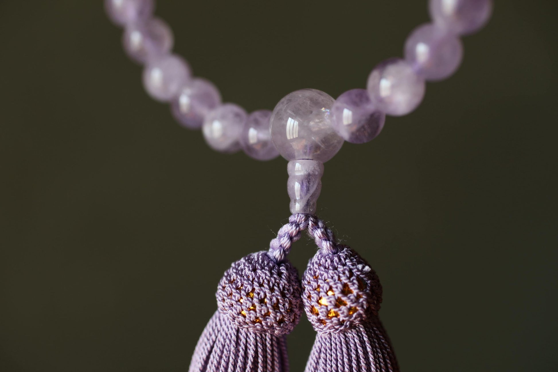 FINE! Japanese buddhist Prayer Rosary made of Amethyst beads and silk, JUZU Power stone Meditation Zen with Silk Pouch wooden box for GIT