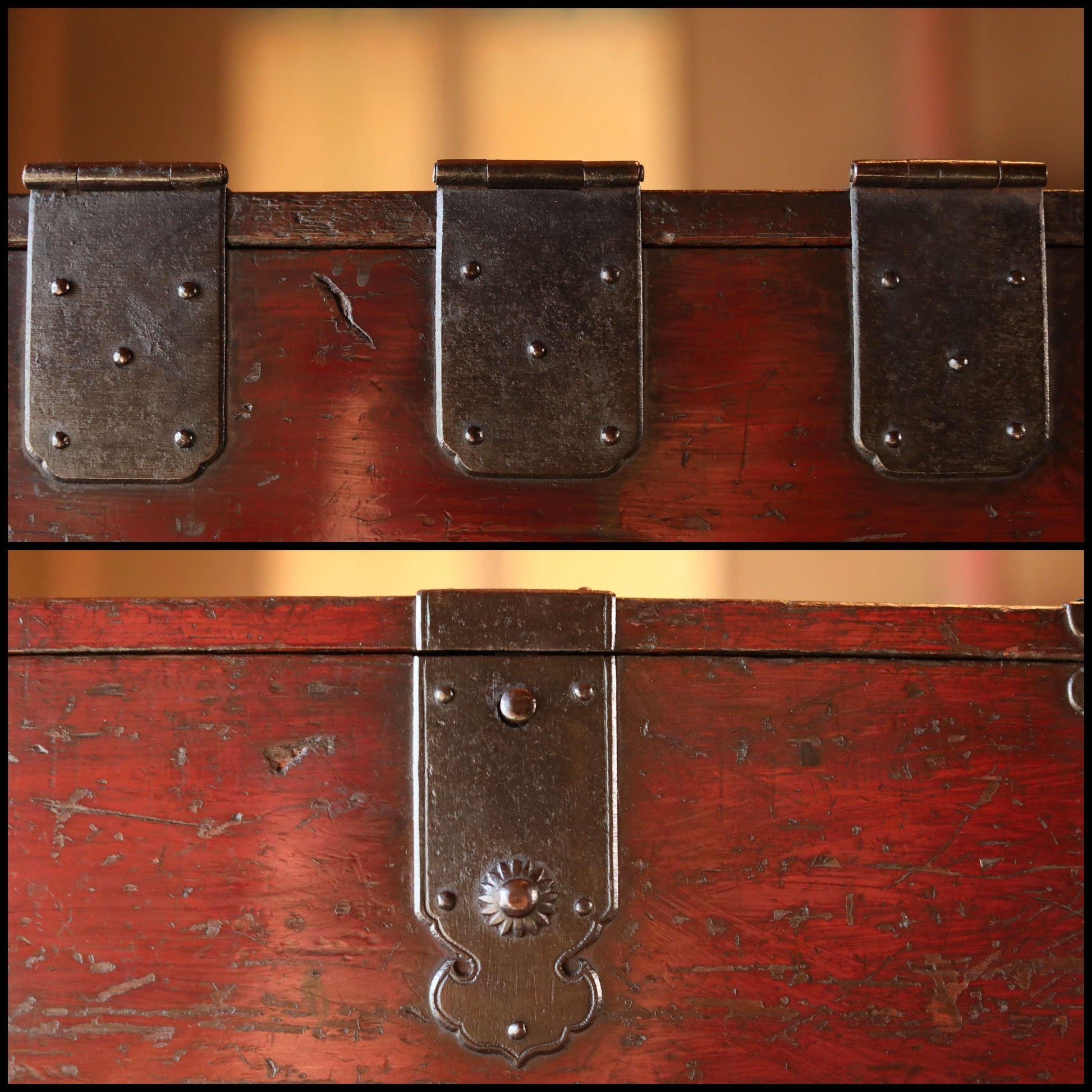 It is in very good condition and ready to use, although there are some stains and scratches due to age, and the metal fittings are damaged and rusted.