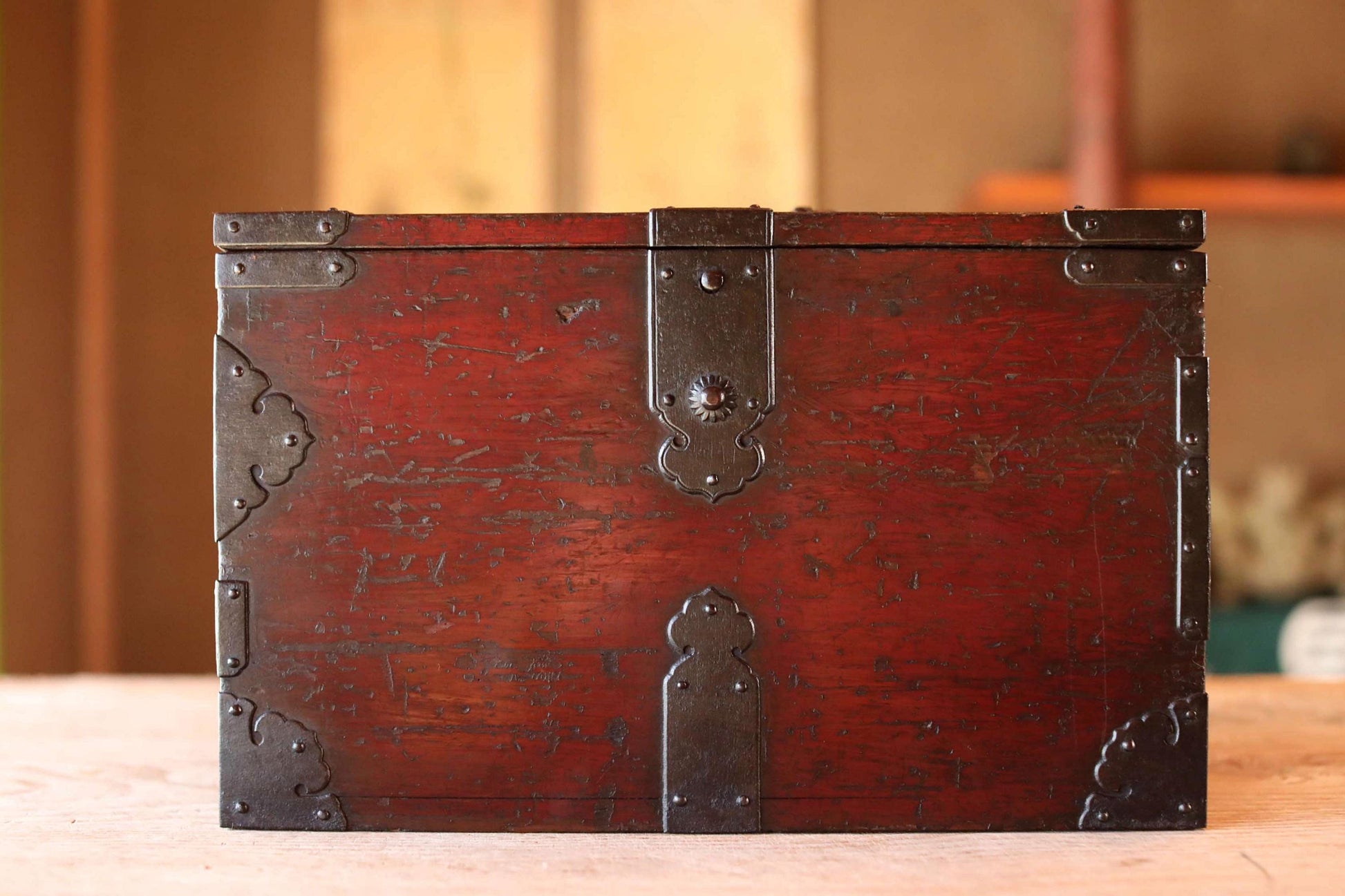 Furthermore, the metal fittings are decorated with a family crest pattern, which gives it a special feel. The year 1870 (Meiji 3) is written in Chinese characters on the back.