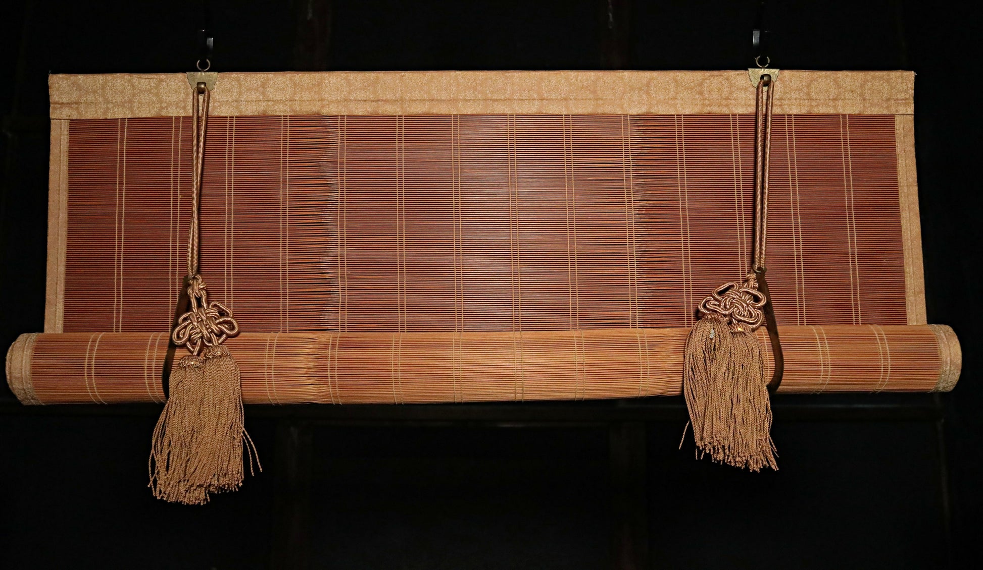 The screen is made of thinly split bamboo and other materials woven side by side with thread, and are used to divide a room or block out the sun.