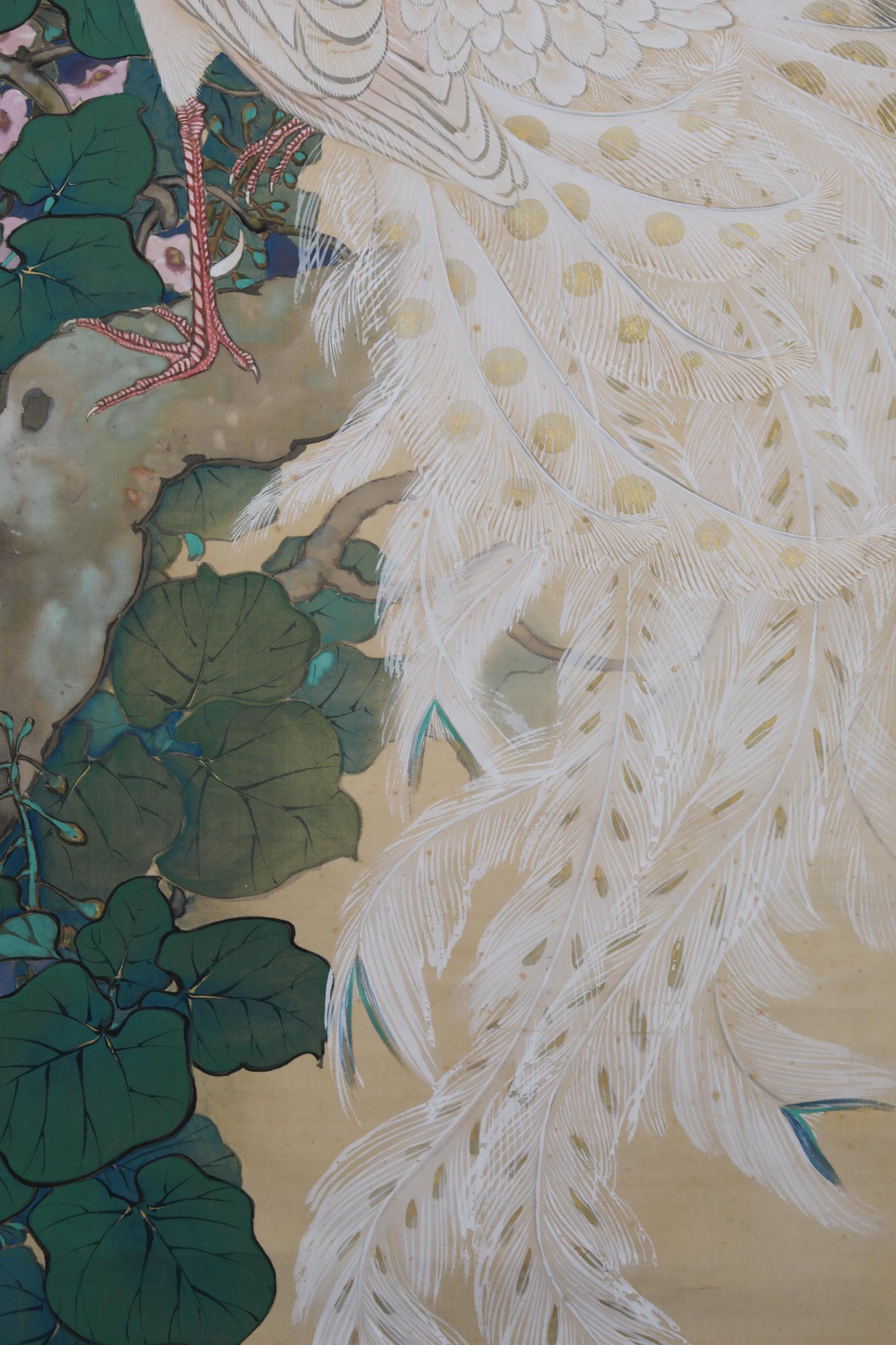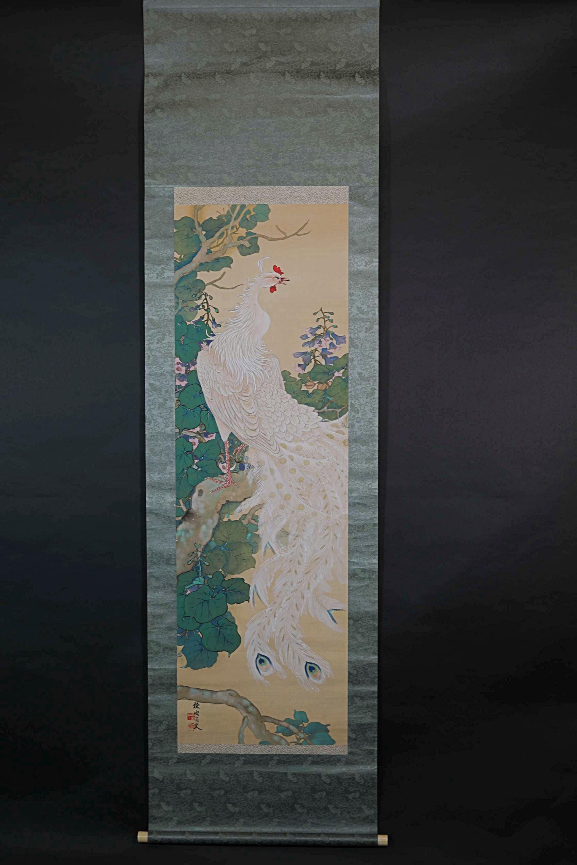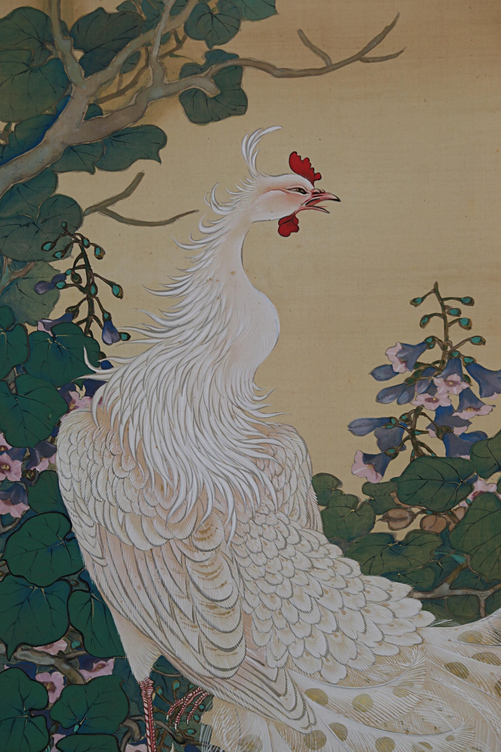 The paulownia tree was revered as the tree where the phoenix dwelled. This painting depicts the beautiful legend of the phoenix in a mysterious atmosphere with meticulous brushwork.