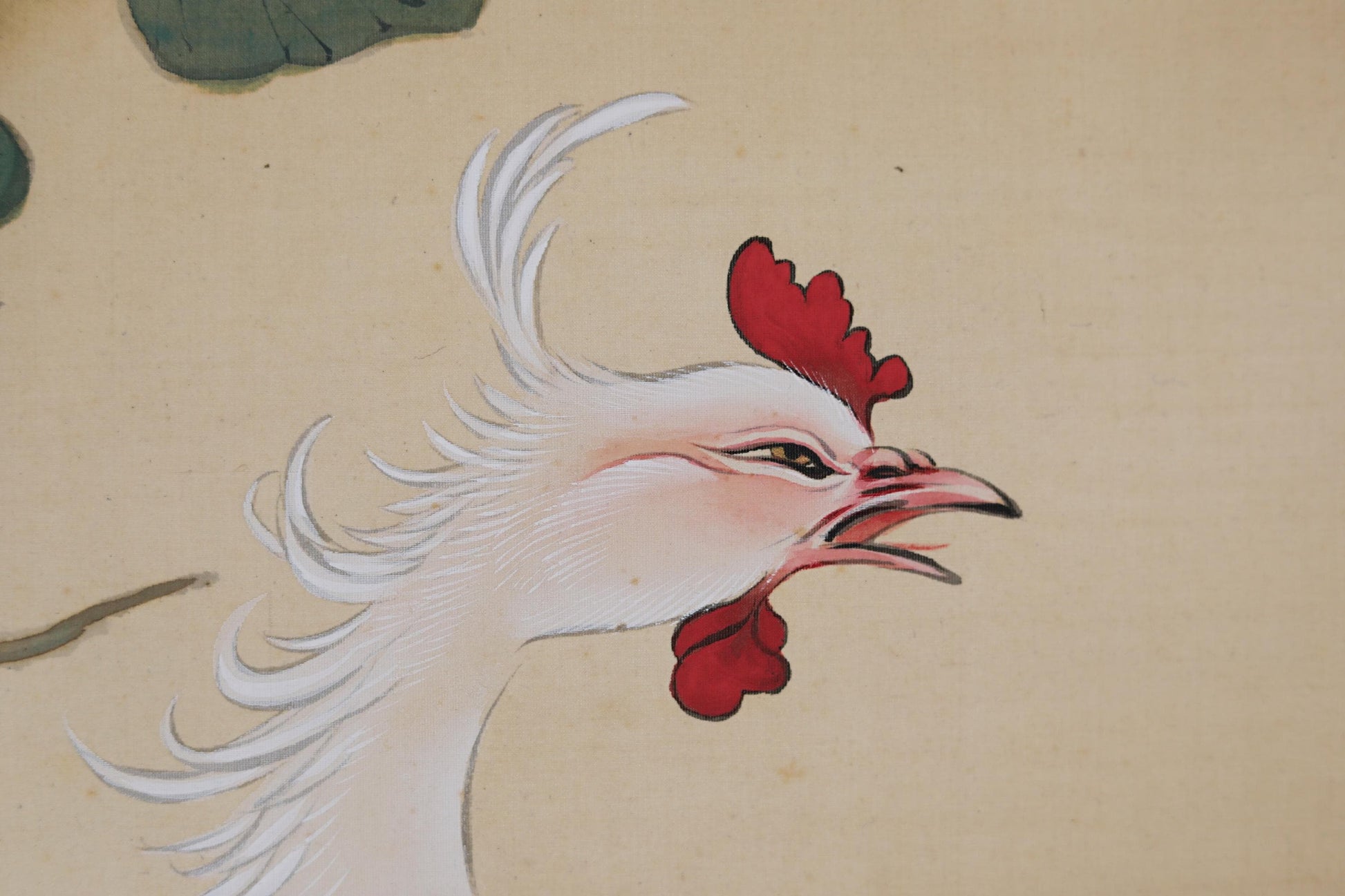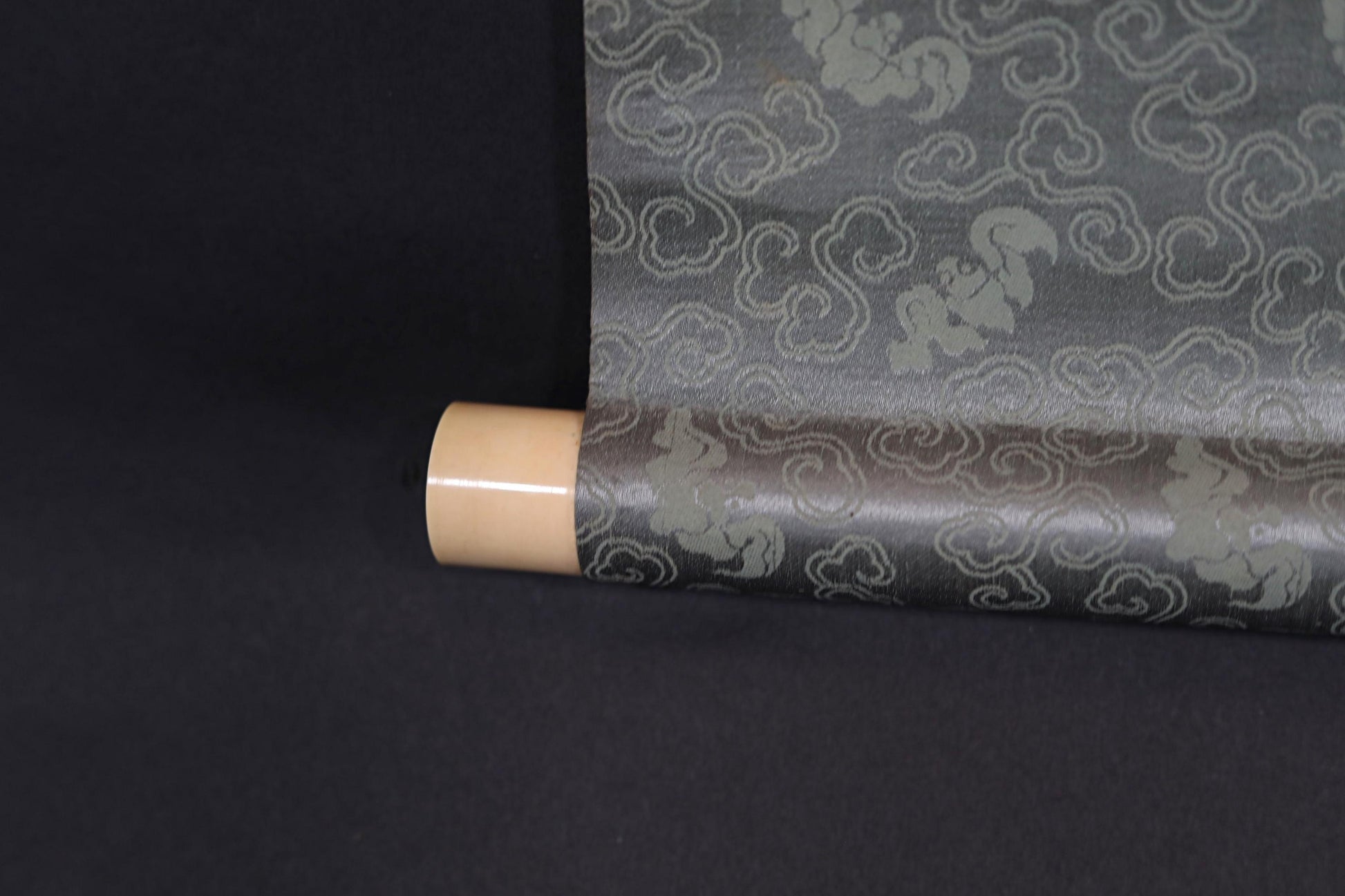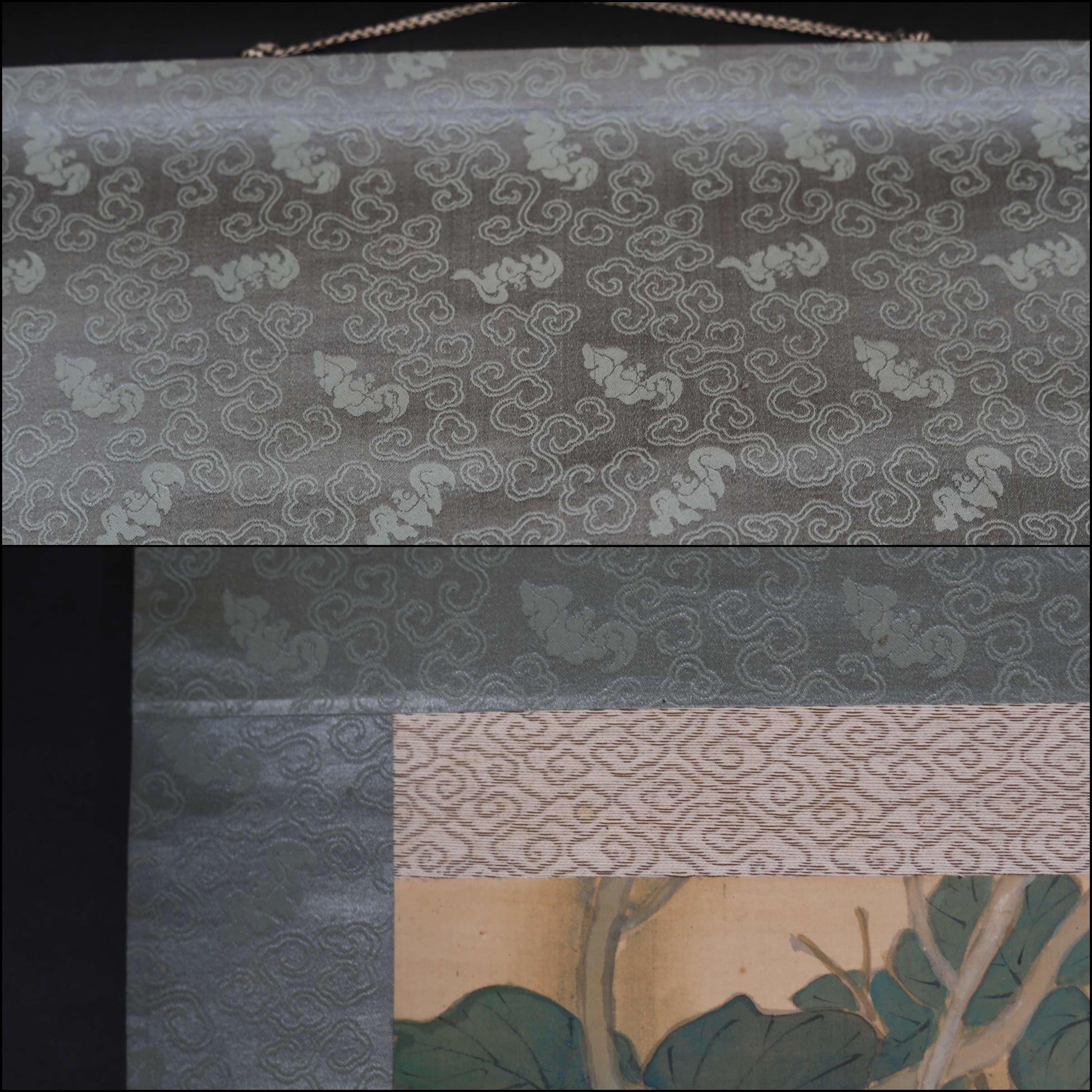 The painting is rendered on silk and mounted on silk. Upon closer inspection, one can notice a unique bat pattern woven into the fabric. The piece is in excellent condition and ready to be enjoyed. It comes in a wooden box, making it an ideal gift.