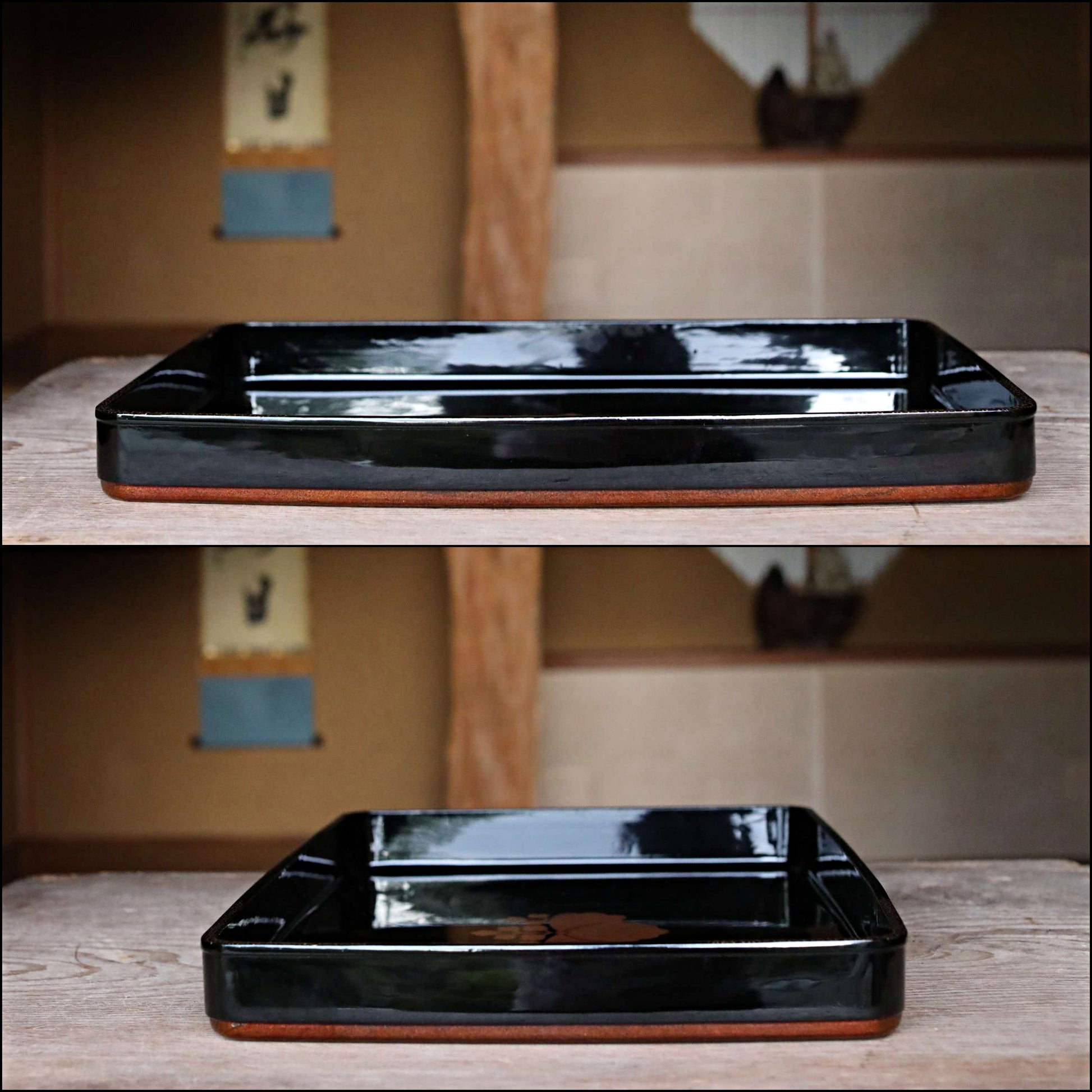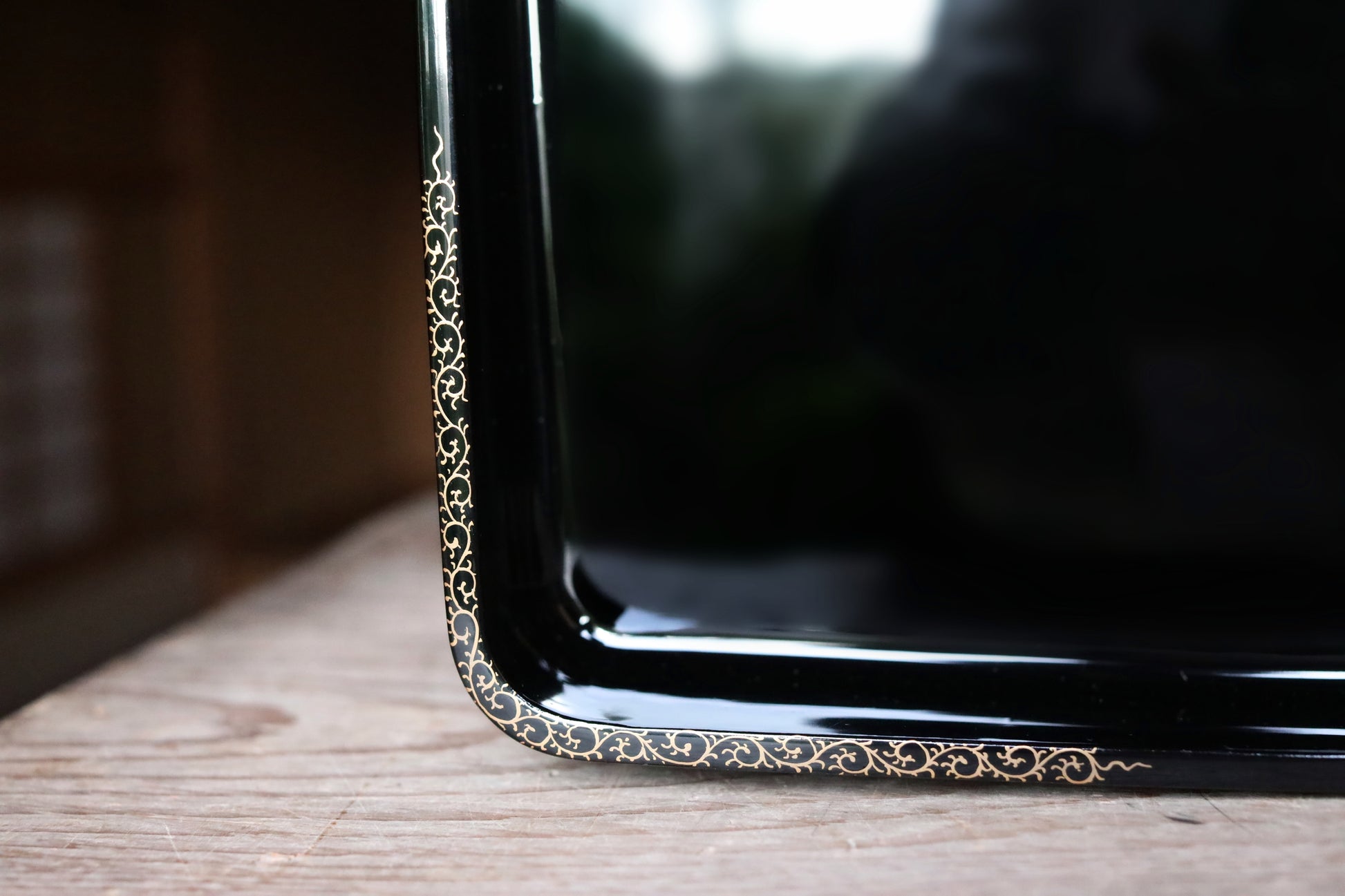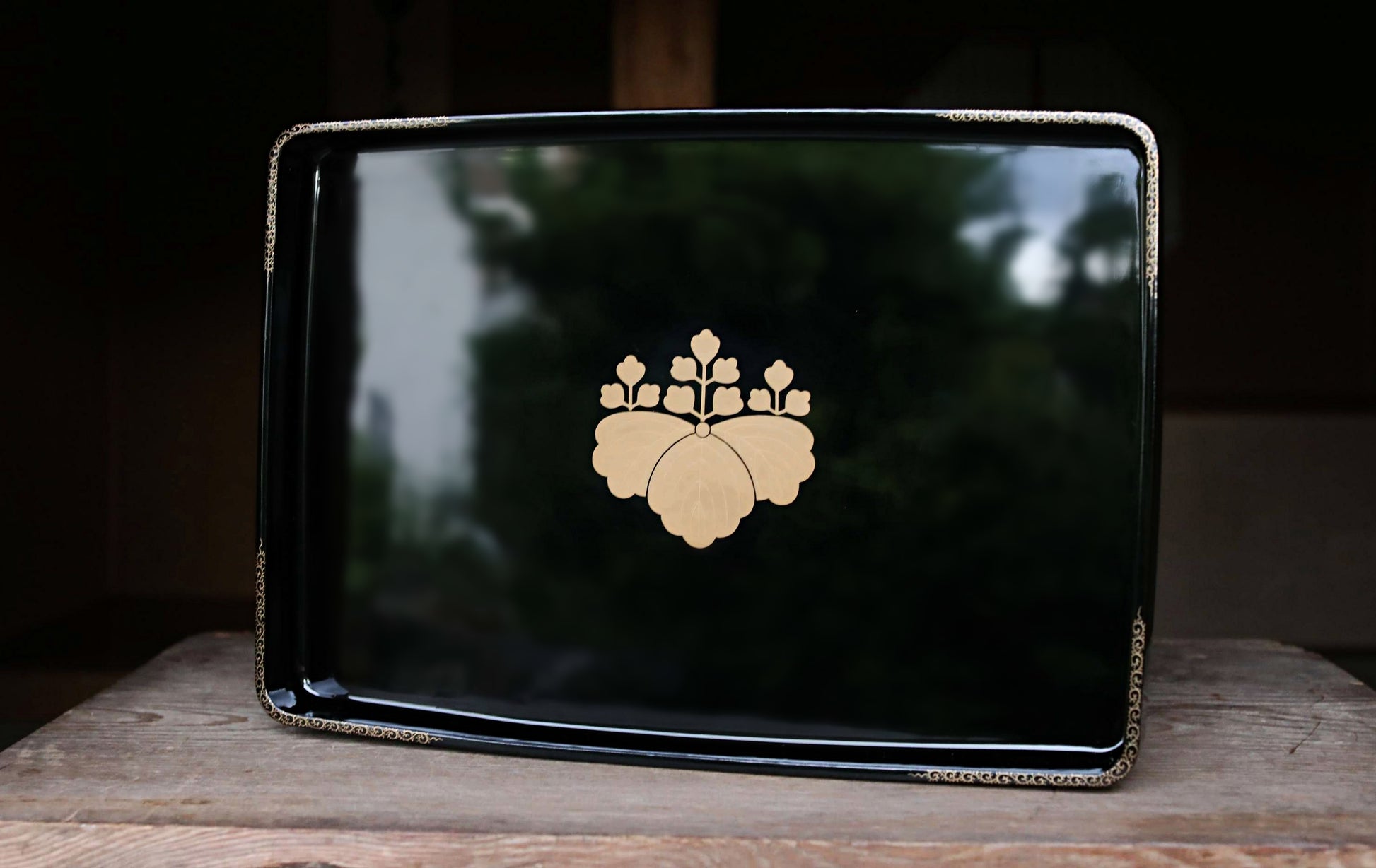 This is a wooden tray coated with black lacquer.