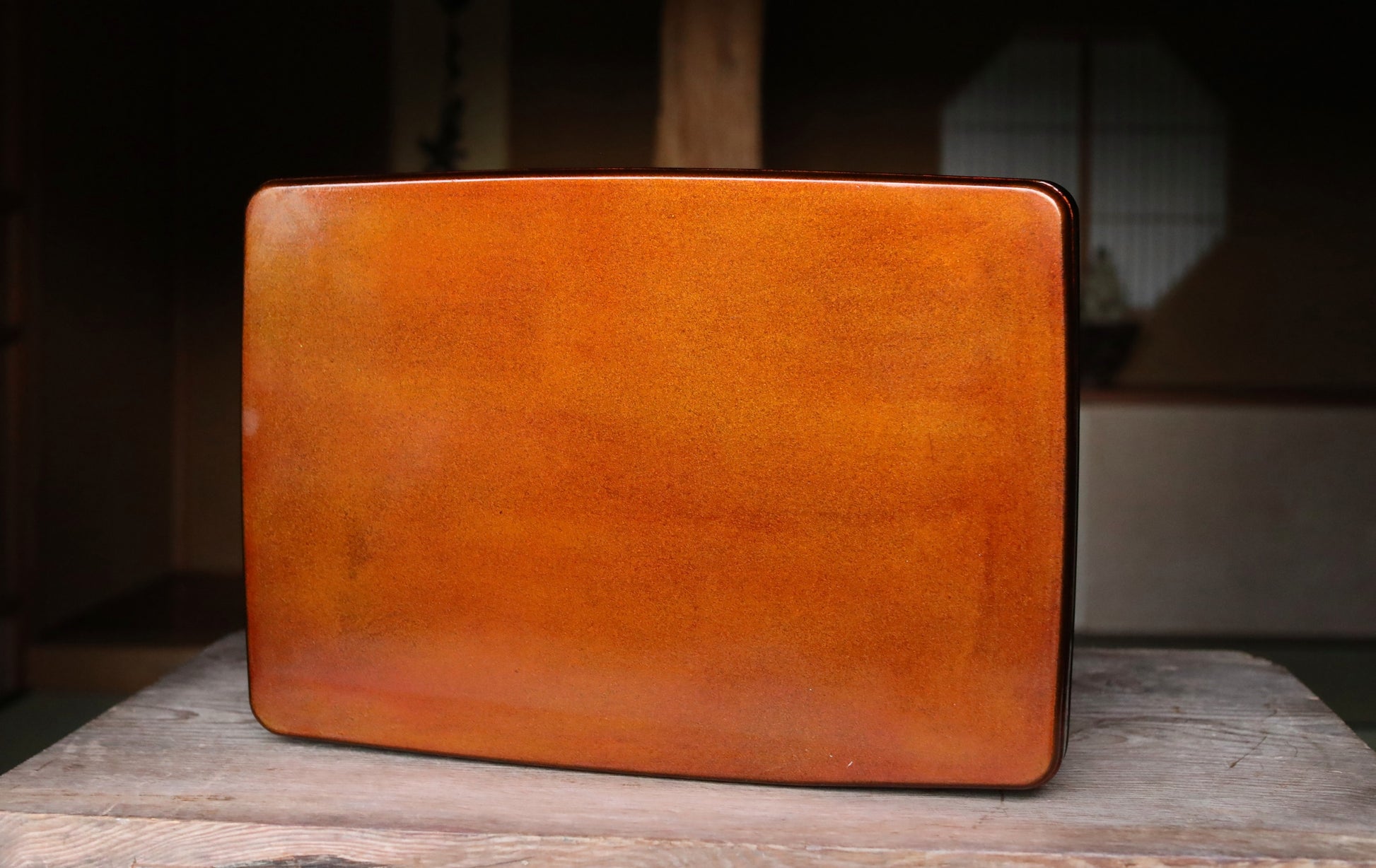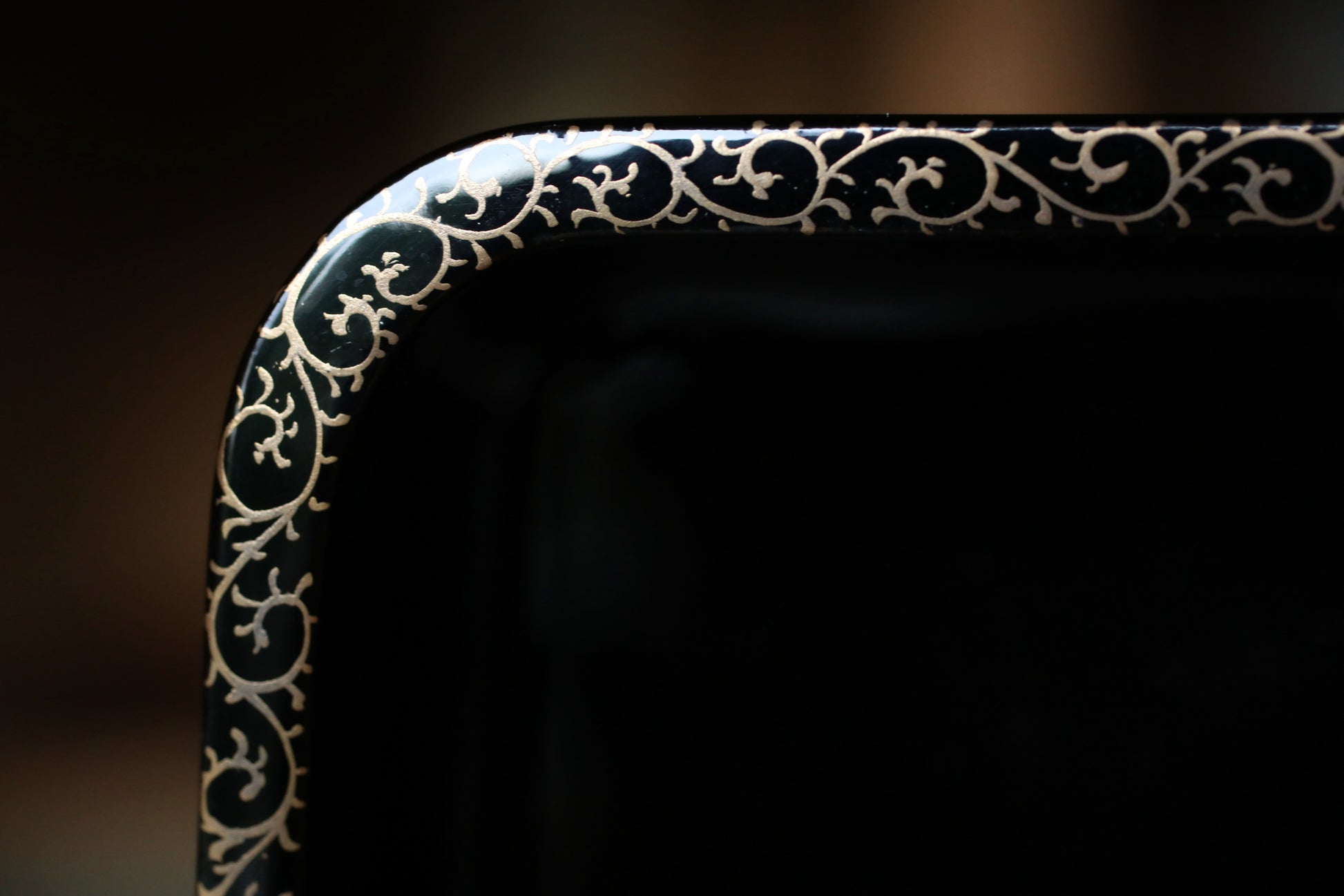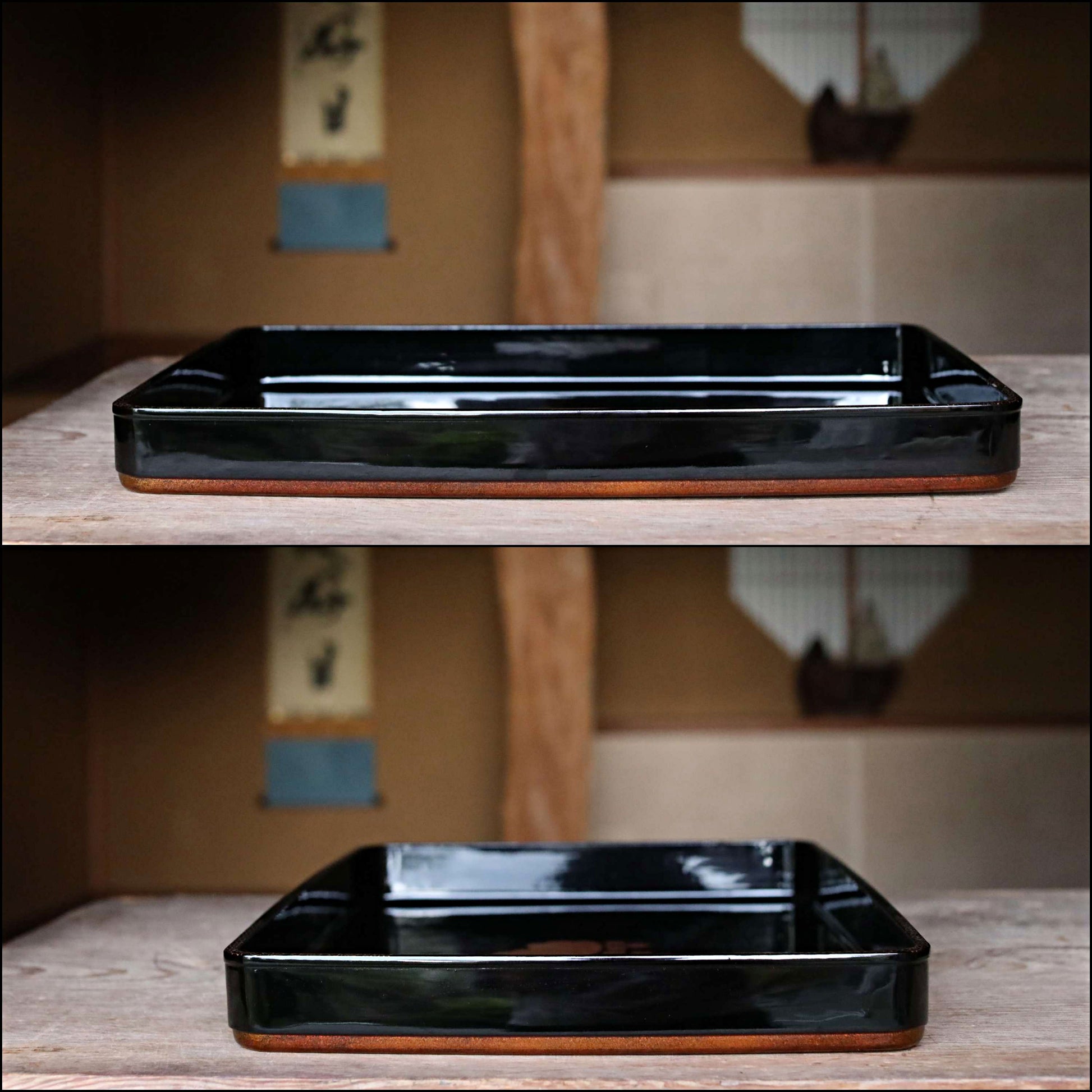 This is a wooden tray coated with black lacquer.