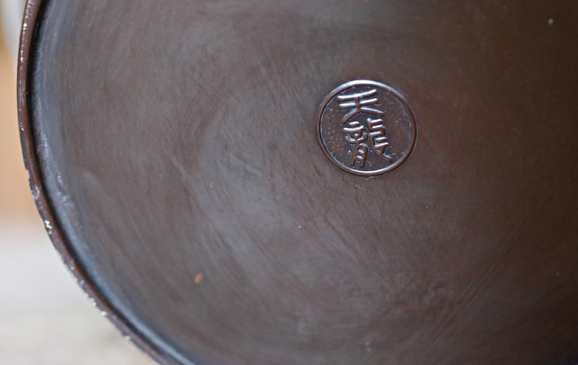 It is a copper pot made in Toyama Prefecture, famous for its Takaoka copperware. There is a 天龍 signature engraved on the bottom.