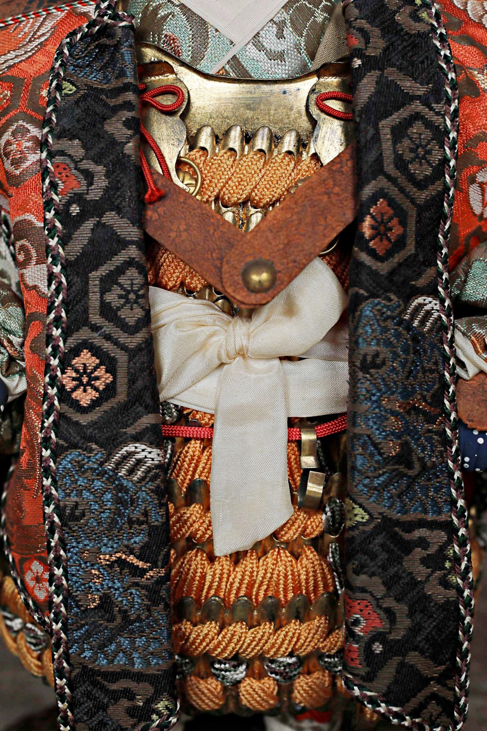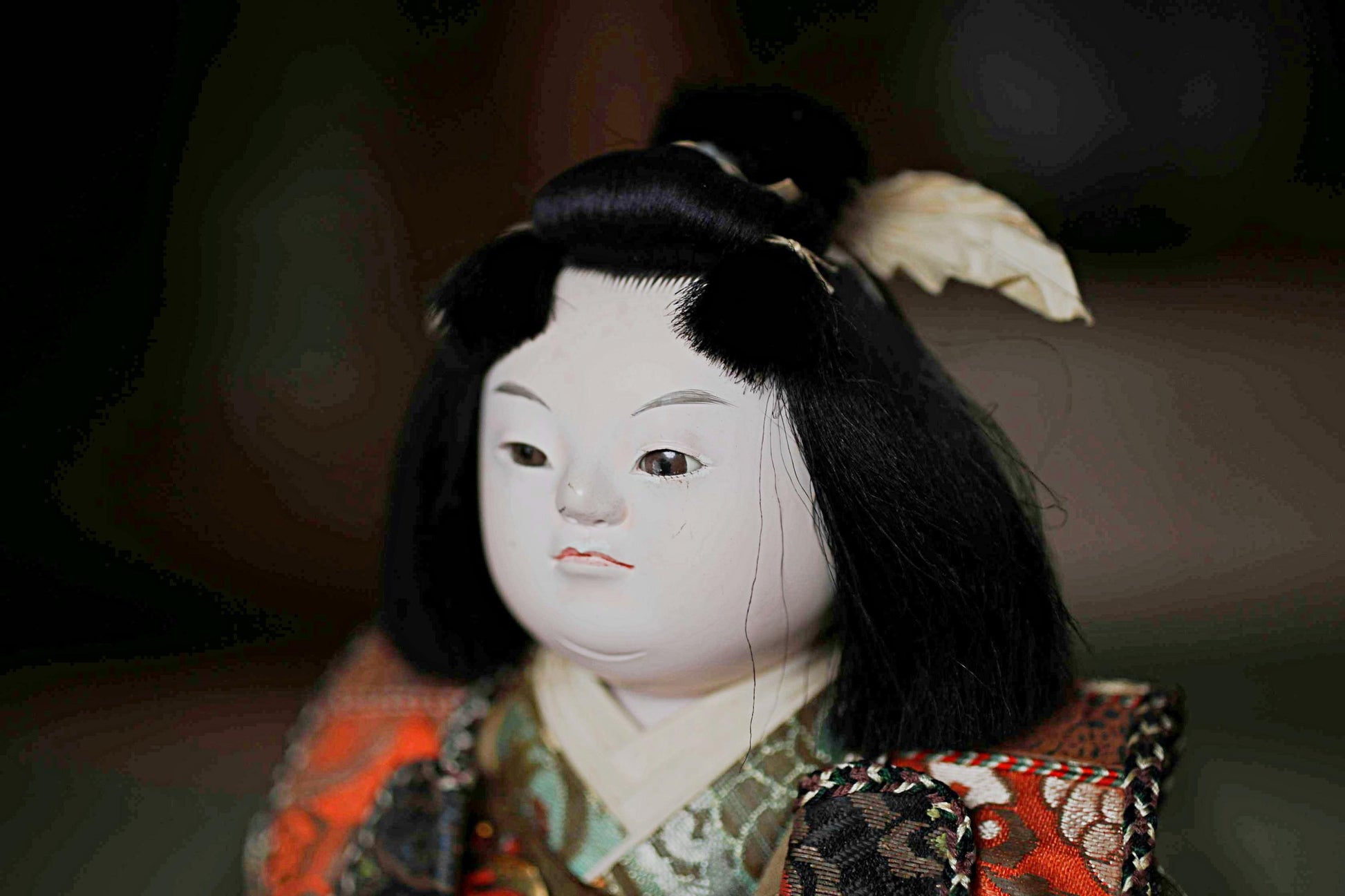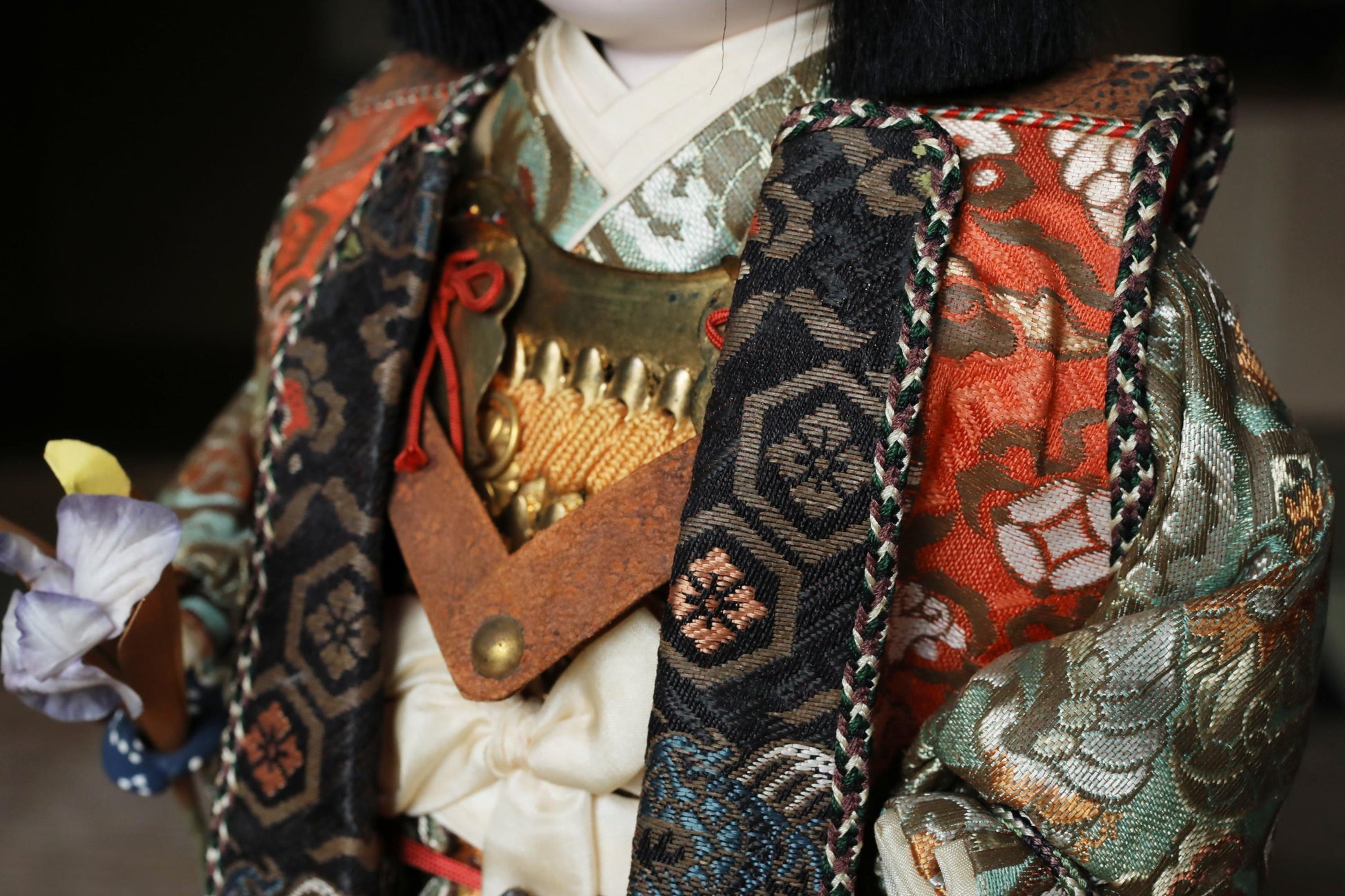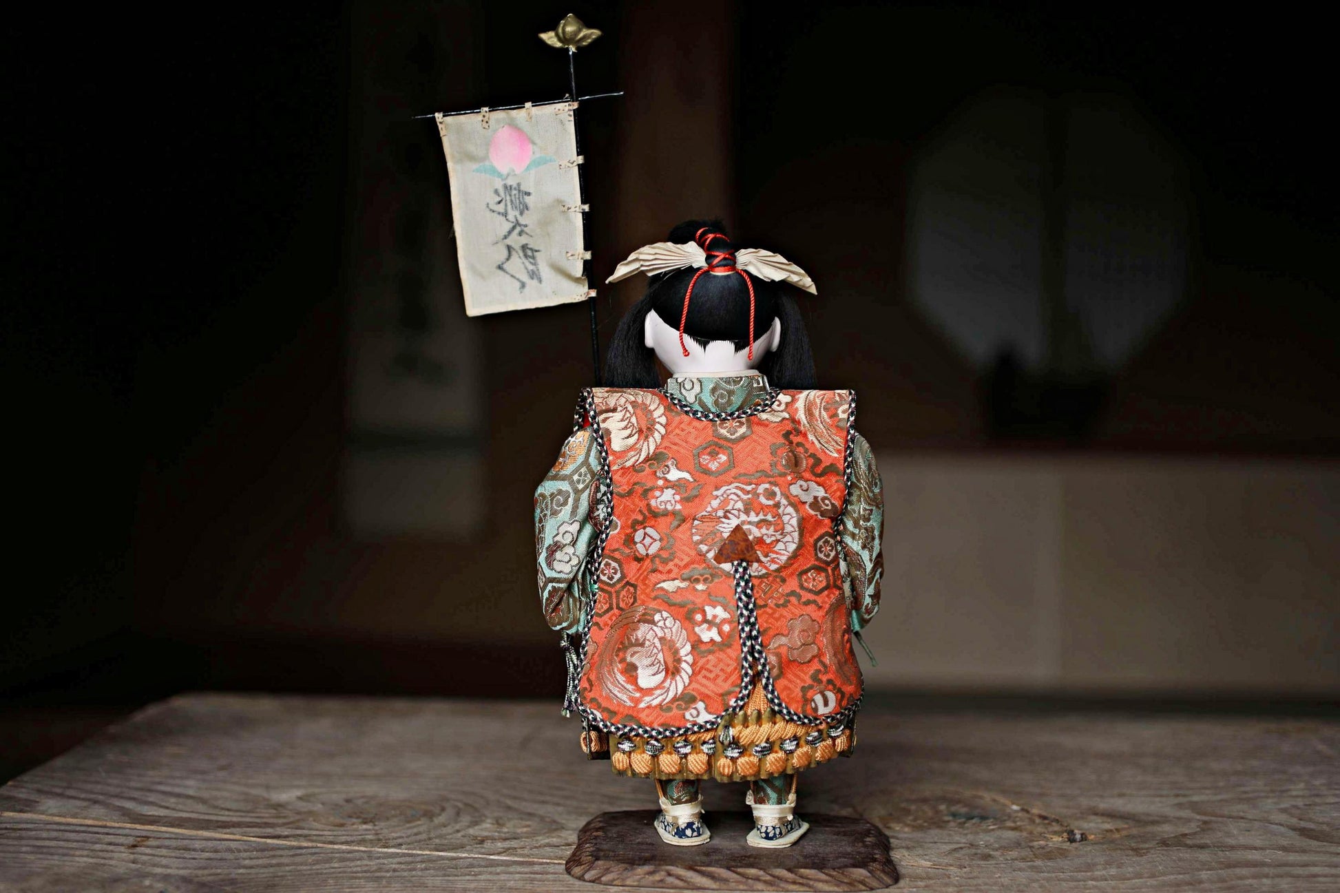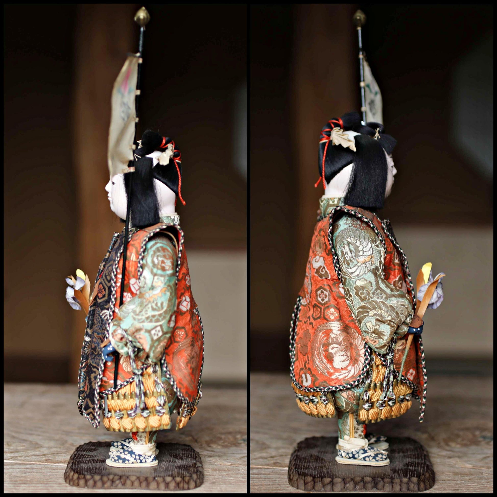 Flags and other items with Momotaro written on them can be removed. He is holding an iris flower in his hand. It is truly beautiful piece of work.