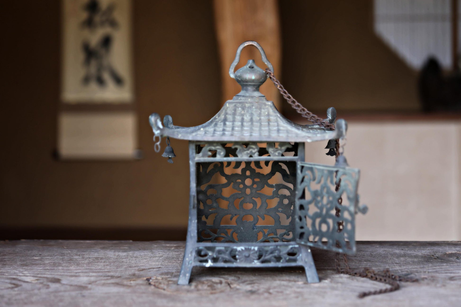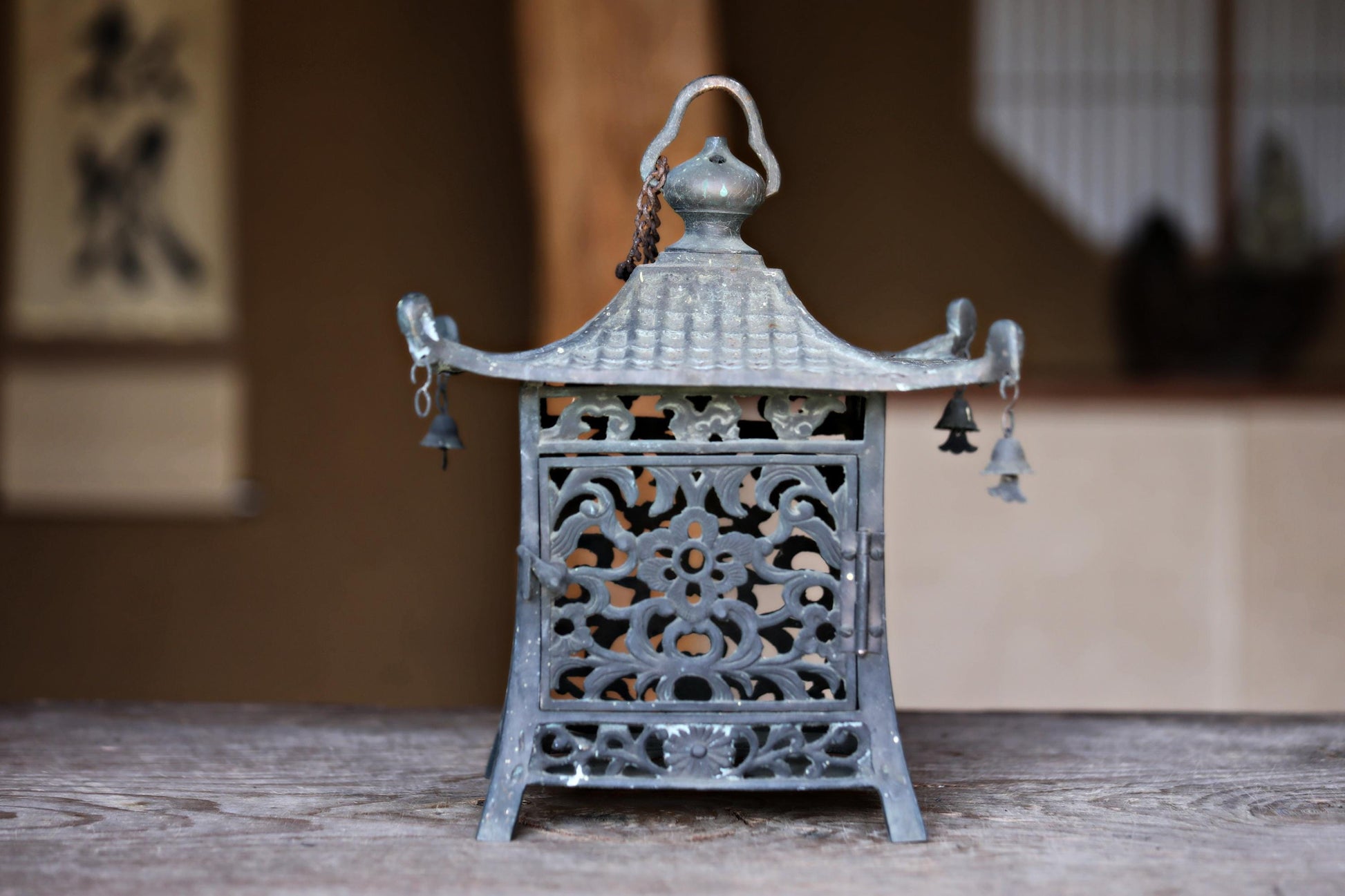 This is a beautiful lantern made of copper. This is called 灯籠Touro.