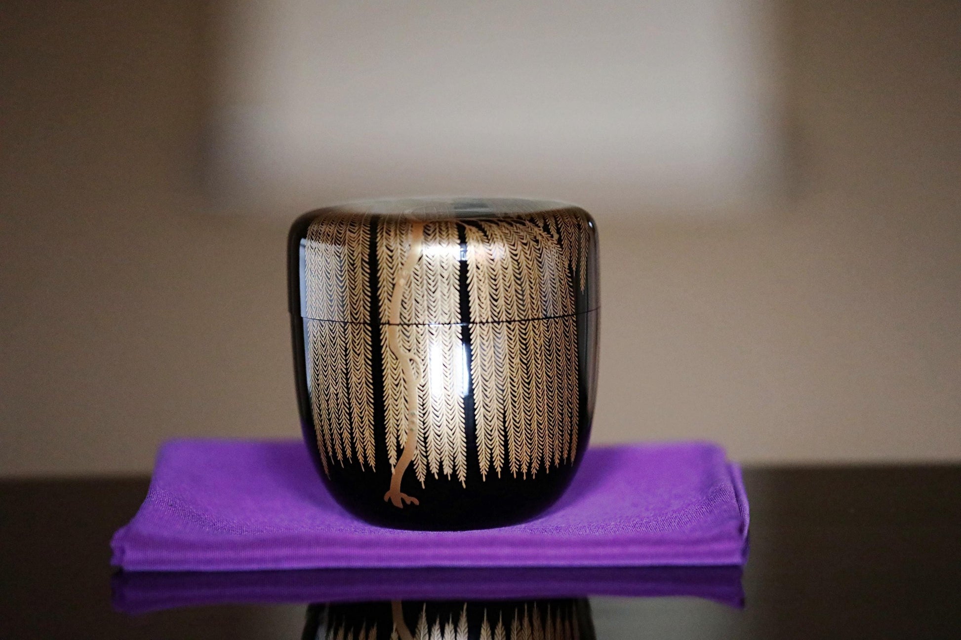 This willow tree is also really beautiful with each leaf delicately drawn. If you look closely, you can see small shells cut out in a diamond shape and embedded in the trunk, which sometimes sparkles when the light hits it, giving it a three-dimensional effect. Willow trees have been popular in Japan as a symbol of protection against evil, good luck, health, and beauty.In the tea ceremony, people enjoy changing utensils according to the season, and willow is one of the utensils recommended for spring and summer.