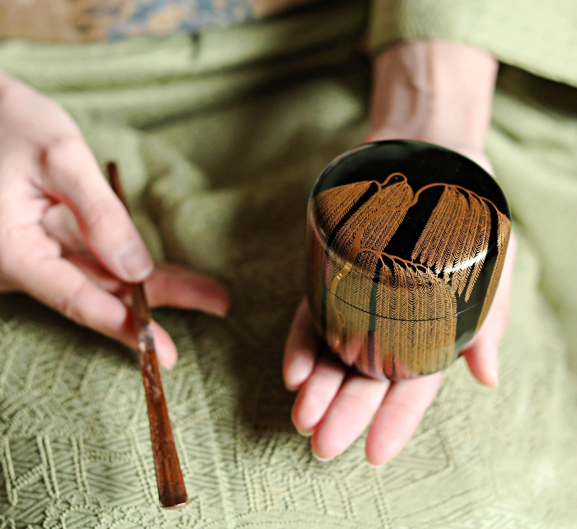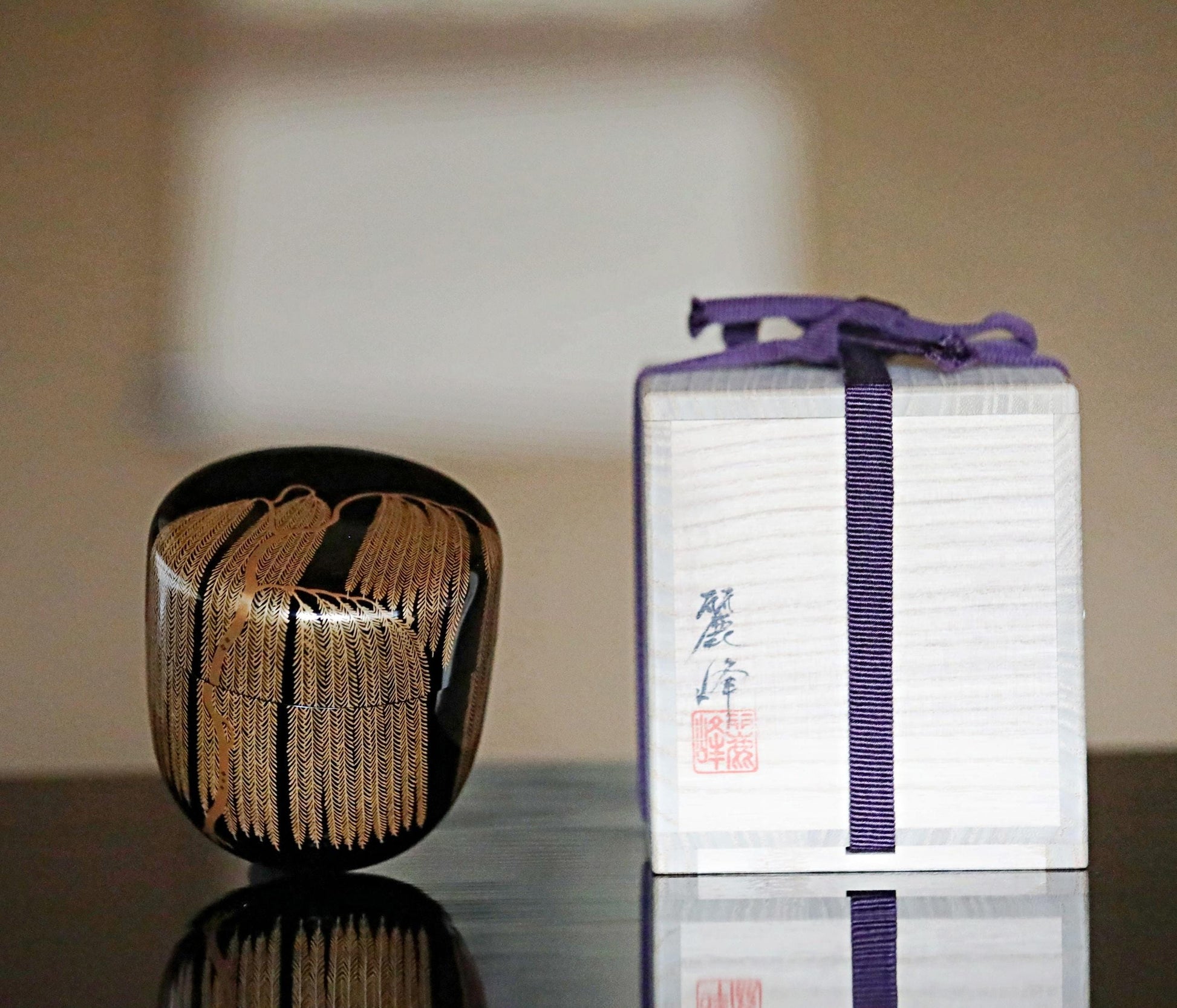 The artist is Reiho Sasaki, a famous maki-e artist for tea ceremony utensils, who is especially good at making jujube (jujube-shaped tea caddies). His technique of maki-e is excellent and he produces beautifully decorated works.