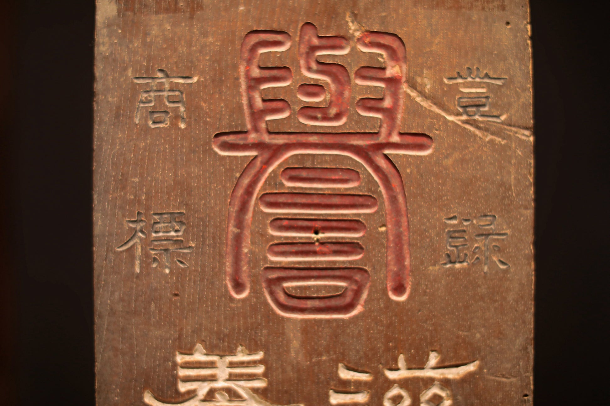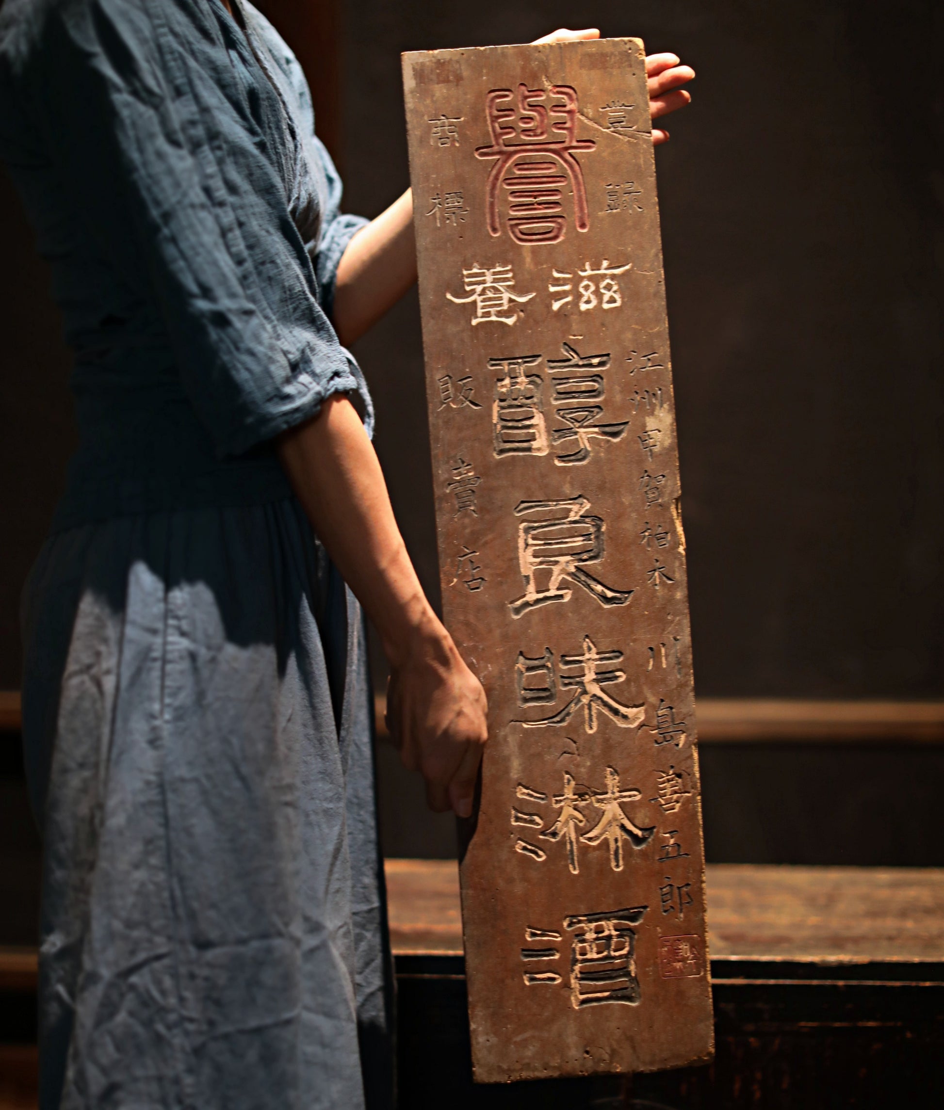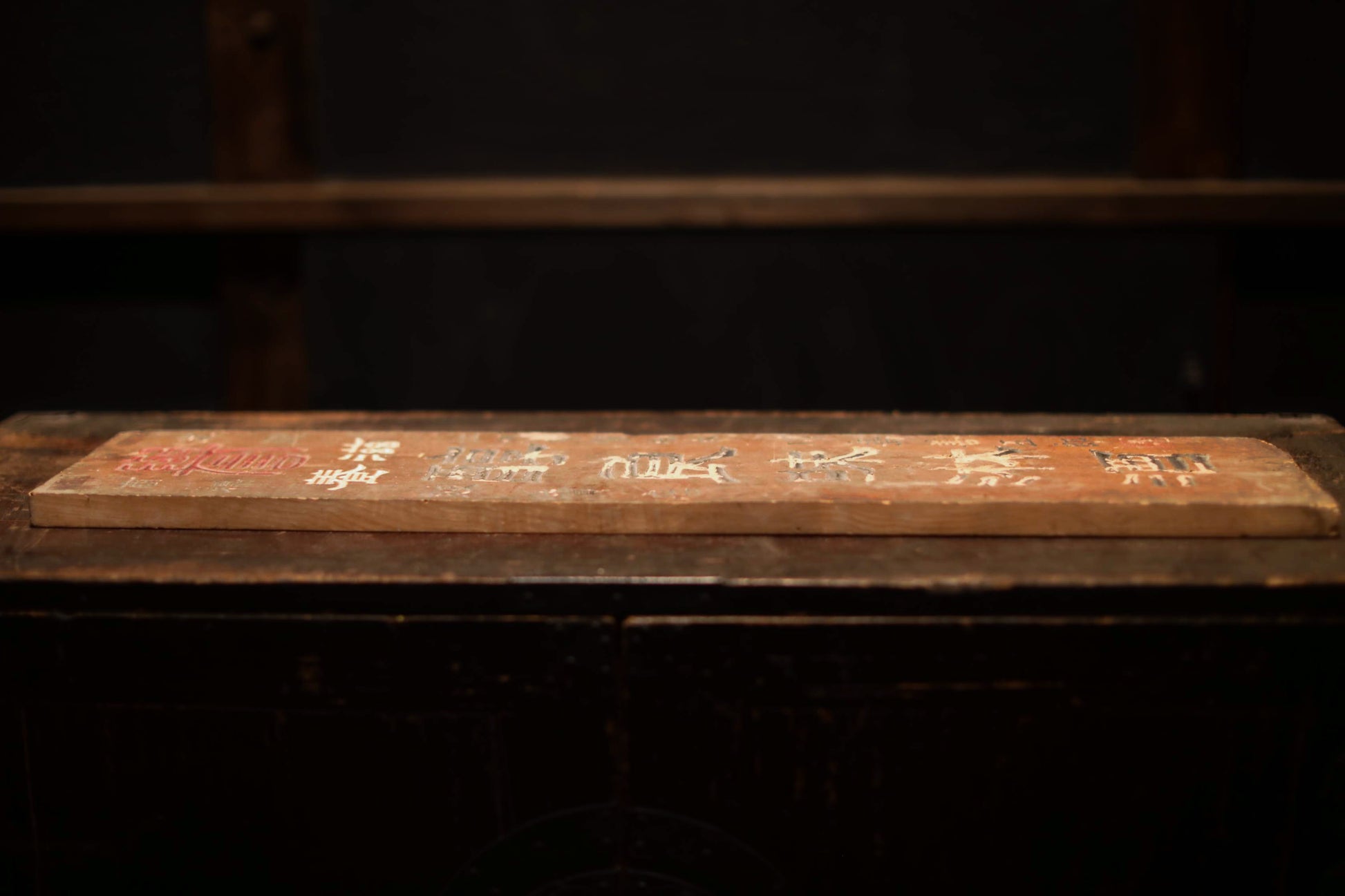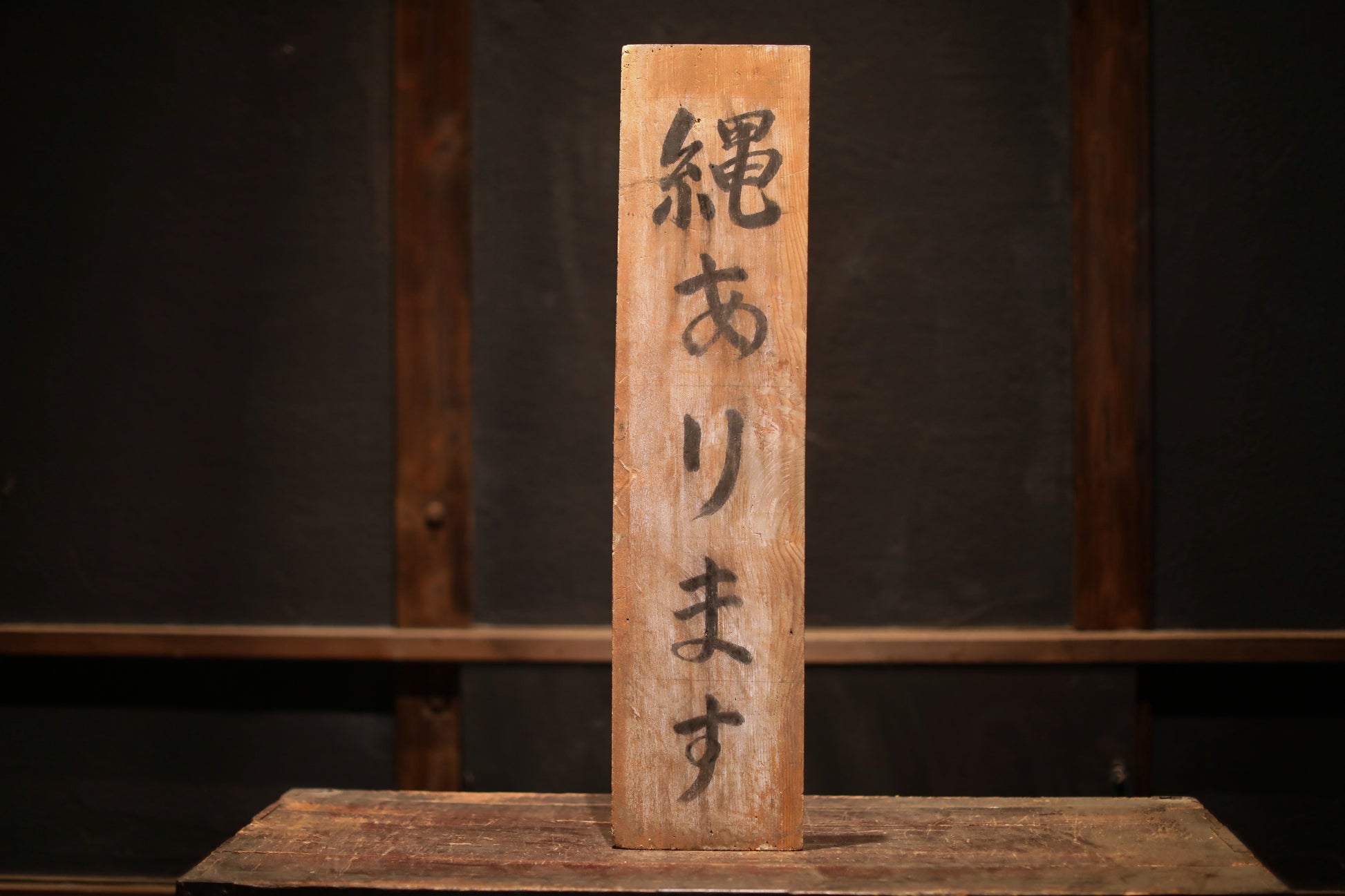 Hand-carved signs were once mainstream, but with the end of the Edo period, they were replaced by signs where characters were painted onto thin iron sheets. This sign is a legacy from the final era of hand-carved signs. The appeal lies in the unique texture created by the passage of time, such as the numerous scratches and chipped paint.
