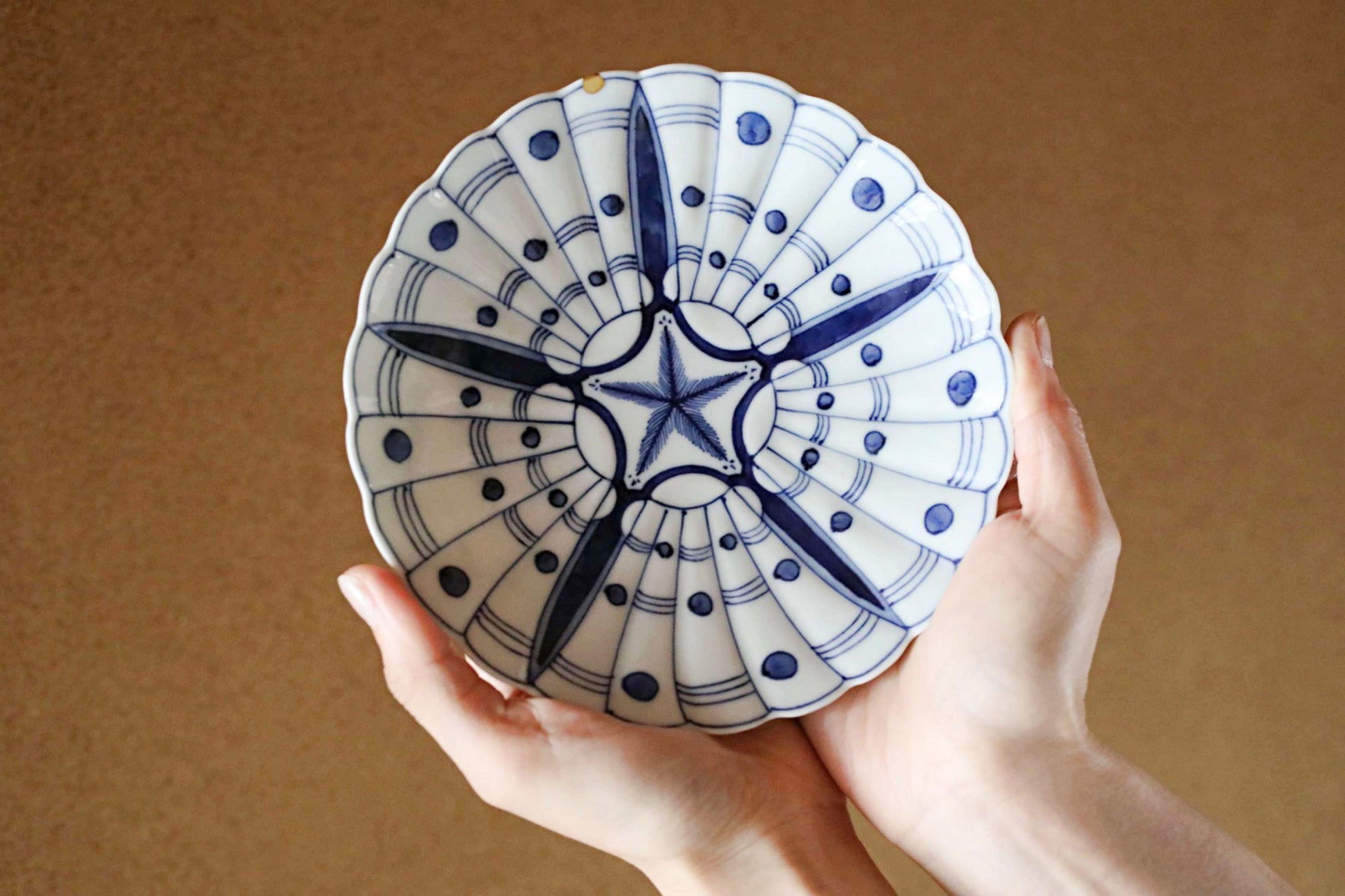 In the center is a starfish-like design. The fact that each piece is hand-drawn and therefore slightly different from the next is also interesting.