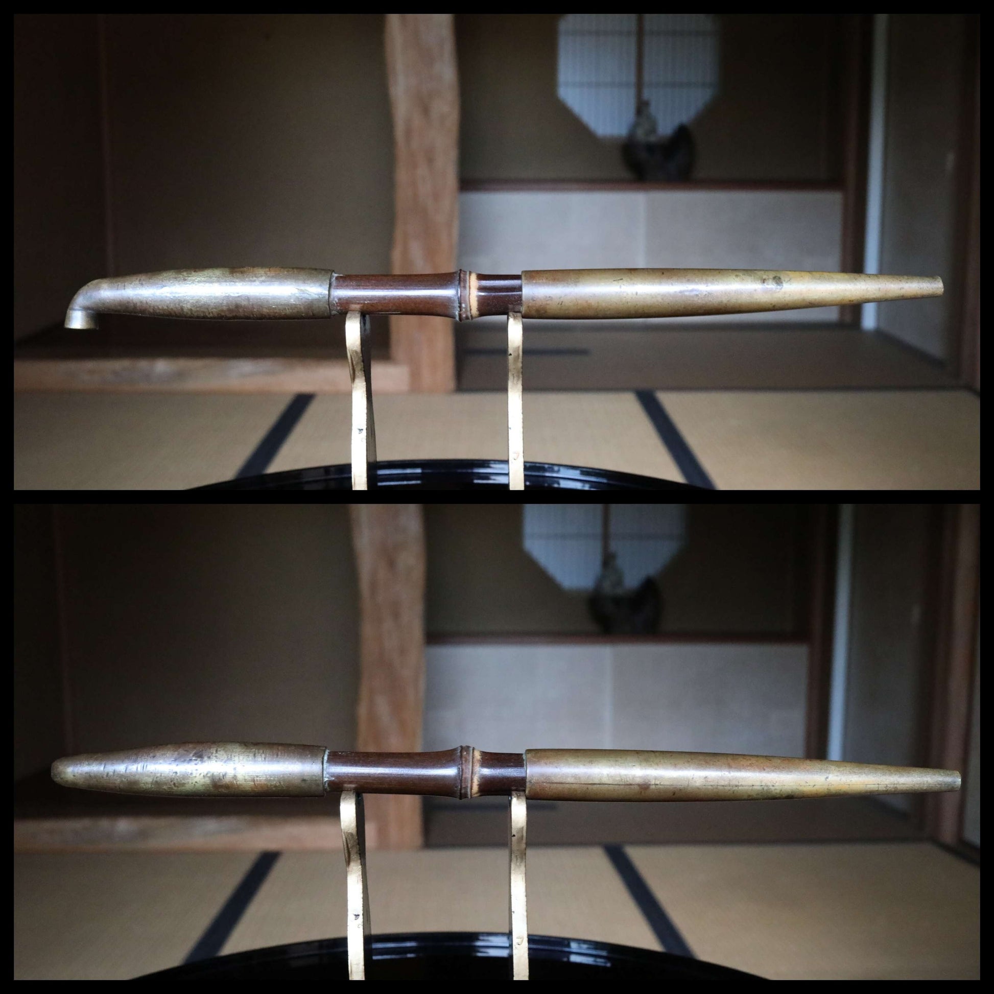 It is an antique but in good condition and can be used immediately. The smoking pipe is made of bamboo and very thick brass,