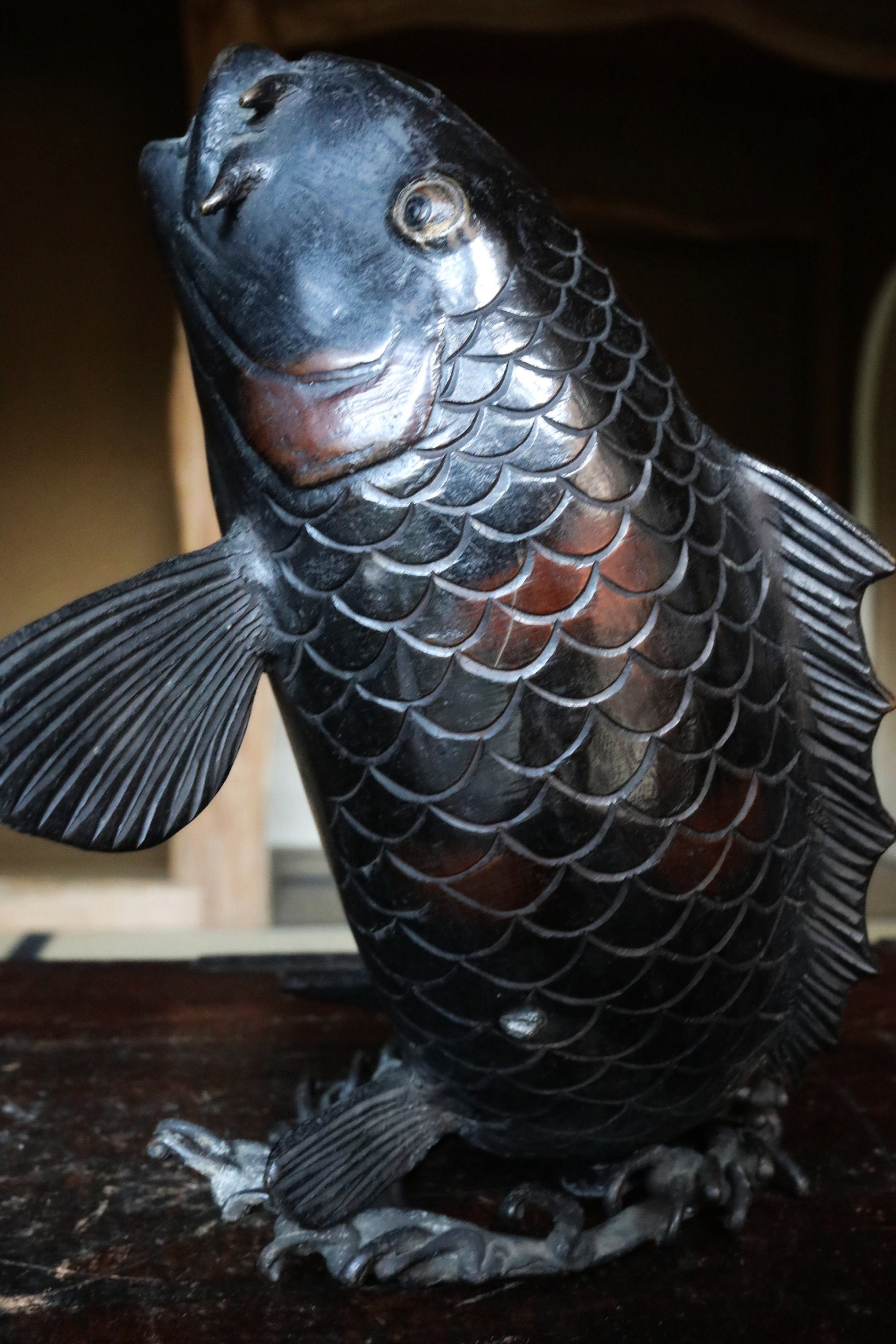FINE! RARE! Japanese garden furniture faucet fountain antique Bronze carp sculpture Buddhist temple shrine Ready to use H7.9in/H20cm