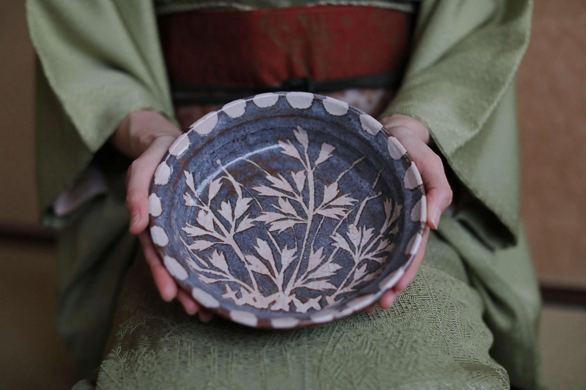 This is designed for tea rooms where the guests take the sweets served in the dish one by one in order before tea. This confirms that everyone is equal within the tea room by sharing the same food.