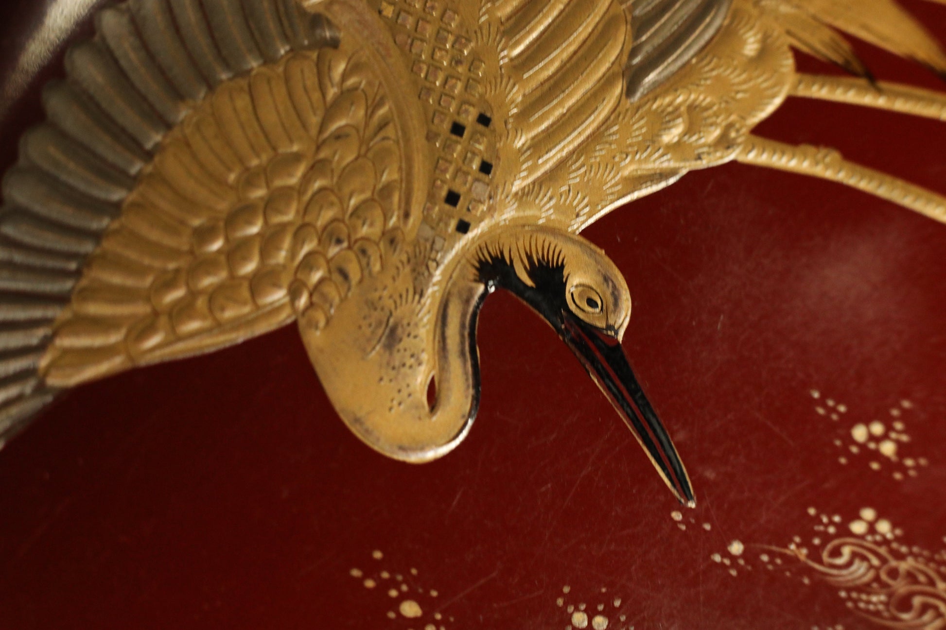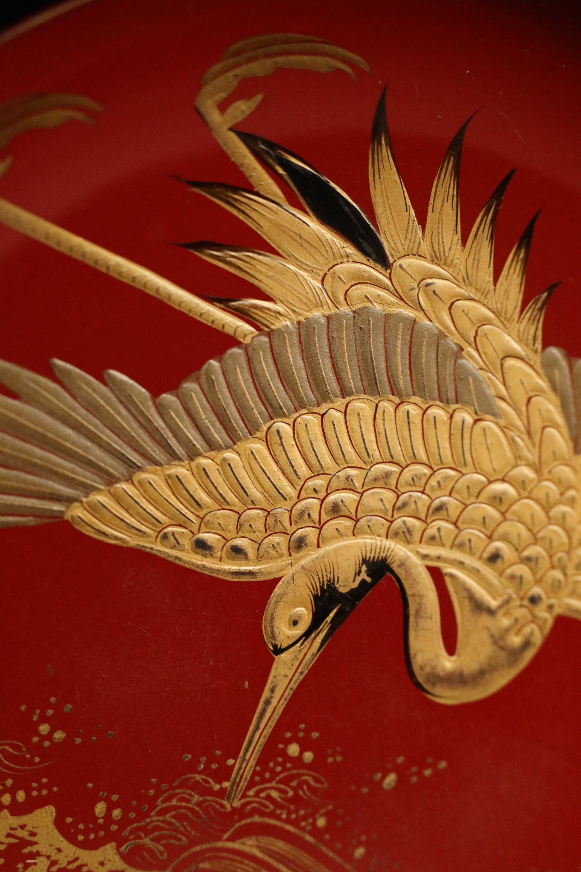 The technique of maki-e is very high and excellent. Especially, the crane's wings are very realistic. The waves are also drawn on the reverse side, and are beautifully expressed with very delicate lines.