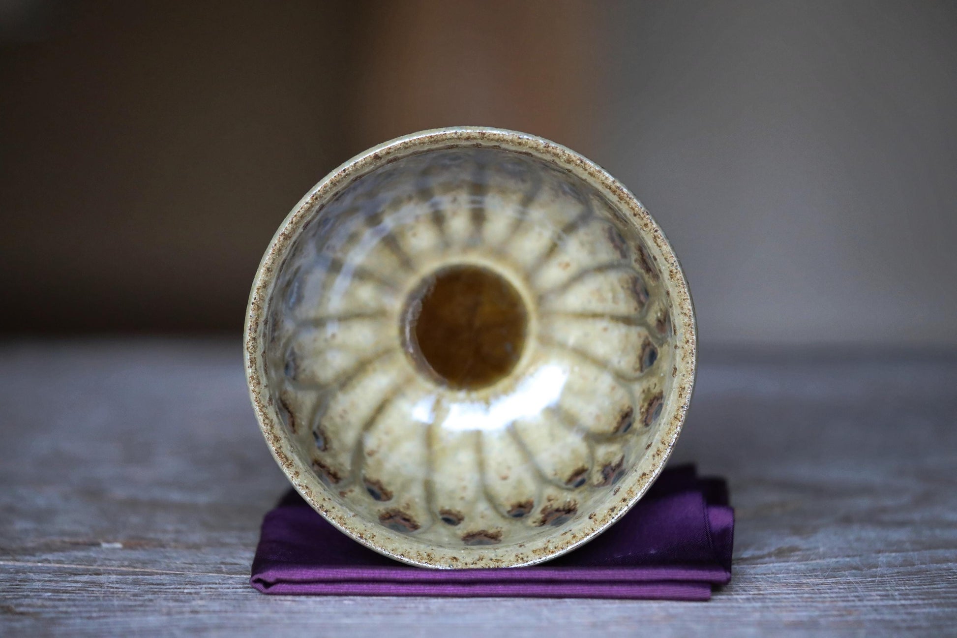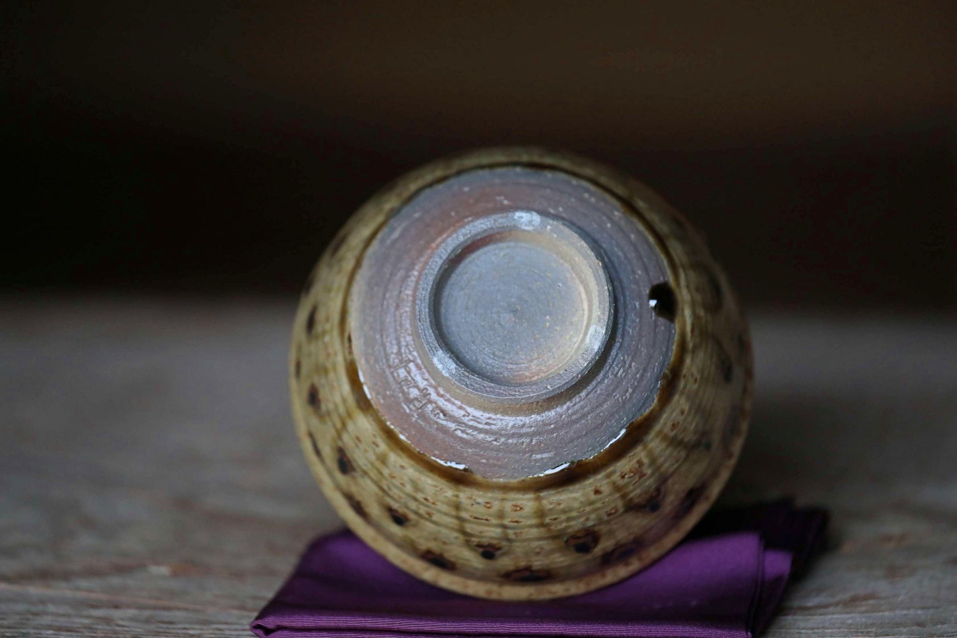 This tea bowl is a pottery called 黄瀬戸焼Kiseto. 瀬戸焼Seto ware with a light yellow glaze。