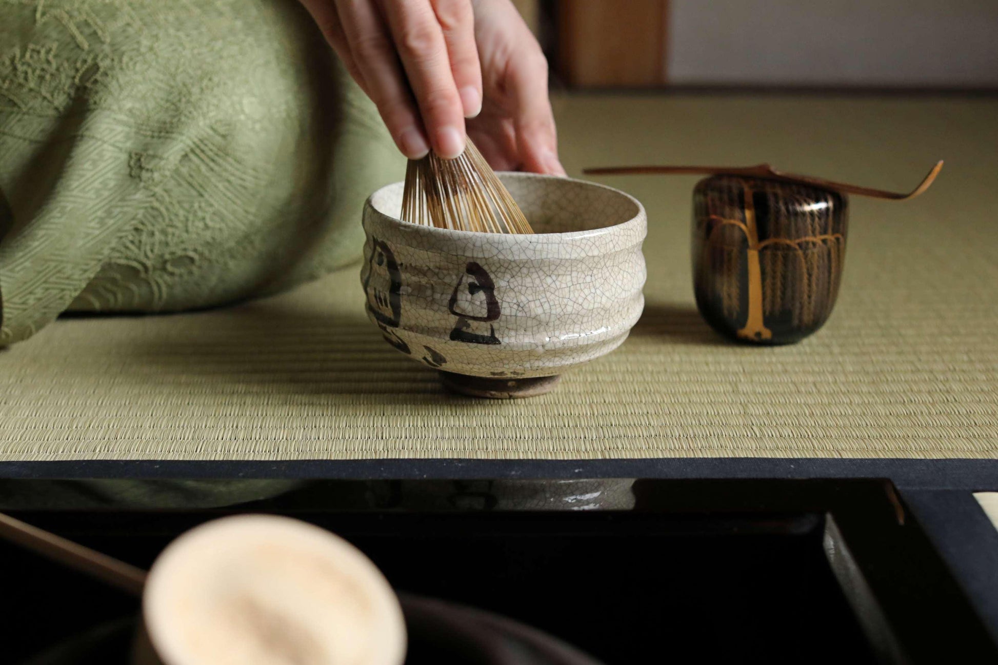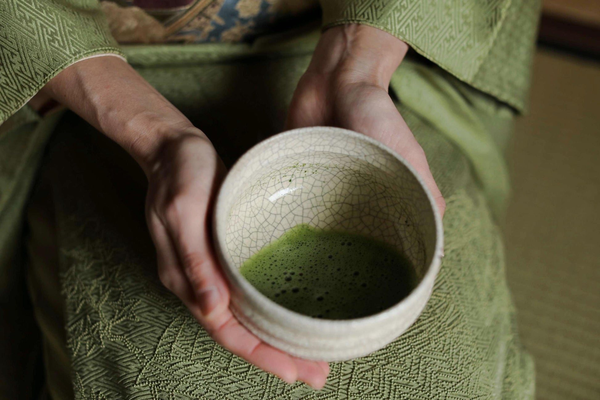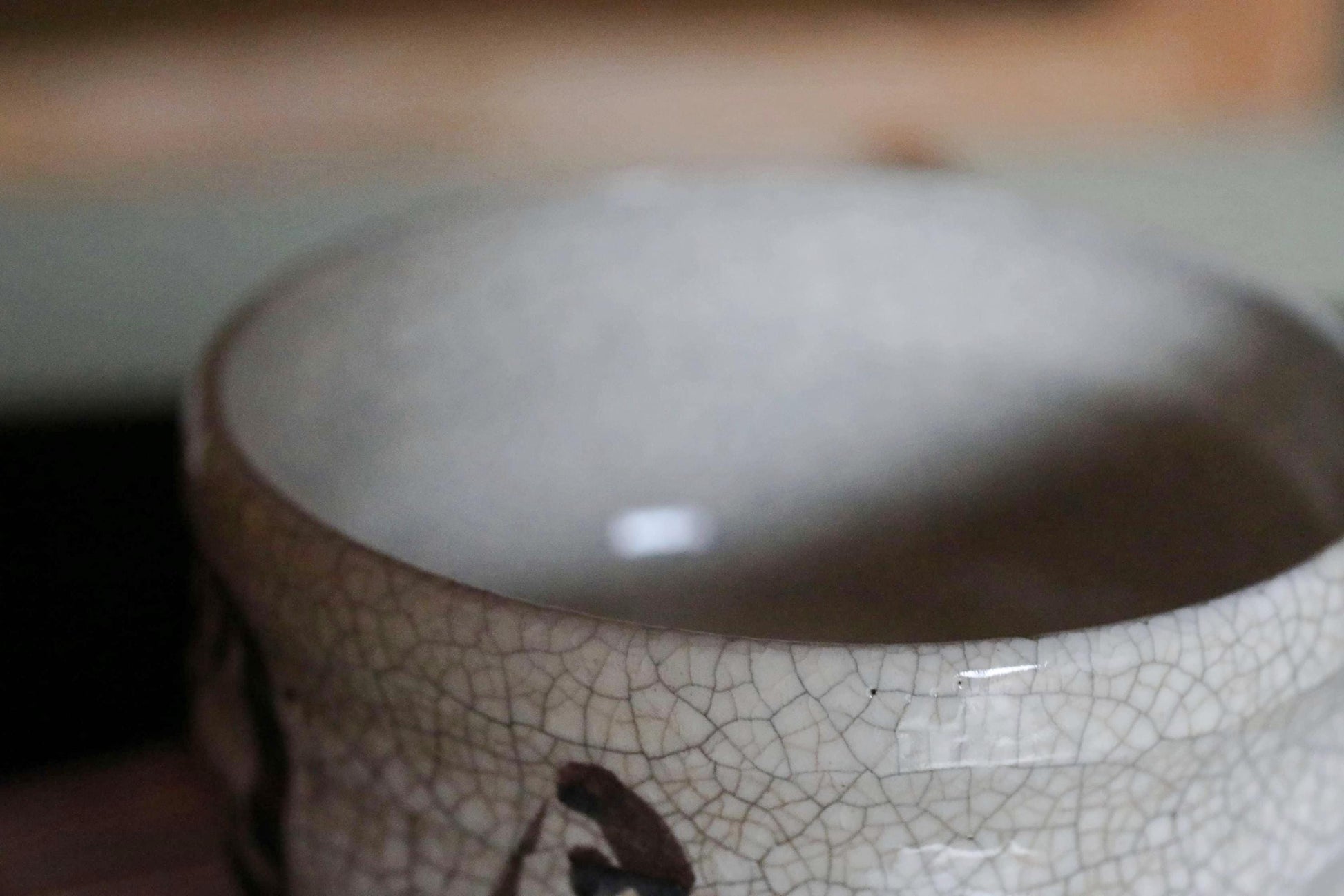The subdued color of the aged clay also has a good atmosphere. The green of matcha matches the white. The irregular shape of the handmade cup fits comfortably in your hand.