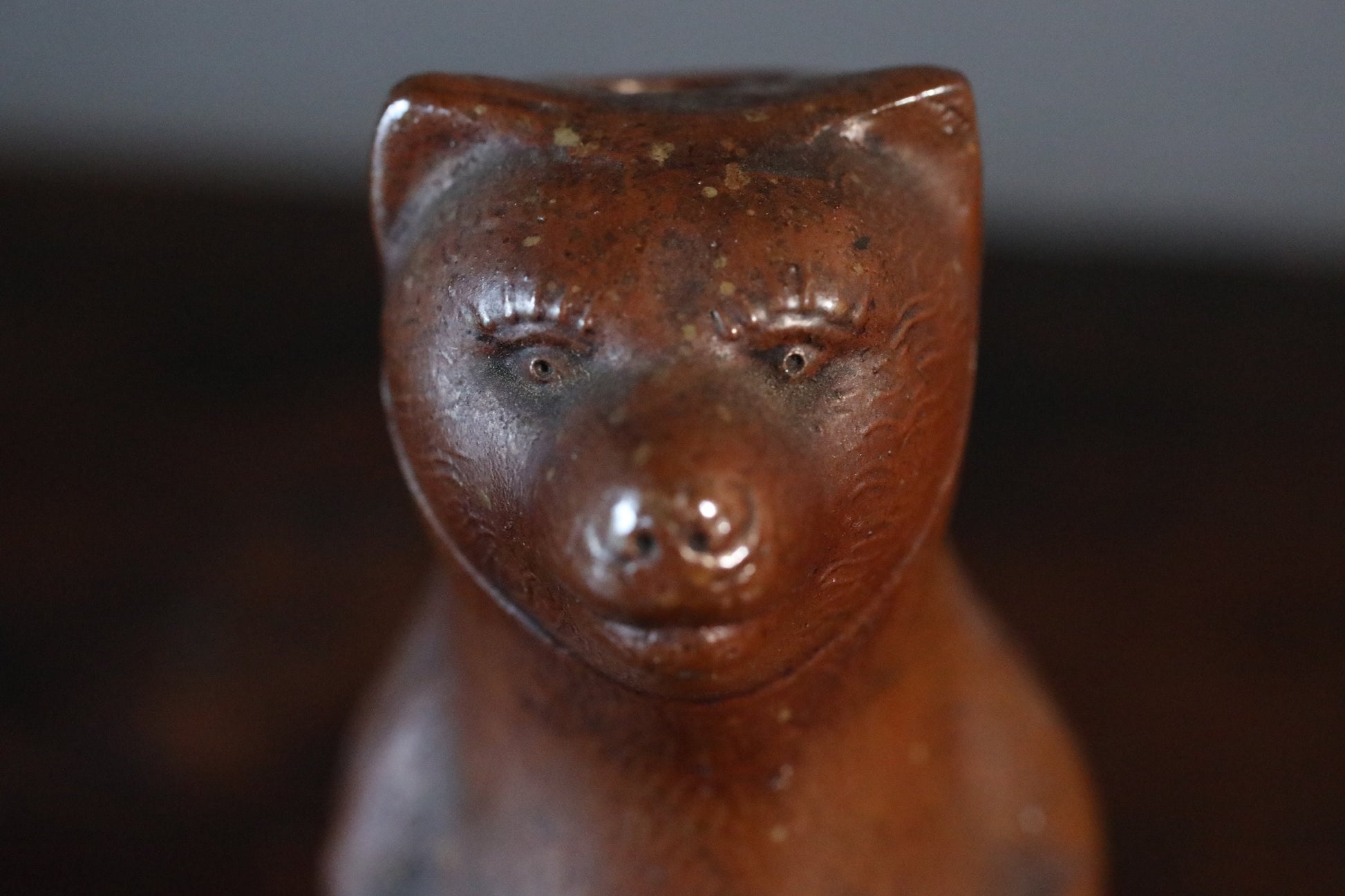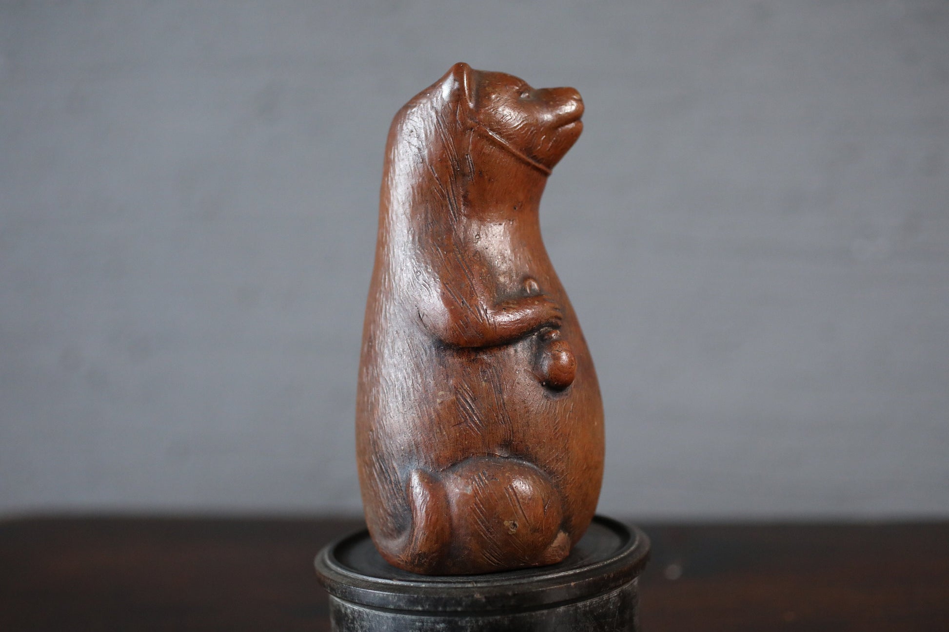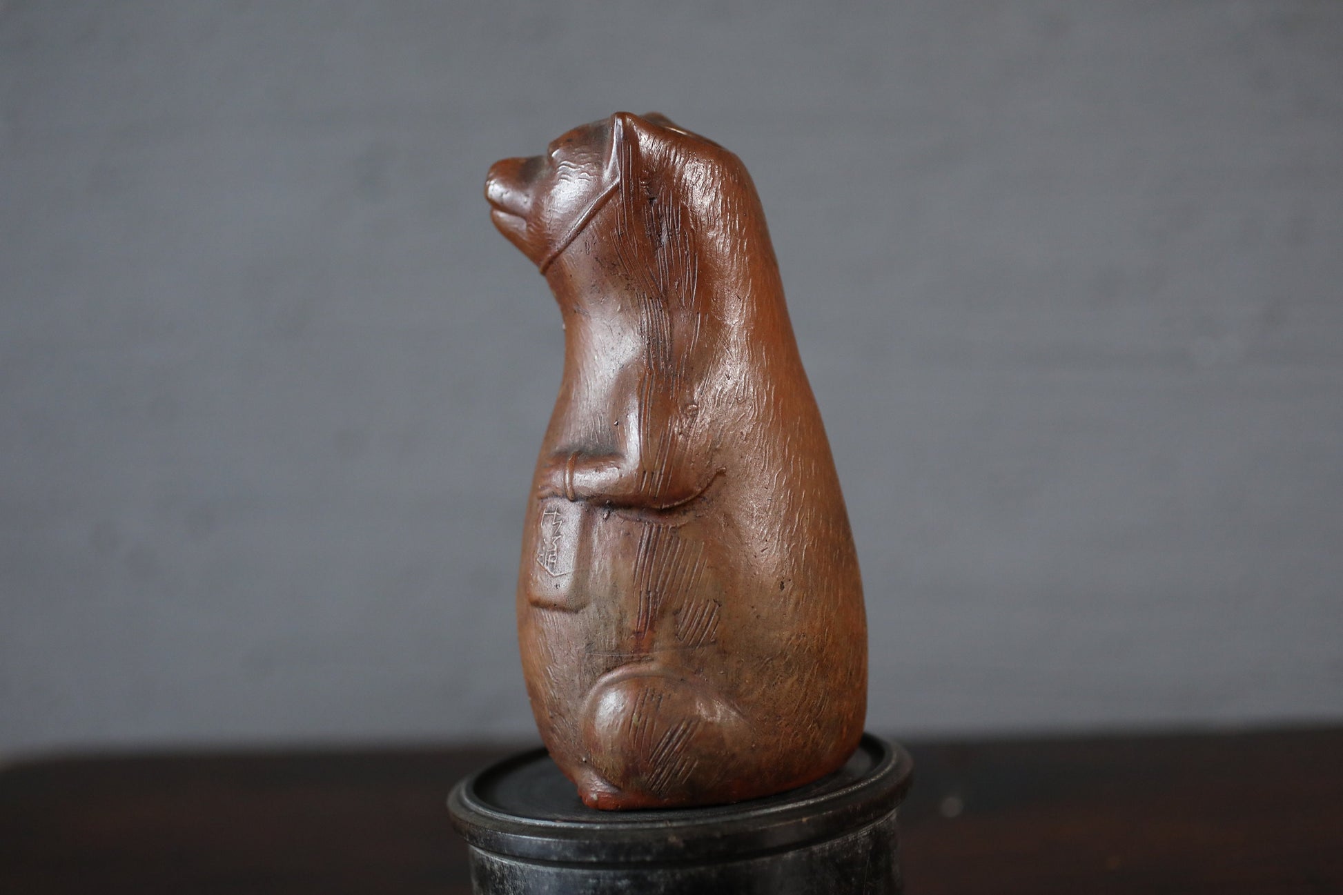 A ceramic sake bottle made in the Edo period. In Japan, they are called raccoon dogs.
