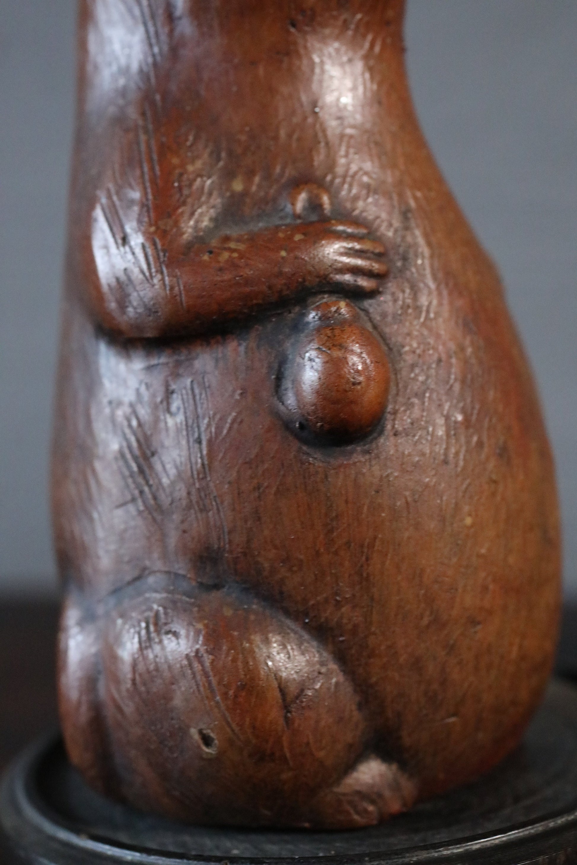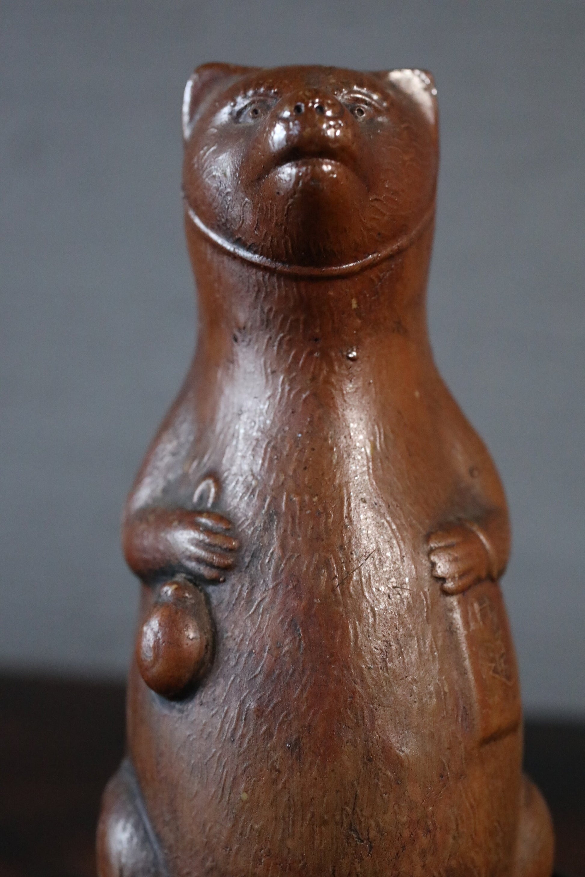 Japanese 1800s antique BIZEN pottery sake bottle doll Tableware old raccoon dog Edo craft animal ornament H5.9in/H15cm