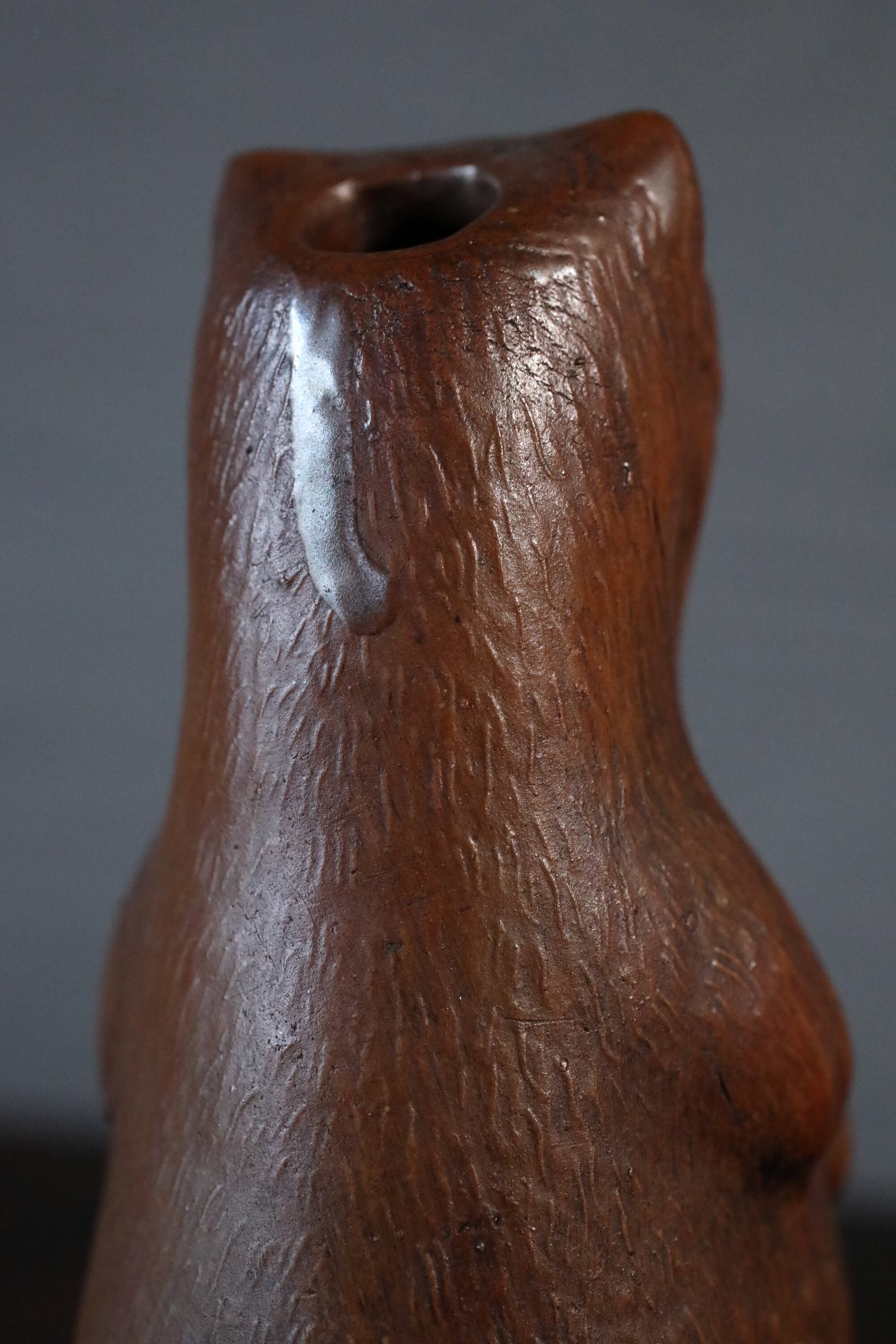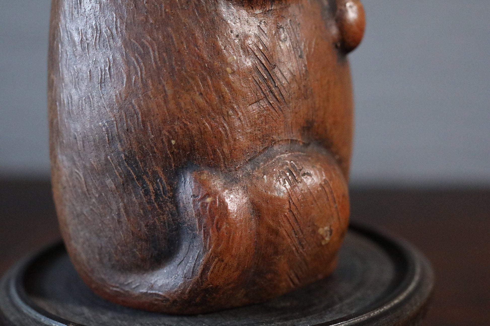 At the time, tokkuri with a design of a raccoon dog holding sake were sold as souvenirs. The raccoon dog's face is exquisite and cute. The color and luster of Bizen ware over time are also beautiful.