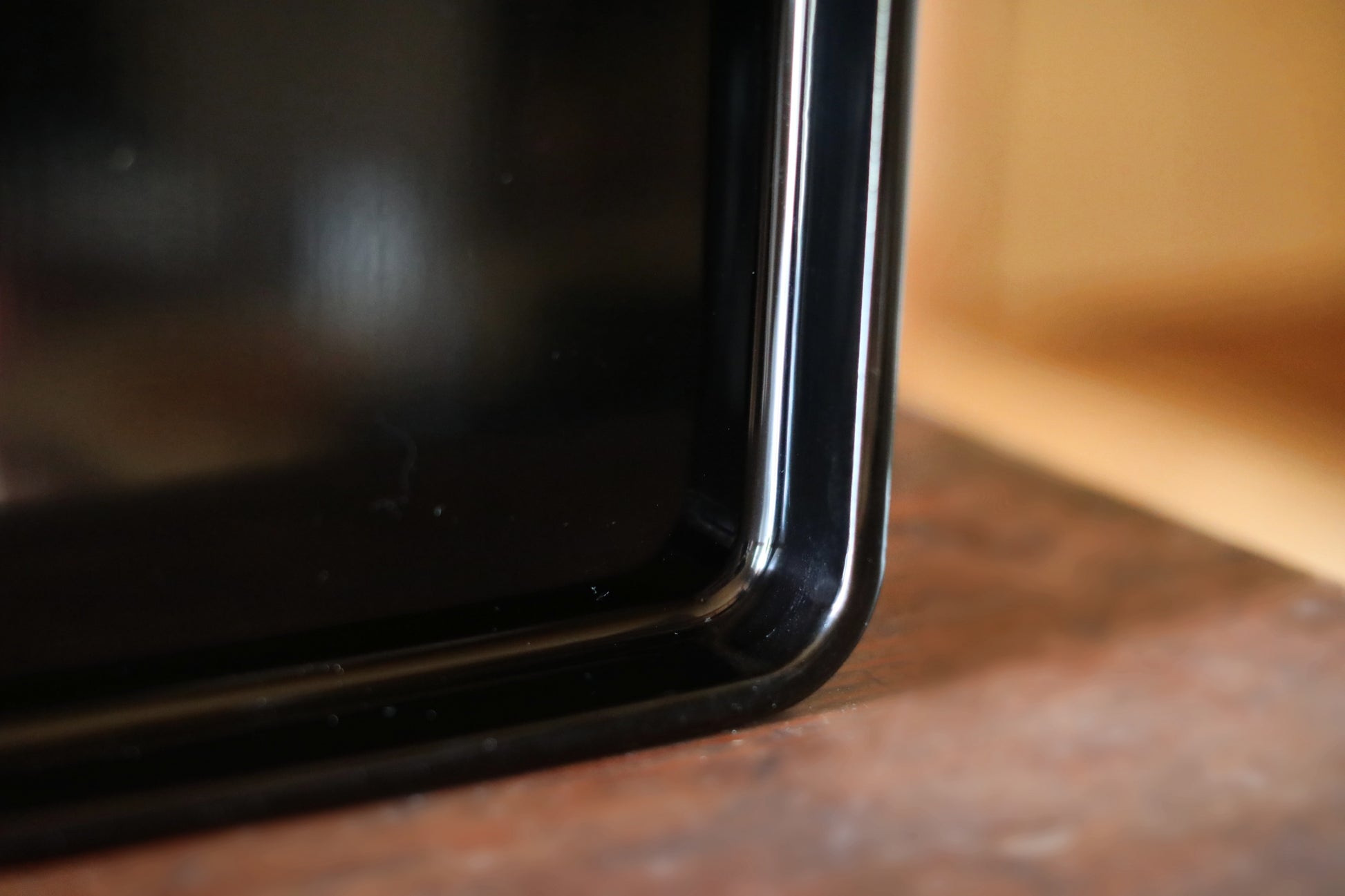 The size is large, and this is a high-class 輪島塗 Wajima-nuri product. The characteristic of Wajima-nuri is that the lacquer is applied very thickly, so it is painted over and over again, which makes it very durable and time-consuming. If you look closely, you can see that the bottom of the side side is slightly carved to make it easier to hold. This kind of casual effort is also an expression of the Japanese sense of beauty. The name is written in gold on the back.