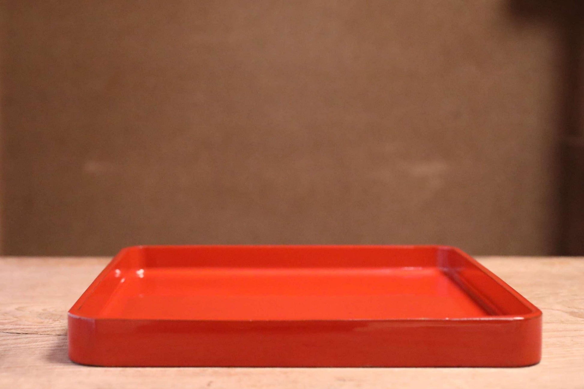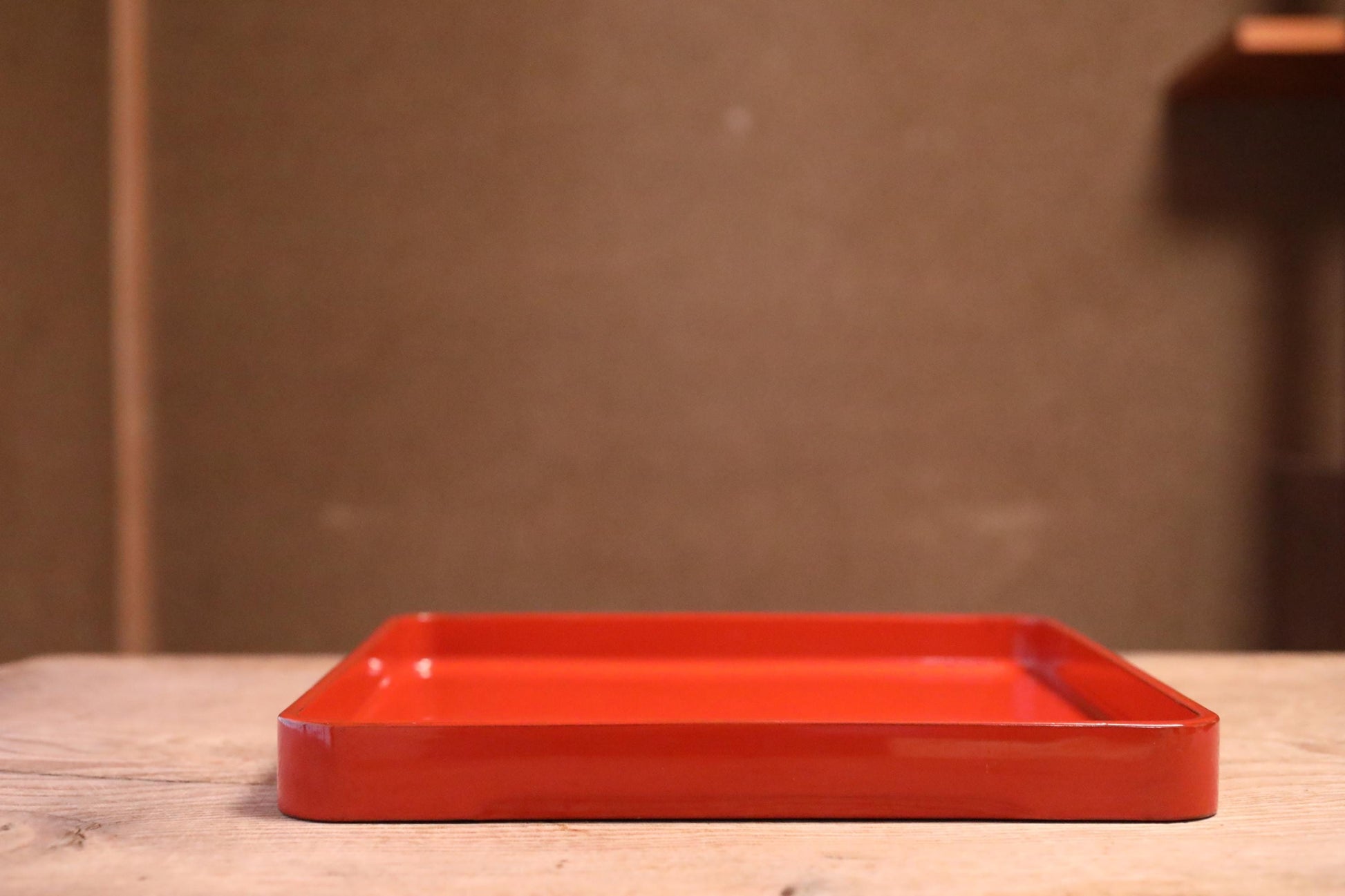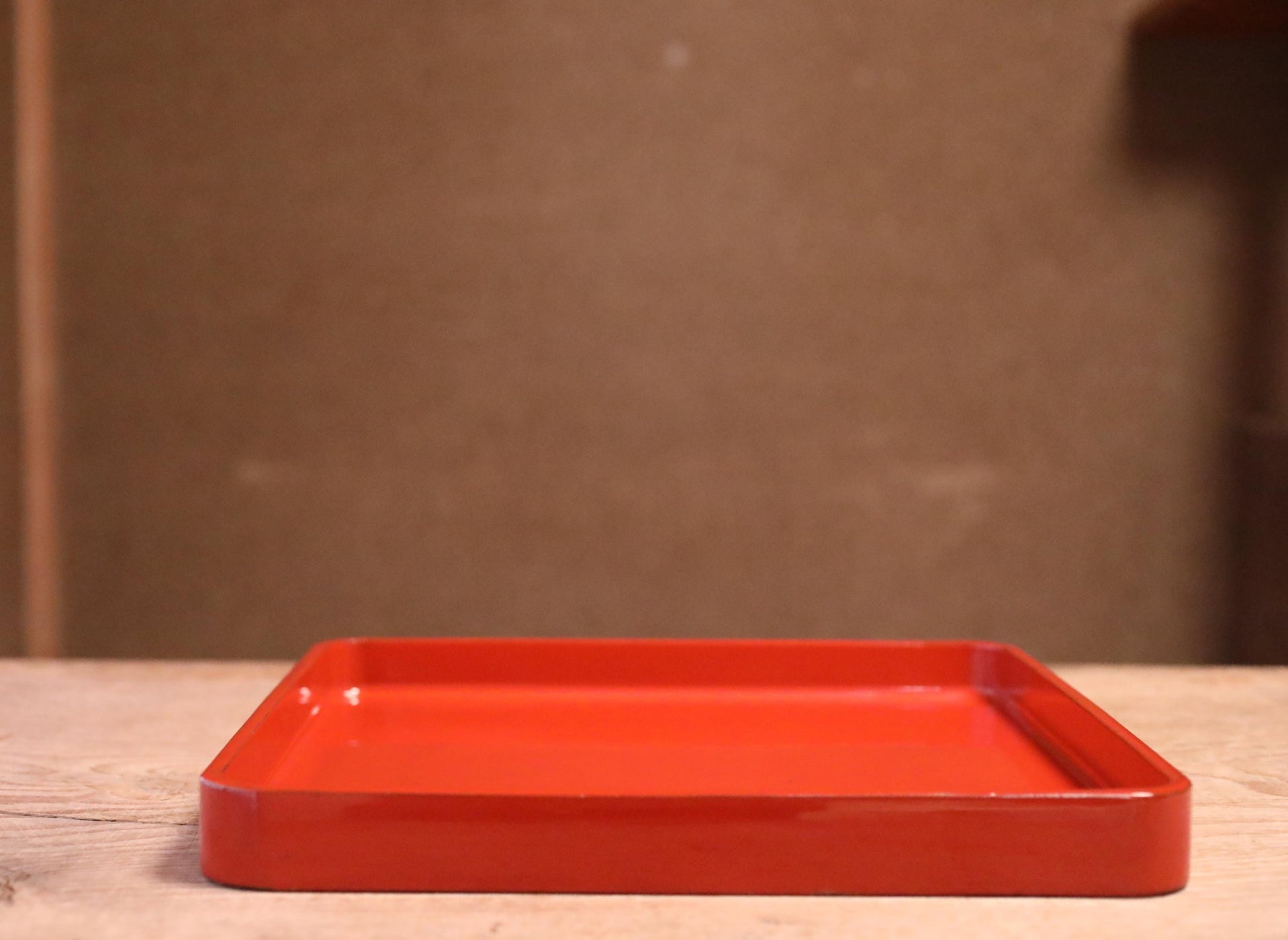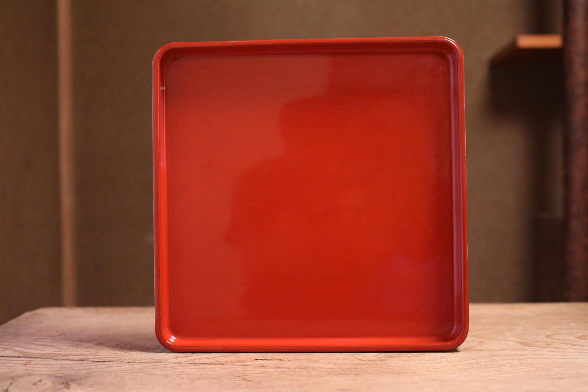 Japanese 1920s URUSHI lacquer square tray OBON red urushi wooden tableware Tea ceremony OZEN 14.4×14.4in/36.5×36.5cm.