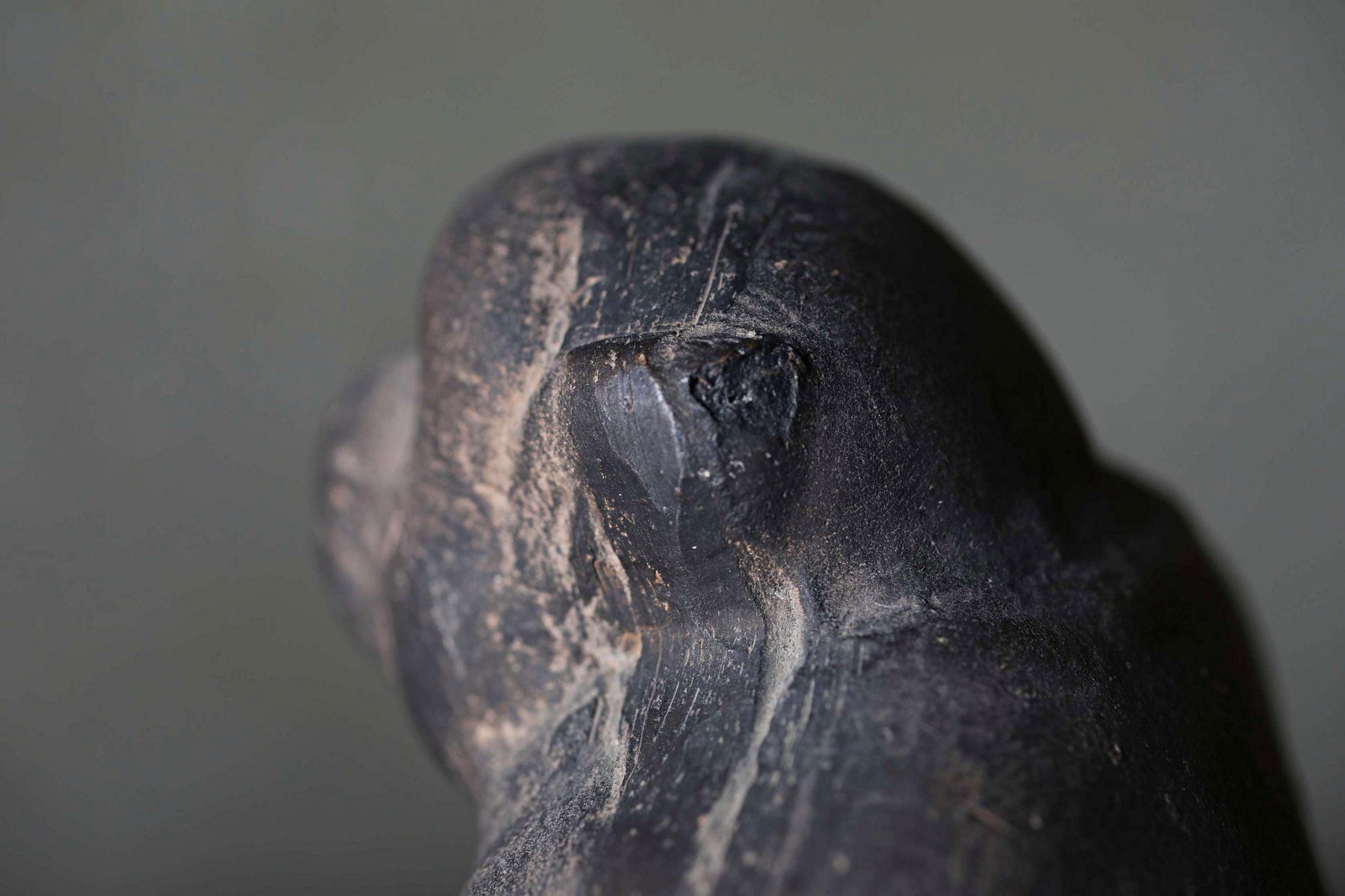 There is a small splinter behind the ear, but it is not noticeable unless you look closely.
