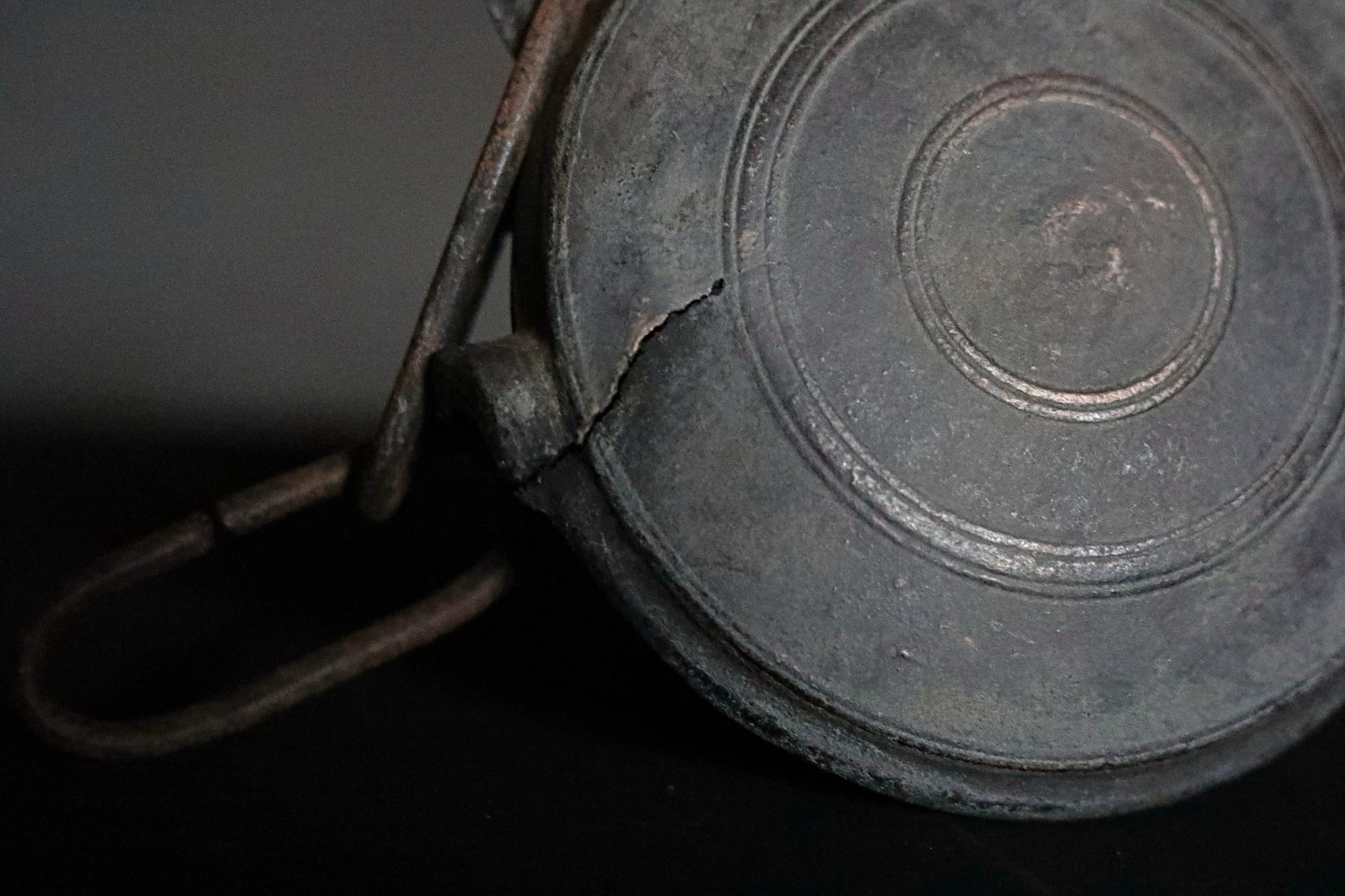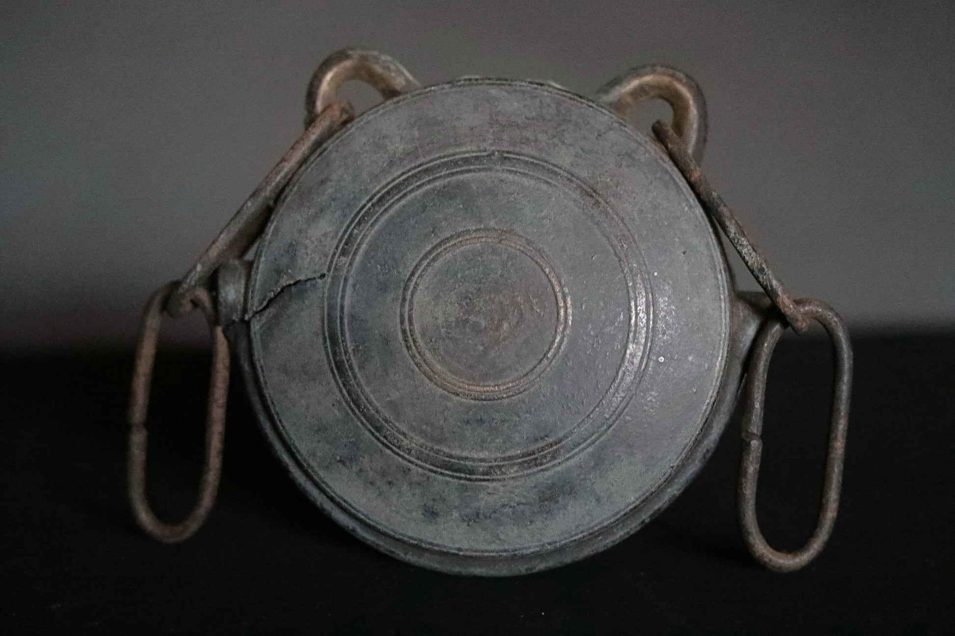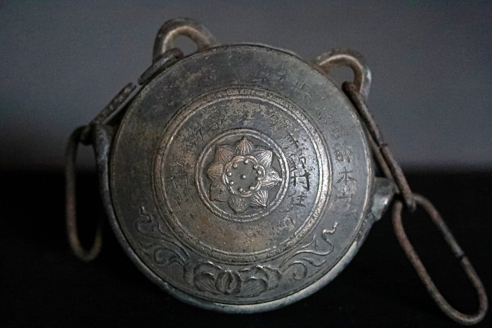 Japanese antique 1700s EDO "wanikuchi" bronze temple gong, buddhist altar with lotus Kanji signature lost wax craft W6.5in/W16.5cm
