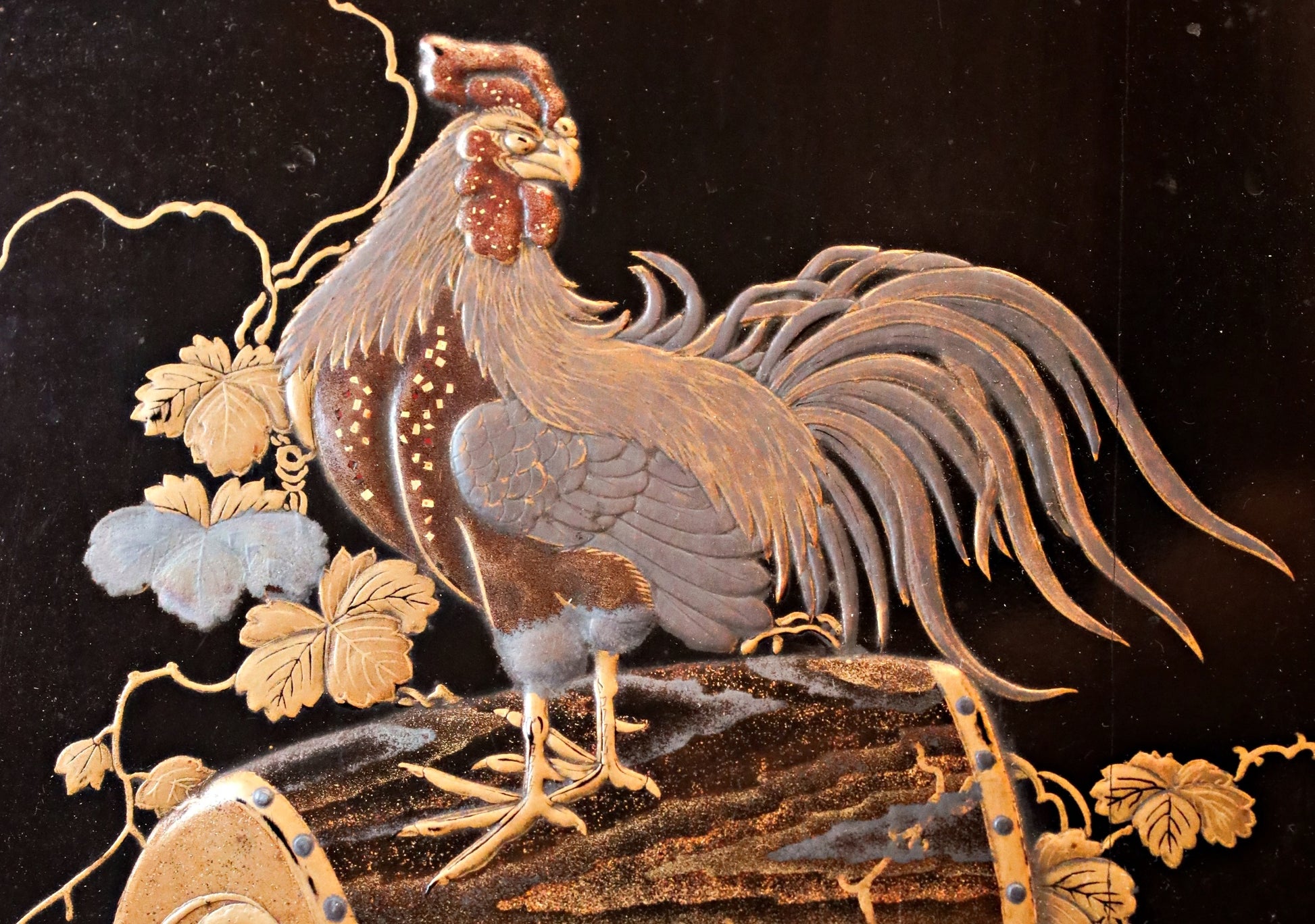 Japanese Makie Lacquer box with Long-tailed bird gold urushi EDO 1800s