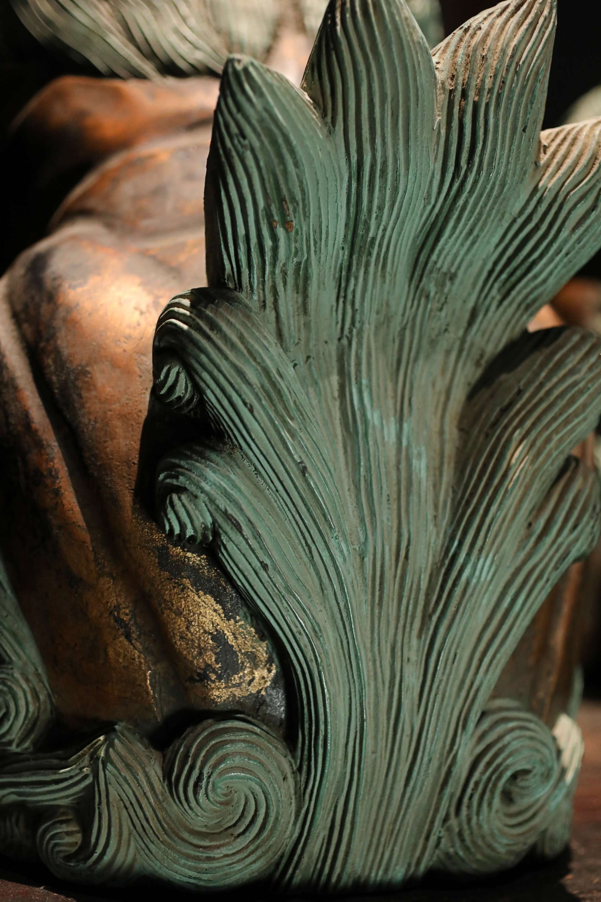 Since they are carved from a single piece of wood, there are natural cracks on the back due to the wood's aging process. Some repairs have been made, but there is no damage that would affect their display.