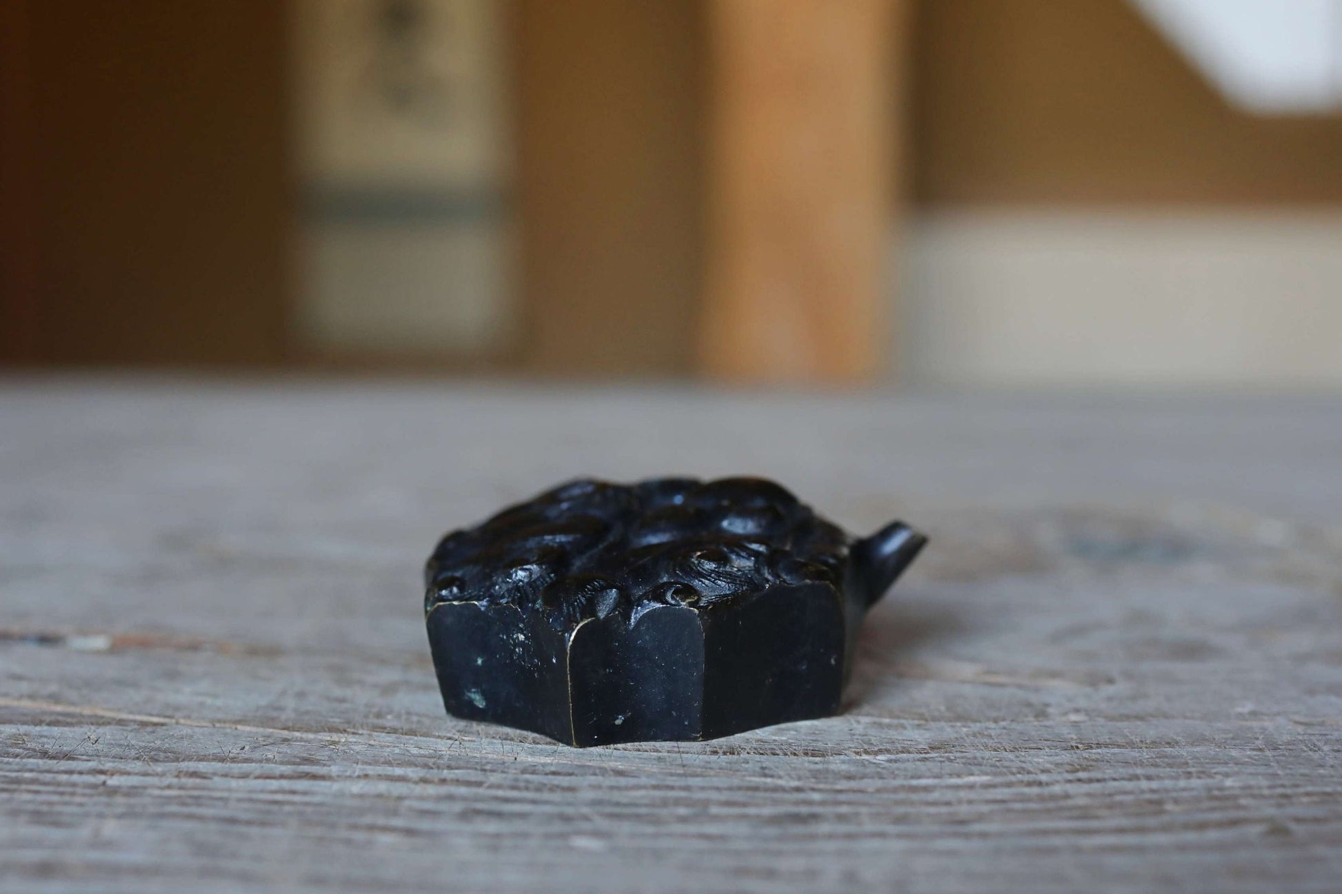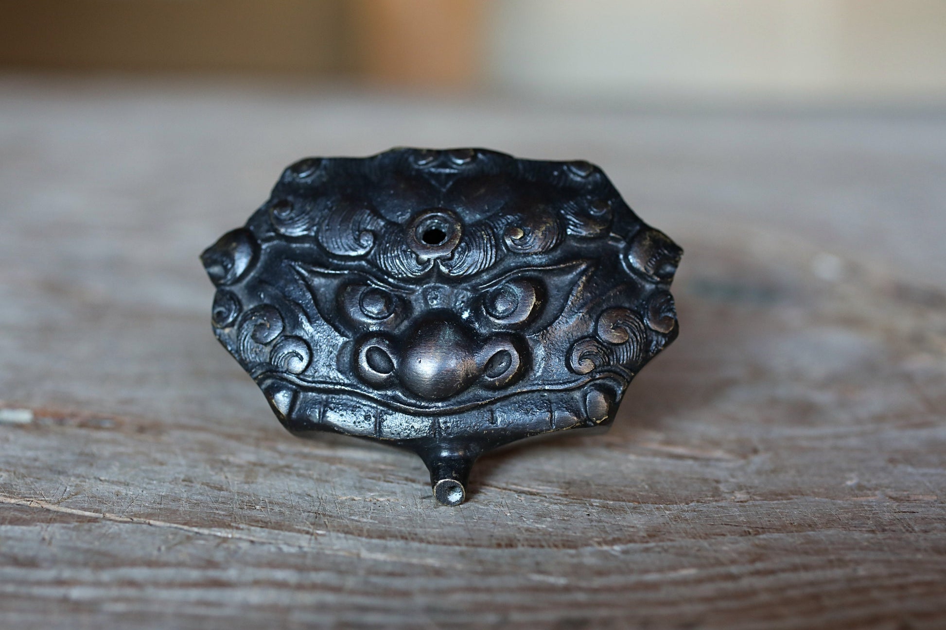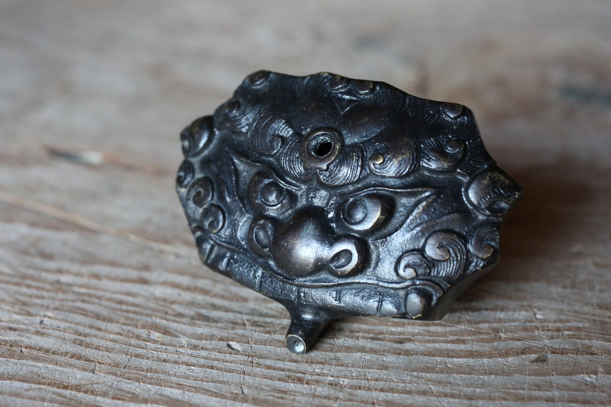 Japanese antique 1880s demon face SUITEKI water drop container for ink kanji calligraphy mede of bronze metal craft 2×3×0.9in/5.2×7.5×2.3cm
