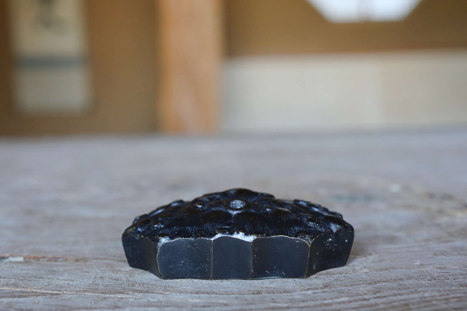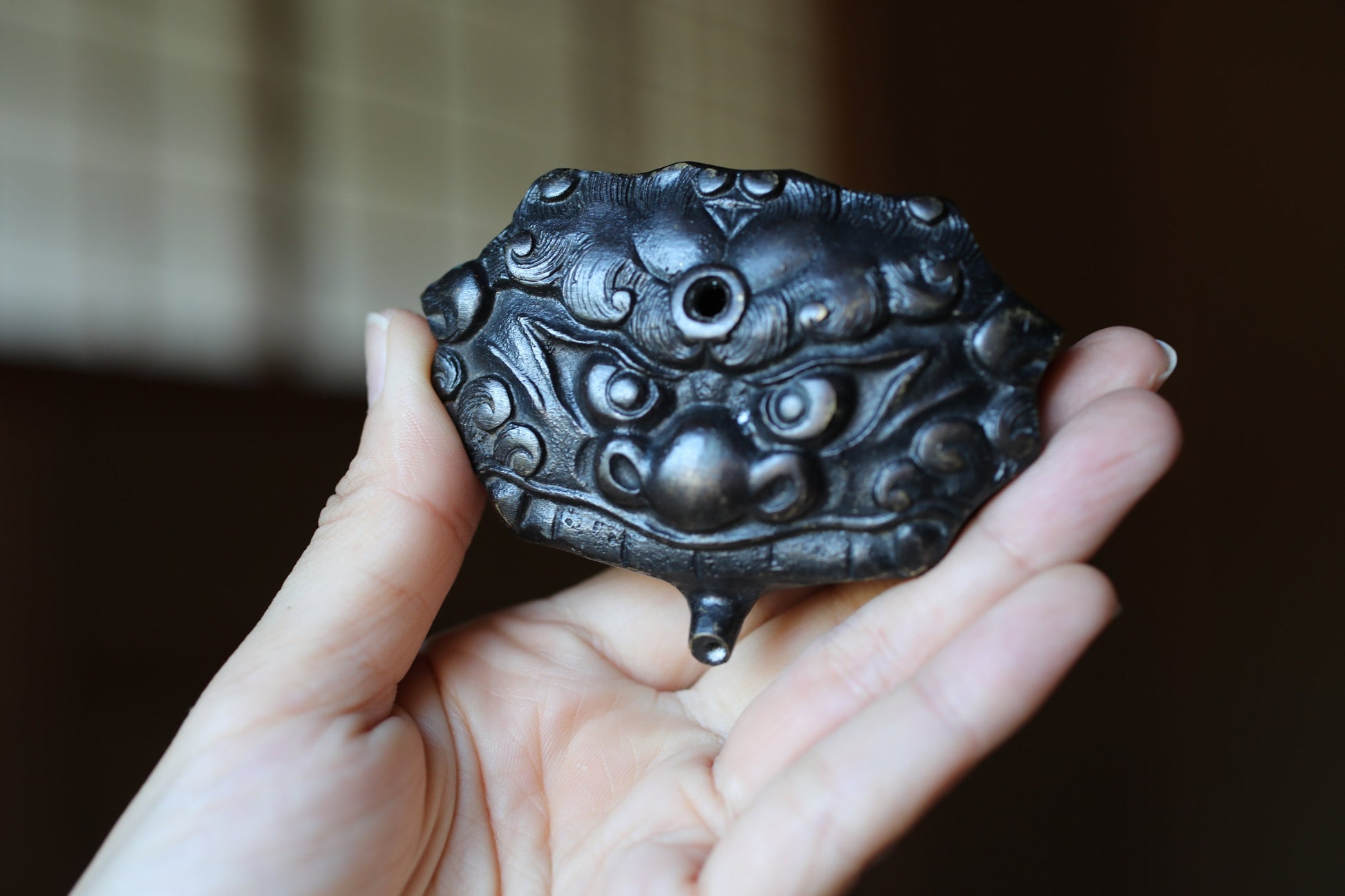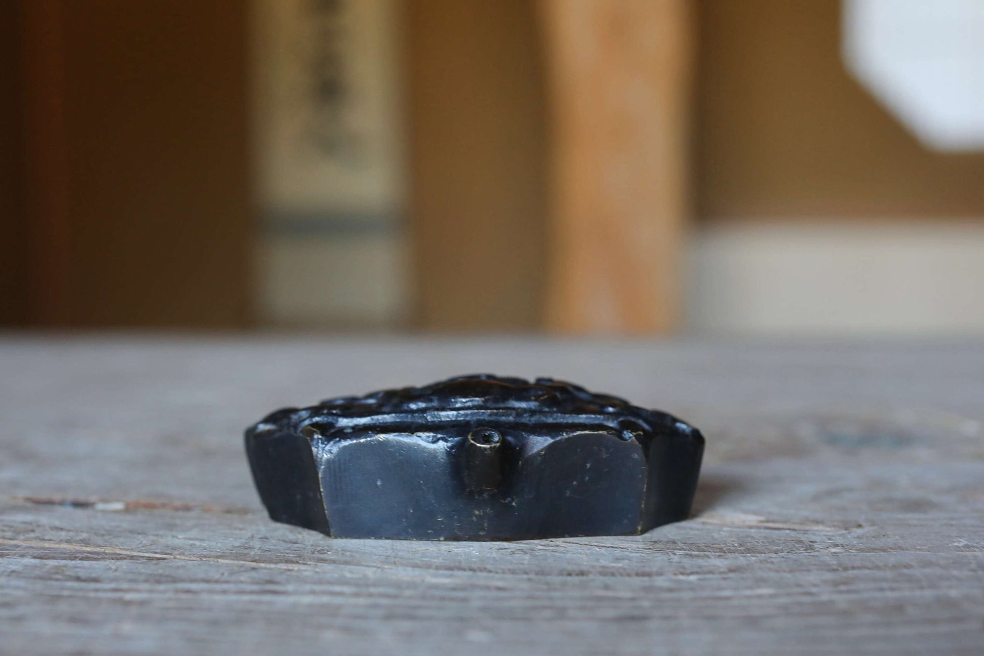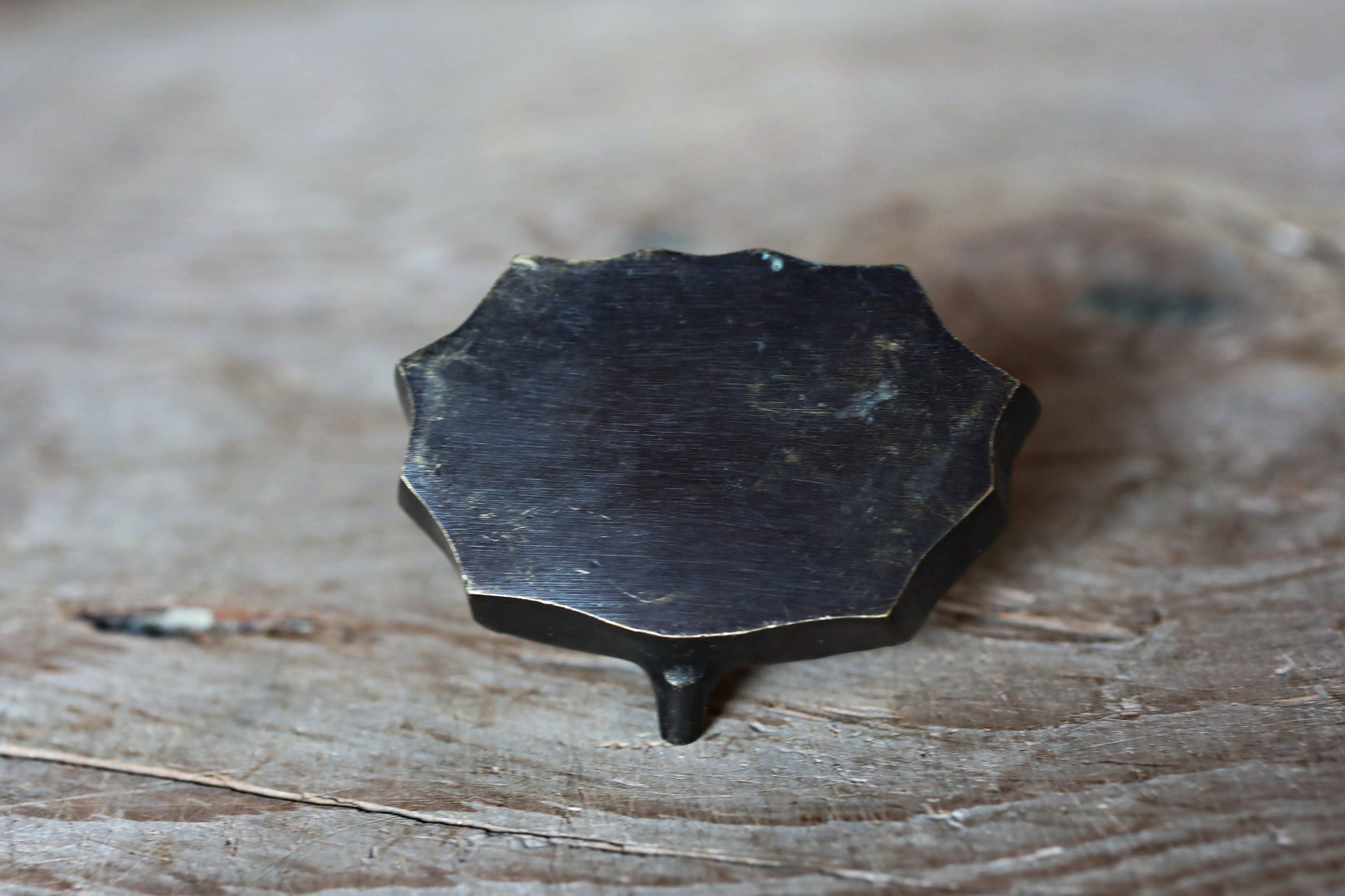 Japanese antique 1880s demon face SUITEKI water drop container for ink kanji calligraphy mede of bronze metal craft 2×3×0.9in/5.2×7.5×2.3cm