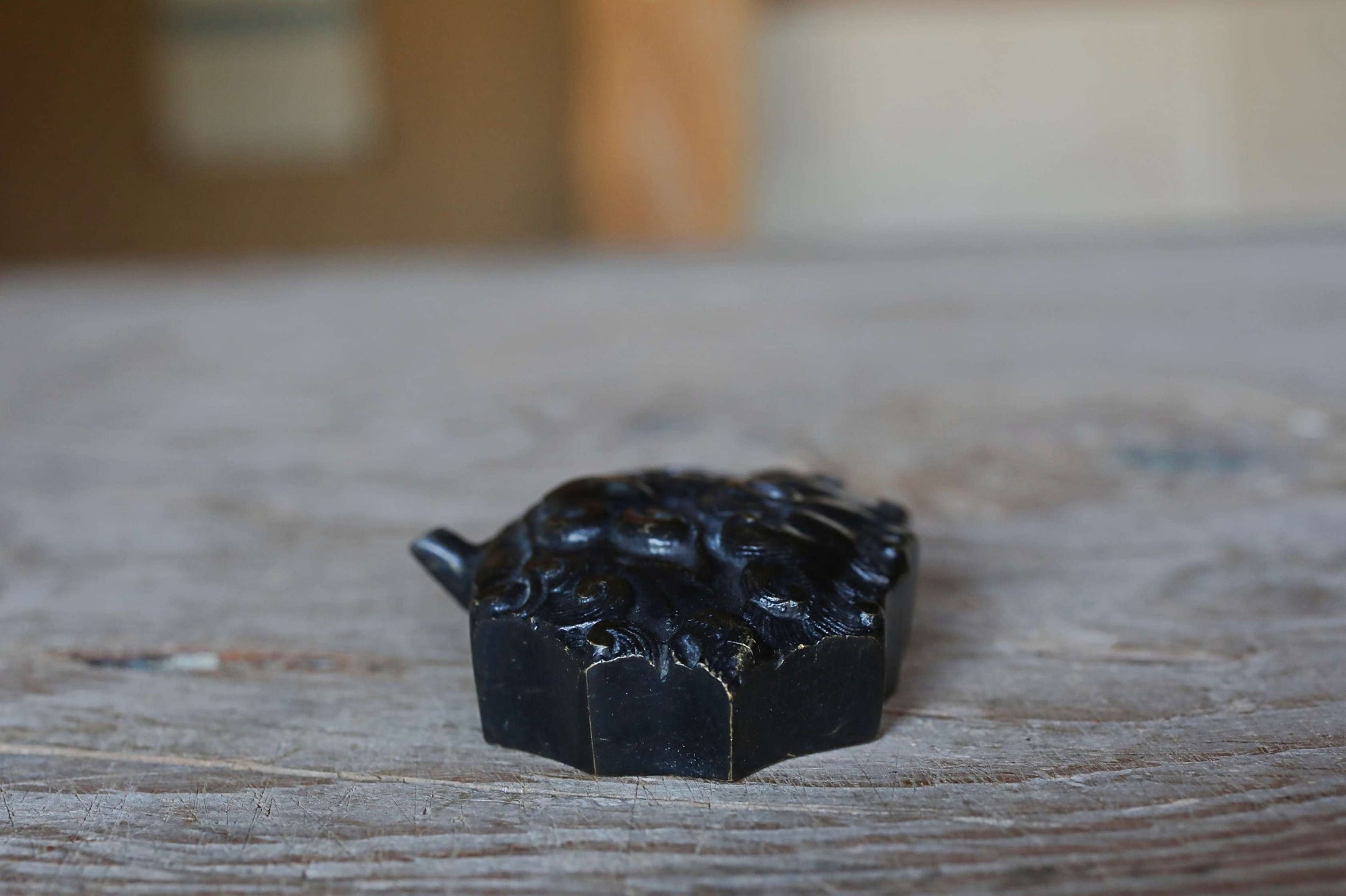Japanese antique 1880s demon face SUITEKI water drop container for ink kanji calligraphy mede of bronze metal craft 2×3×0.9in/5.2×7.5×2.3cm.