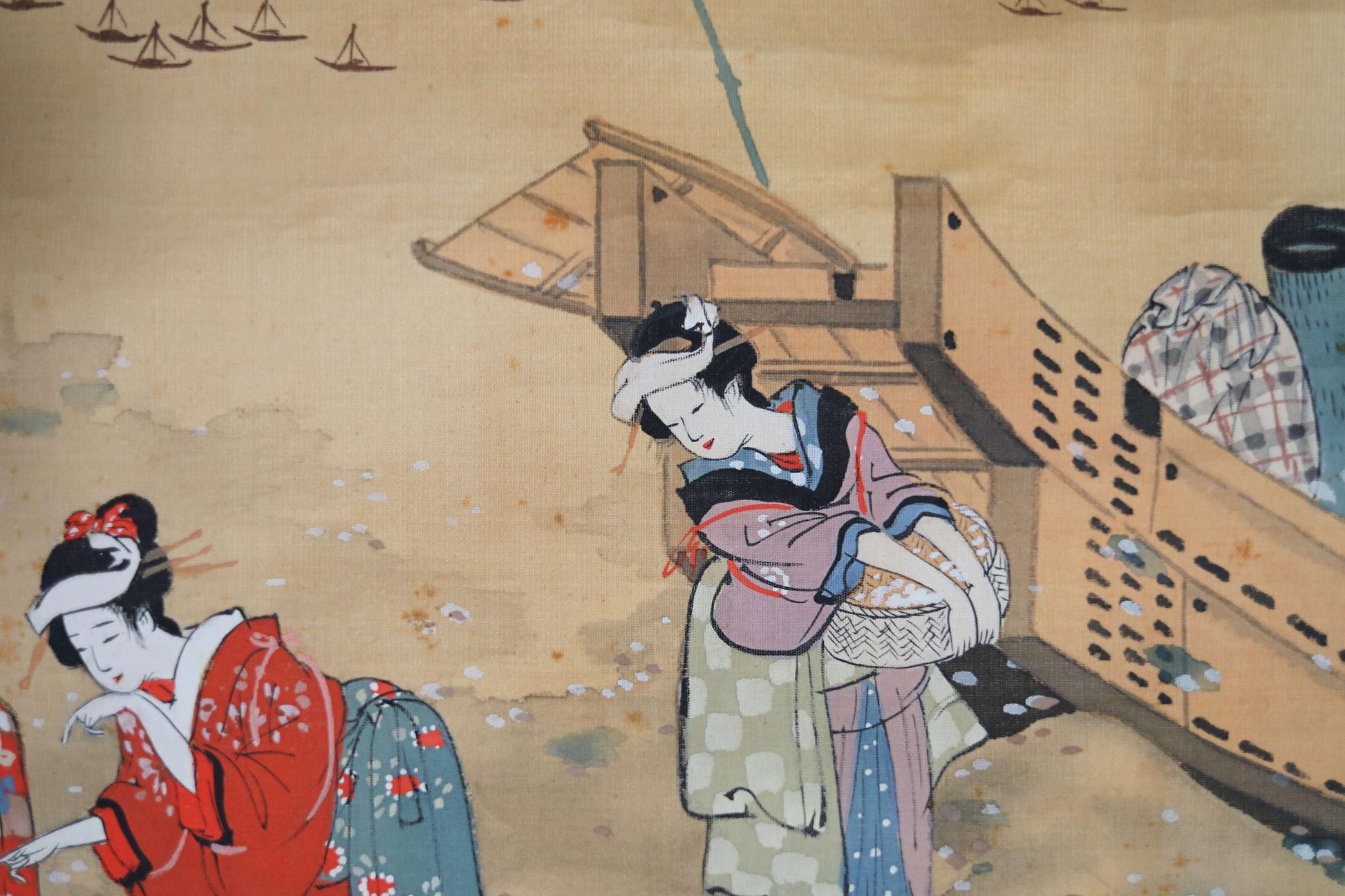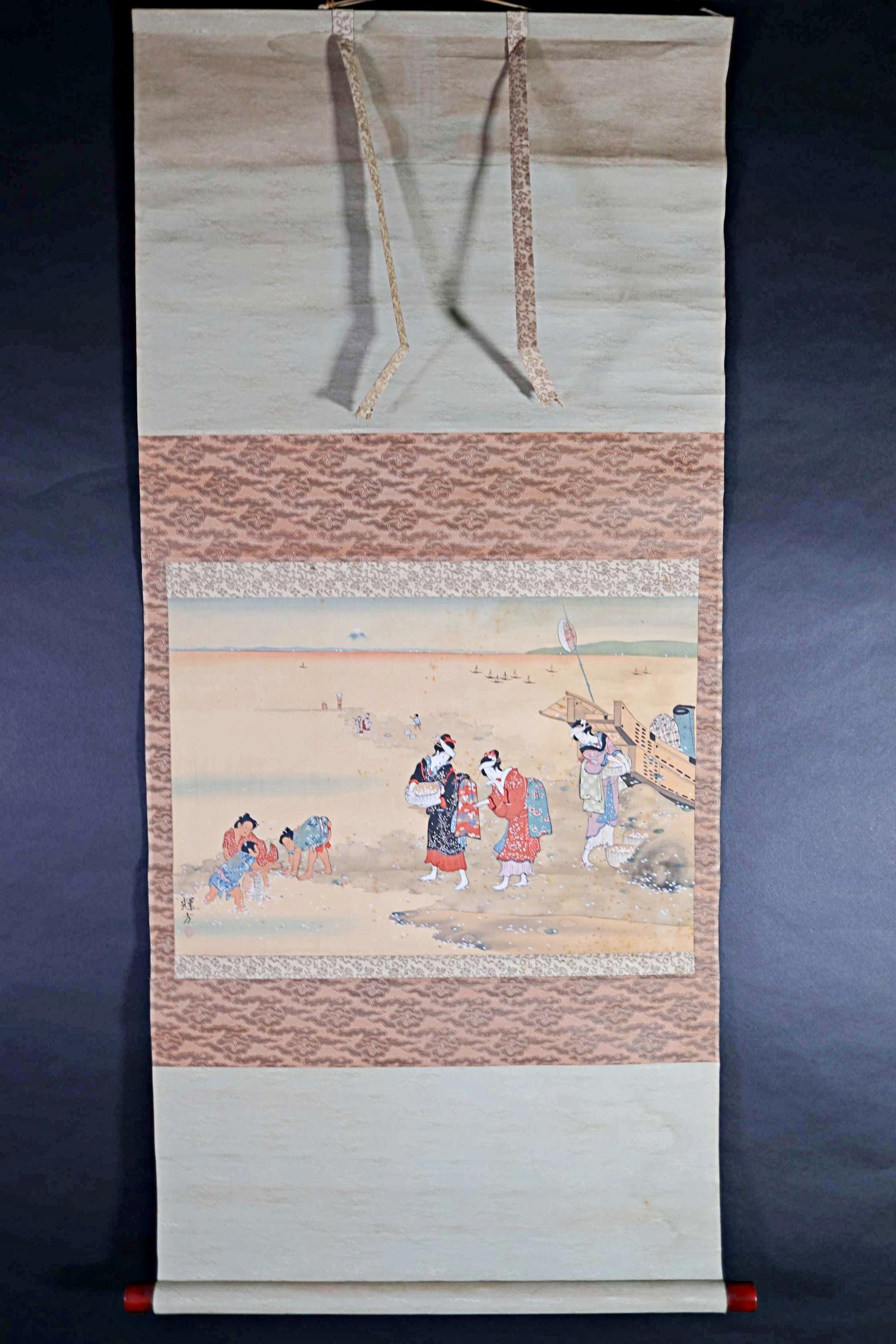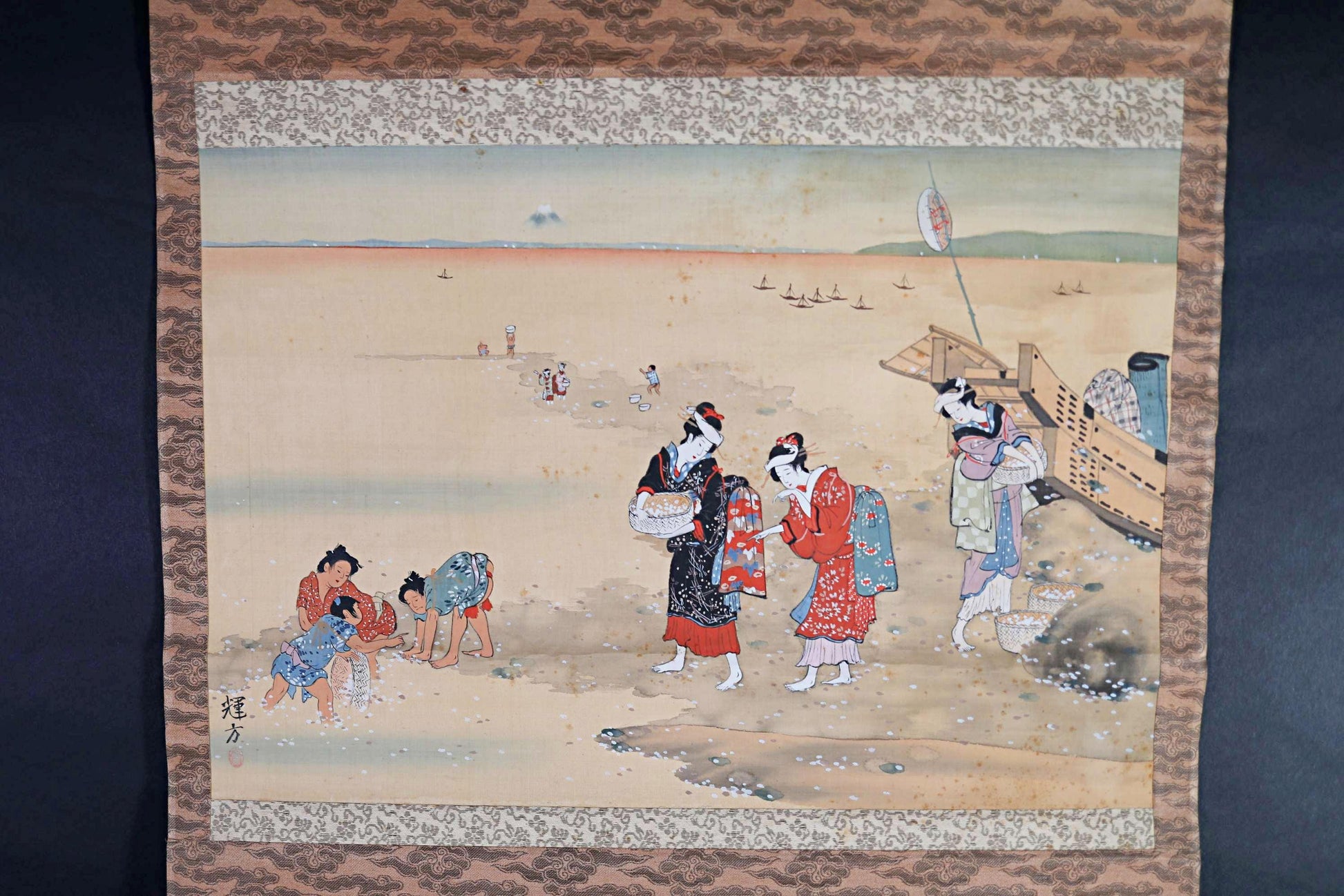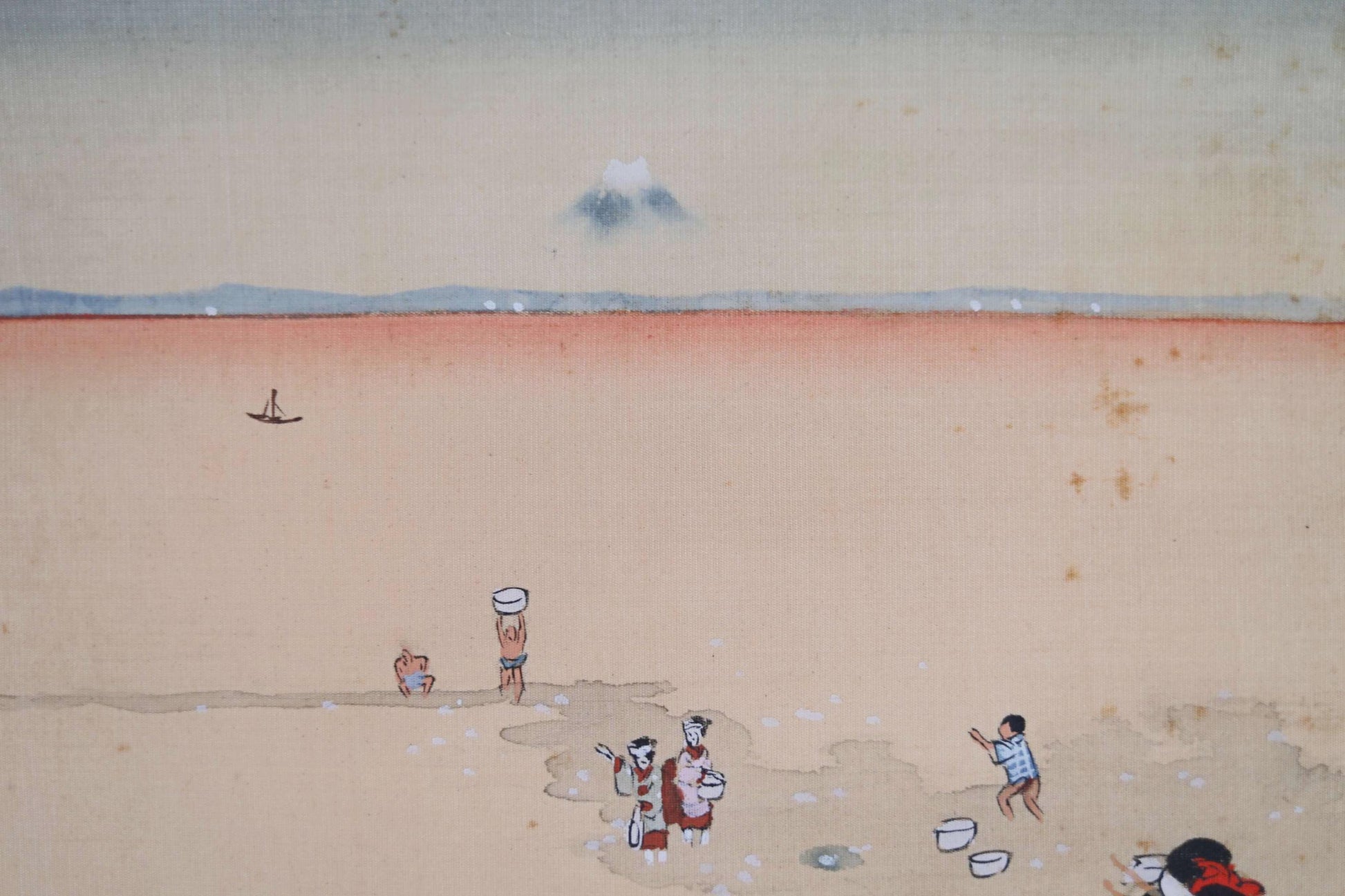 Children playing sumo near the beach are also depicted in this scene. If you look closely, you can see the top of Mt.