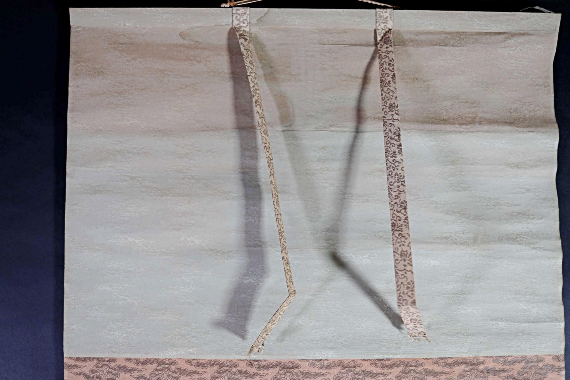 The painting itself is in good condition, but there is a stain on the cloth at the top